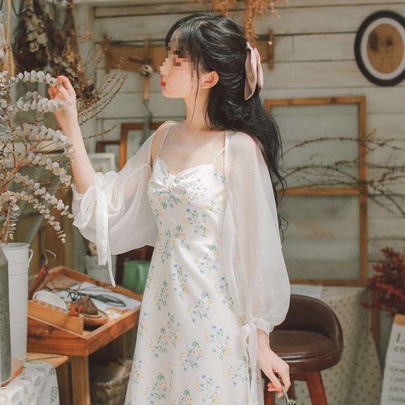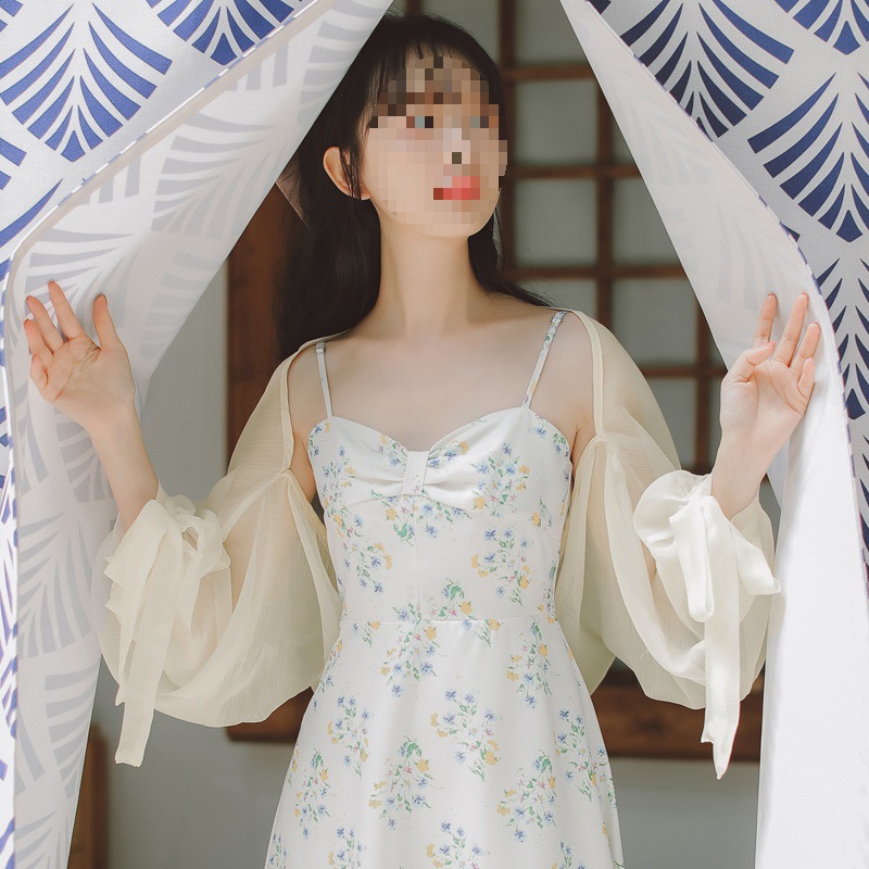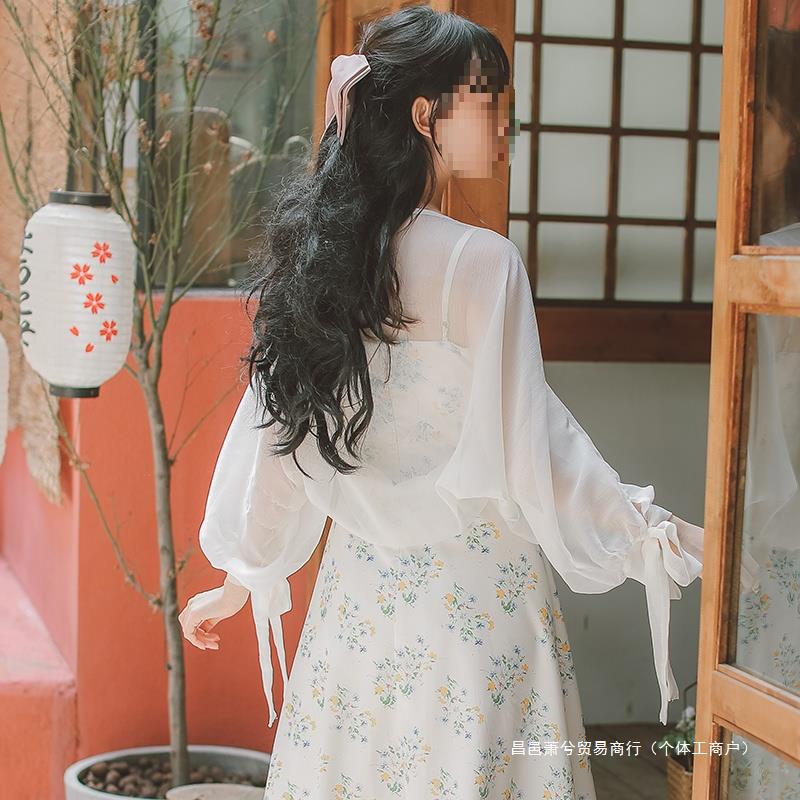 슈퍼 페어리 랜턴 슬리브 태양 보호 의류 여성 여름 얇은 쉬폰 카디건 작은 코트 목도리 매칭 스커트 웨이스트 코트 블라우스스토어 가기
