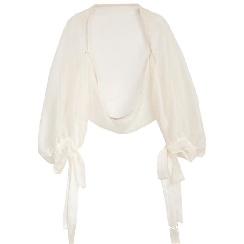 슈퍼 페어리 랜턴 슬리브 태양 보호 의류 여성 여름 얇은 쉬폰 카디건 작은 코트 목도리 매칭 스커트 웨이스트 코트 블라우스