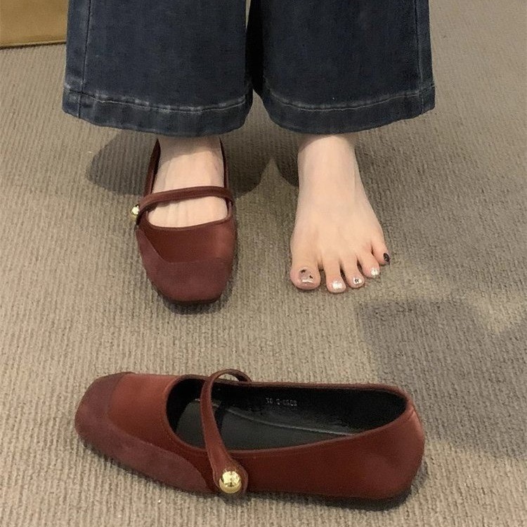 프랑스 스타일 메리 제인 신발 여성 신발 봄과 가을 2024 새로운 낮은 입 부드러운 플랫 바닥 틈새 스커트 우아한 싱글 신발스토어 가기
