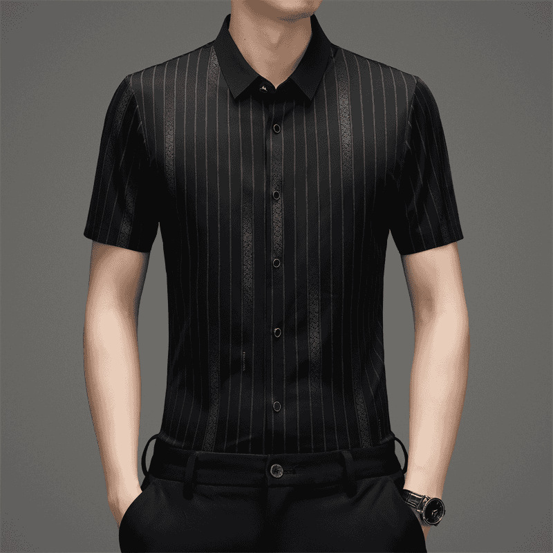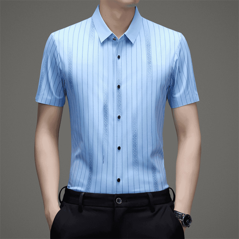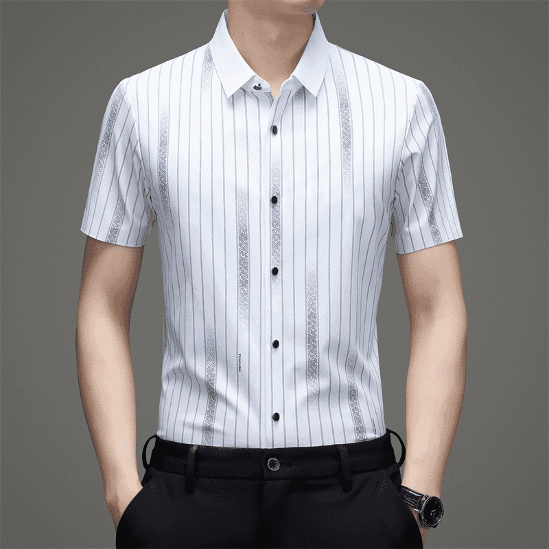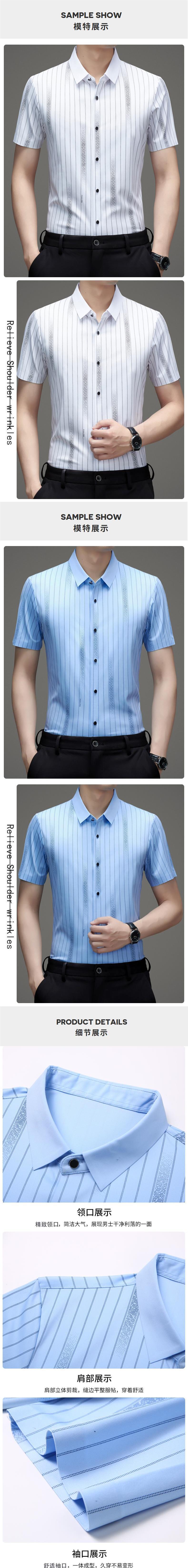 라이브 방송 폭발 여름 비즈니스 캐주얼 남성 반팔 셔츠 스트레치 트리스 스트라이프 인쇄 슬림핏 얇은 머리