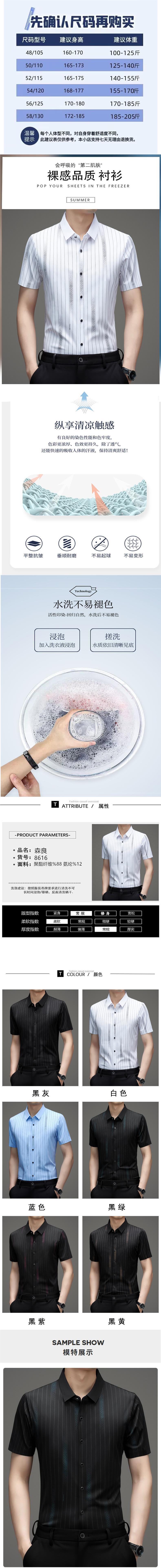 라이브 방송 폭발 여름 비즈니스 캐주얼 남성 반팔 셔츠 스트레치 트리스 스트라이프 인쇄 슬림핏 얇은 머리스토어 가기