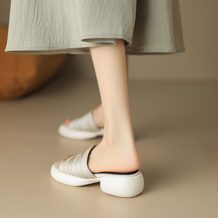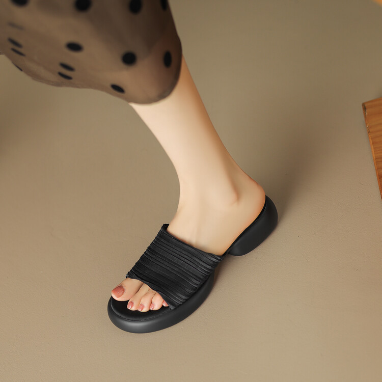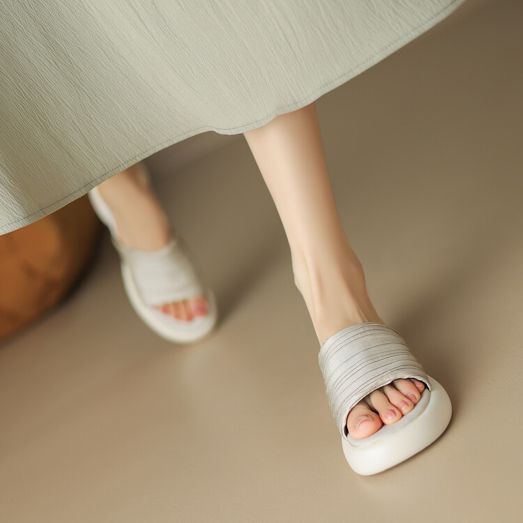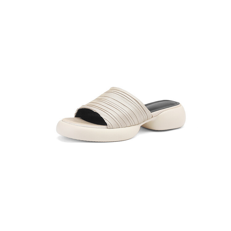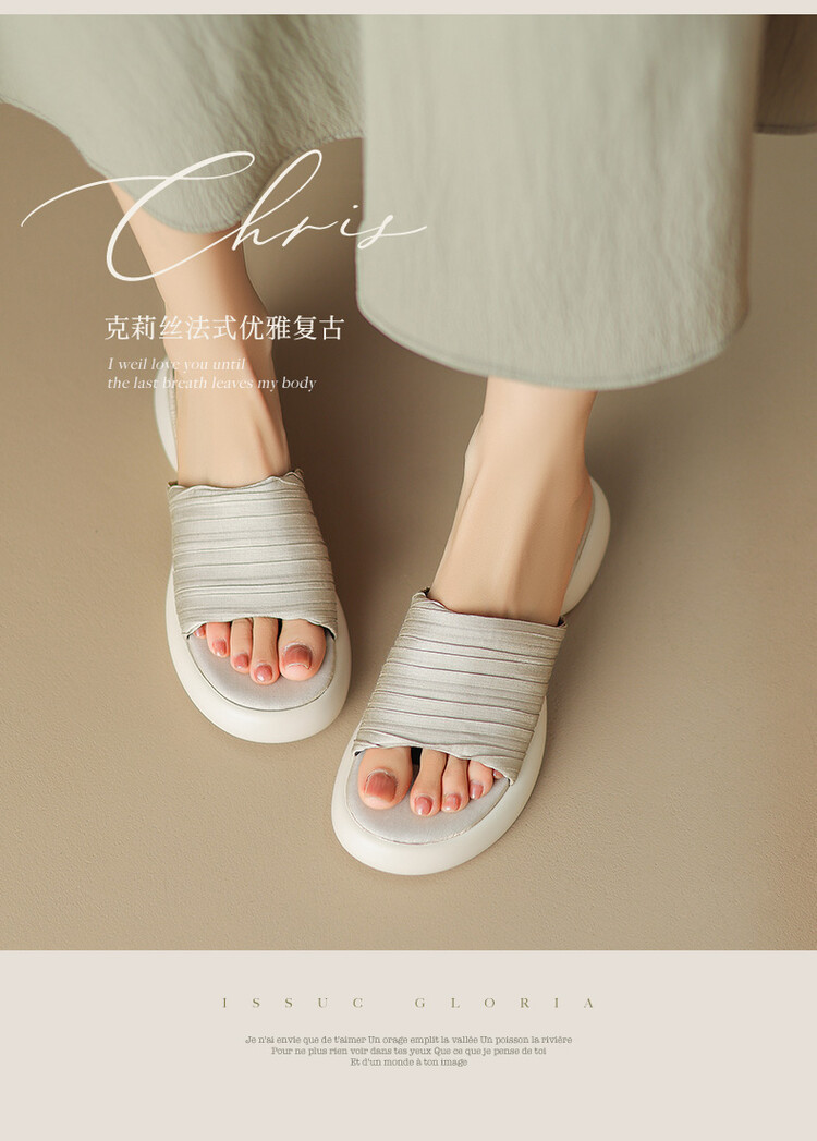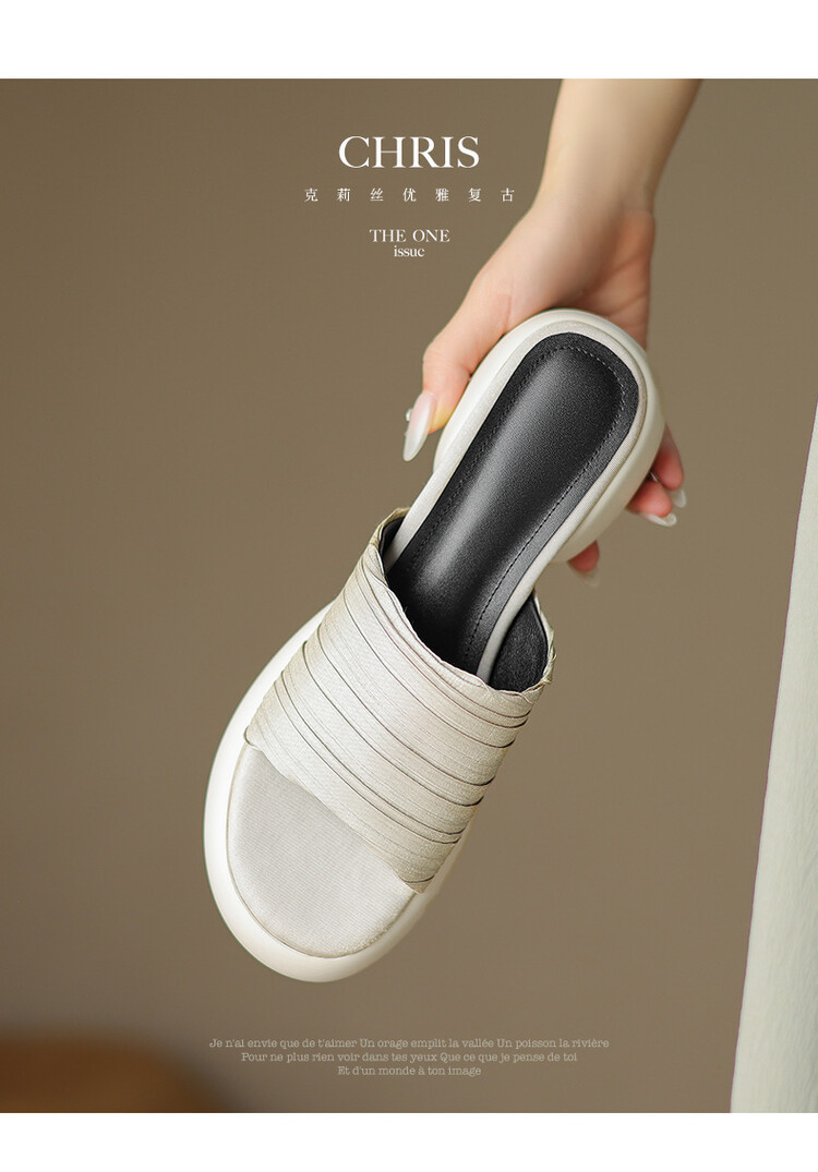 프랑스 스타일 두꺼운 밑창 비치 슬리퍼 2024 새로운 도착 슬립 온 젠장 여성용 여름 캐주얼 아우터 두꺼운 힐 샌들