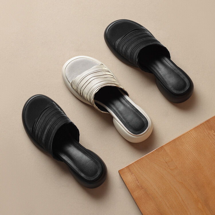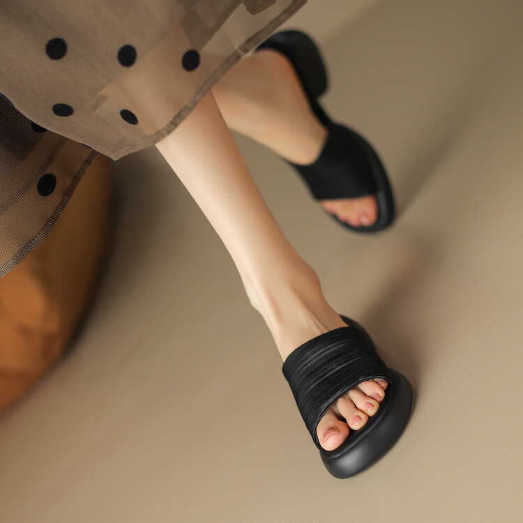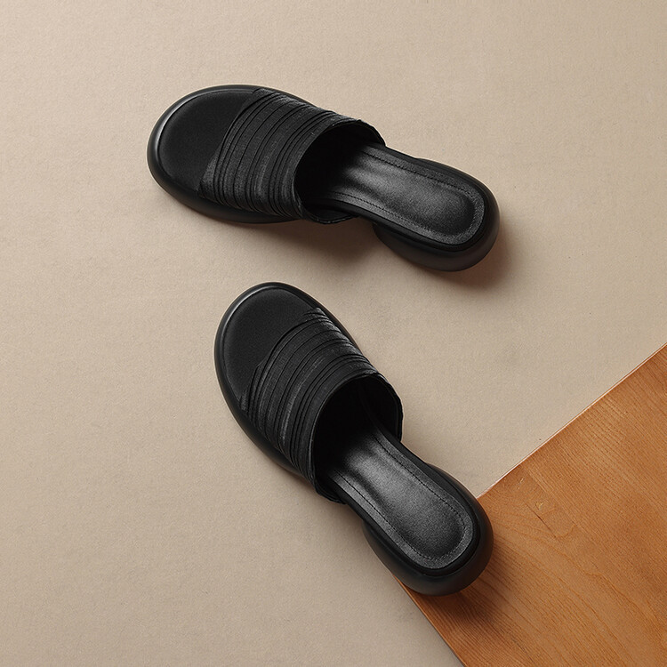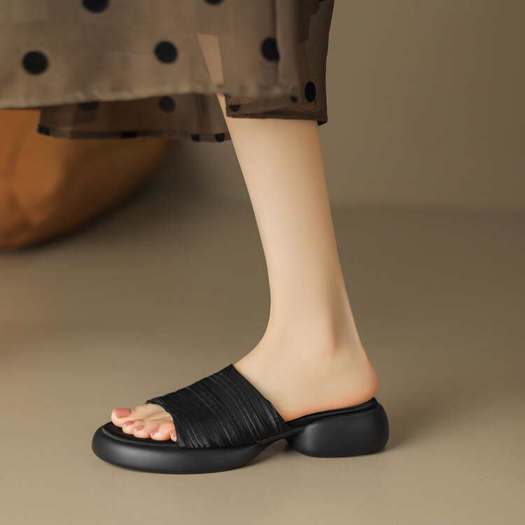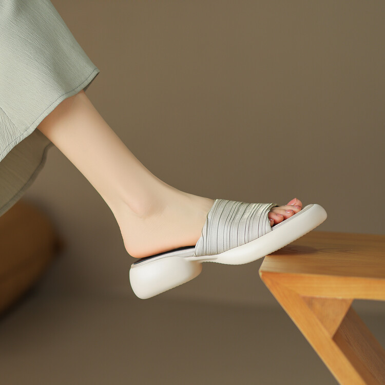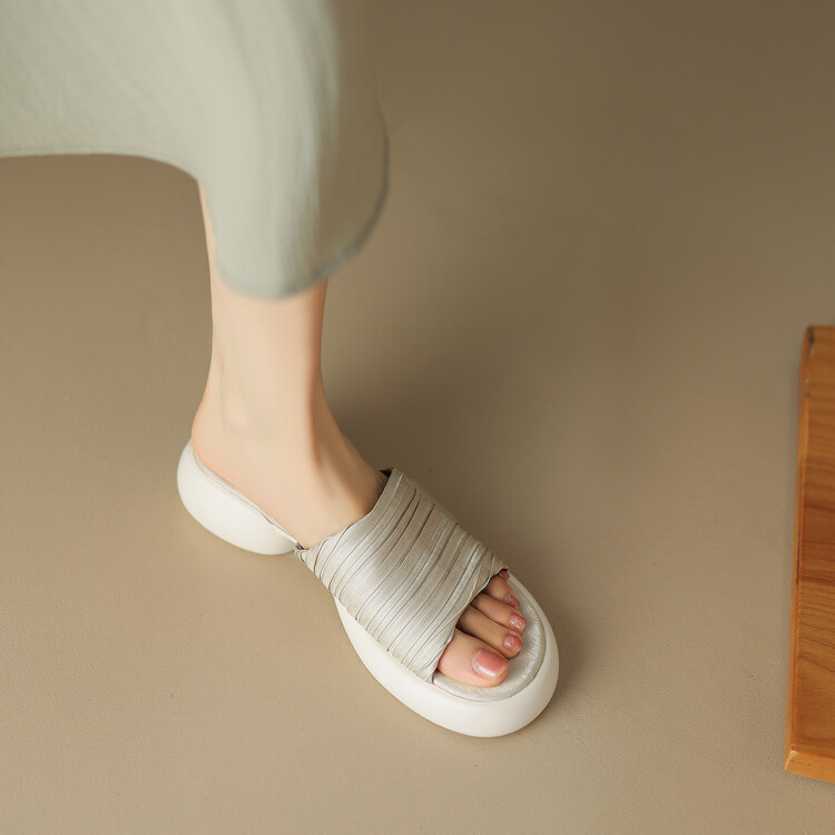 프랑스 스타일 두꺼운 밑창 비치 슬리퍼 2024 새로운 도착 슬립 온 젠장 여성용 여름 캐주얼 아우터 두꺼운 힐 샌들