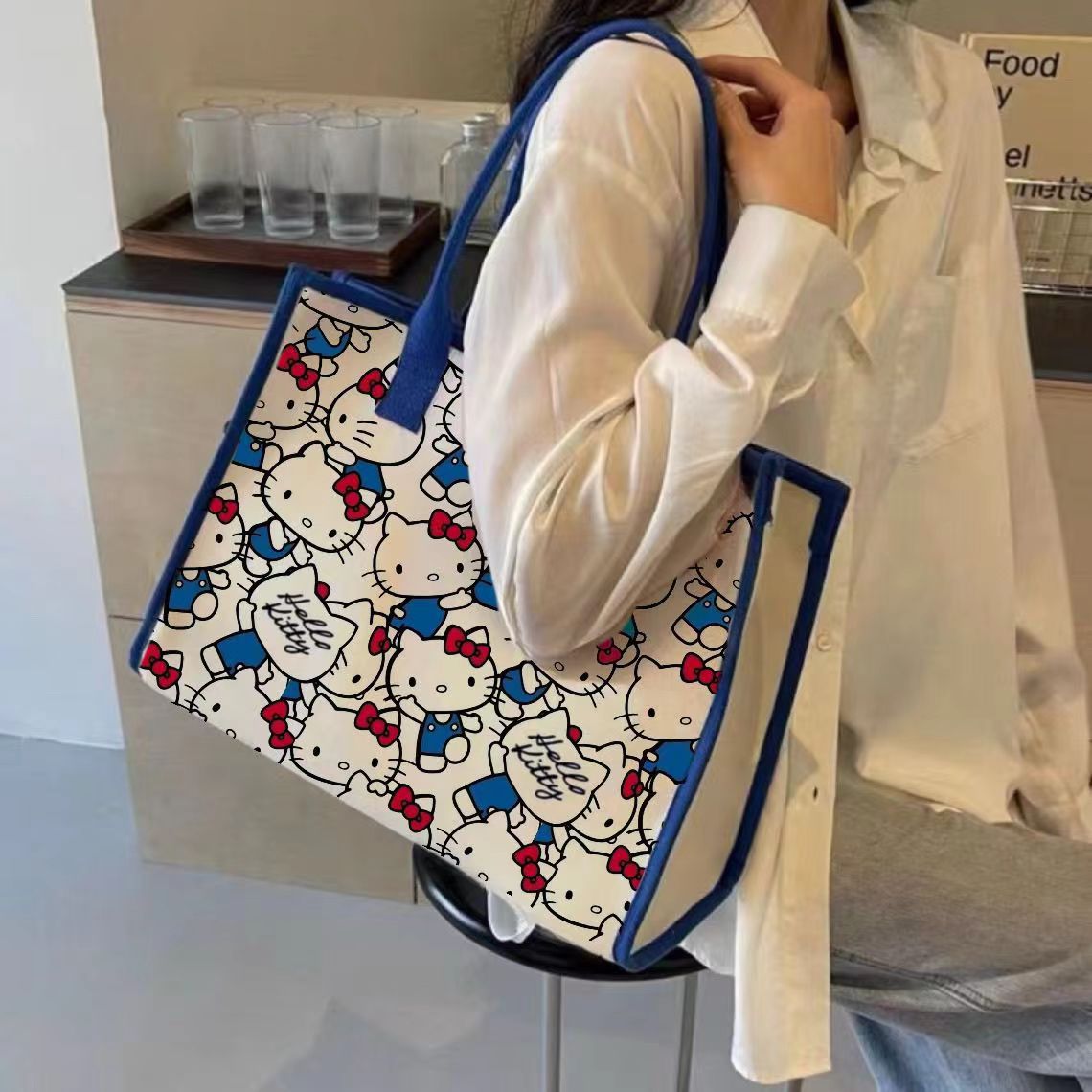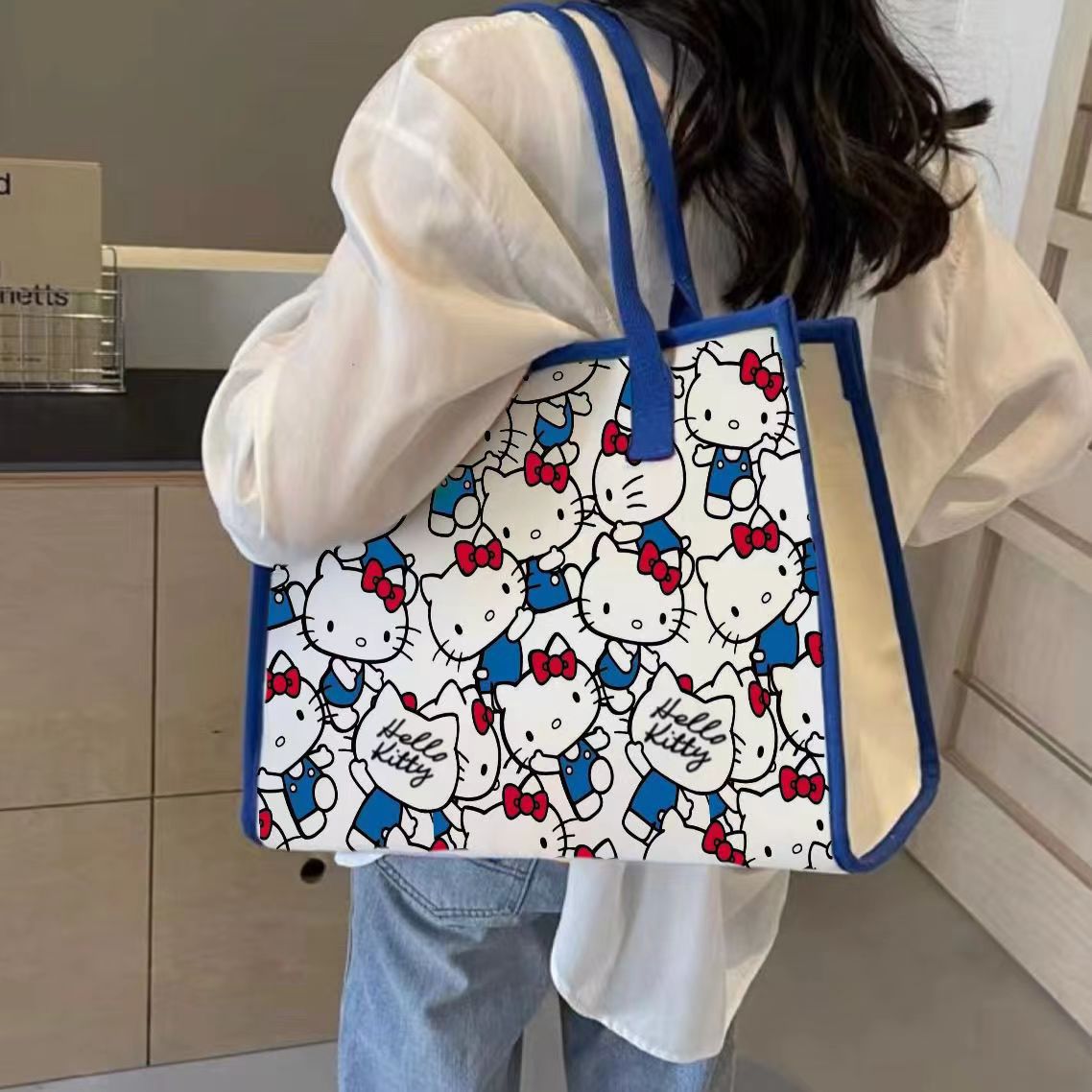 대용량 만화 캔버스 가방 여성 학생 통근 패션 외출 휴대용 쇼핑백 미라 어깨 가방스토어 가기