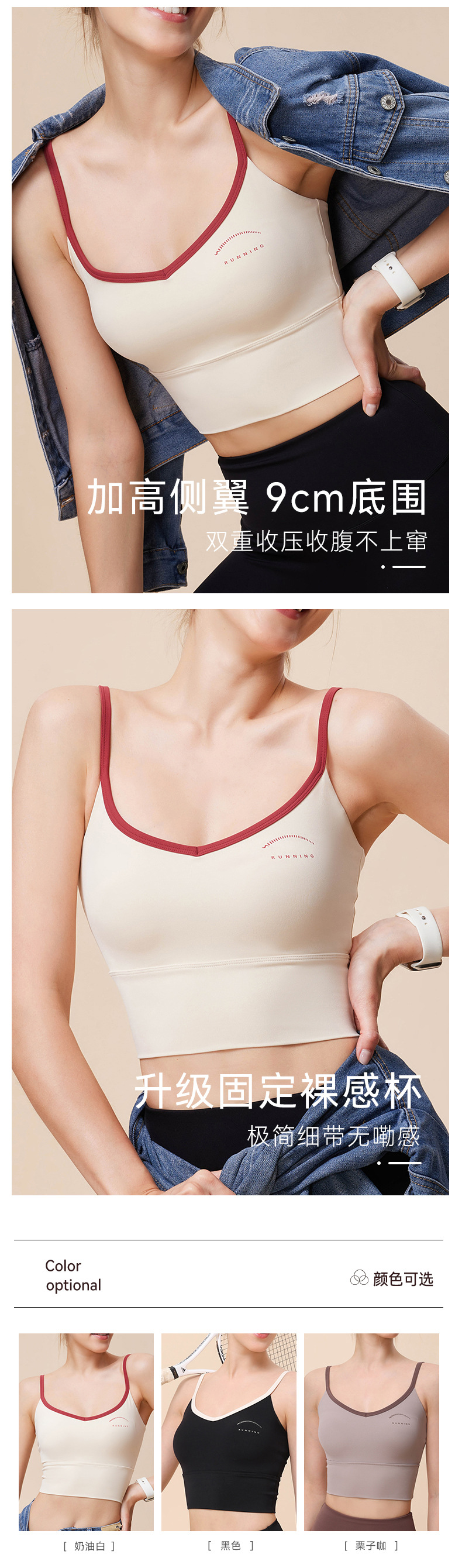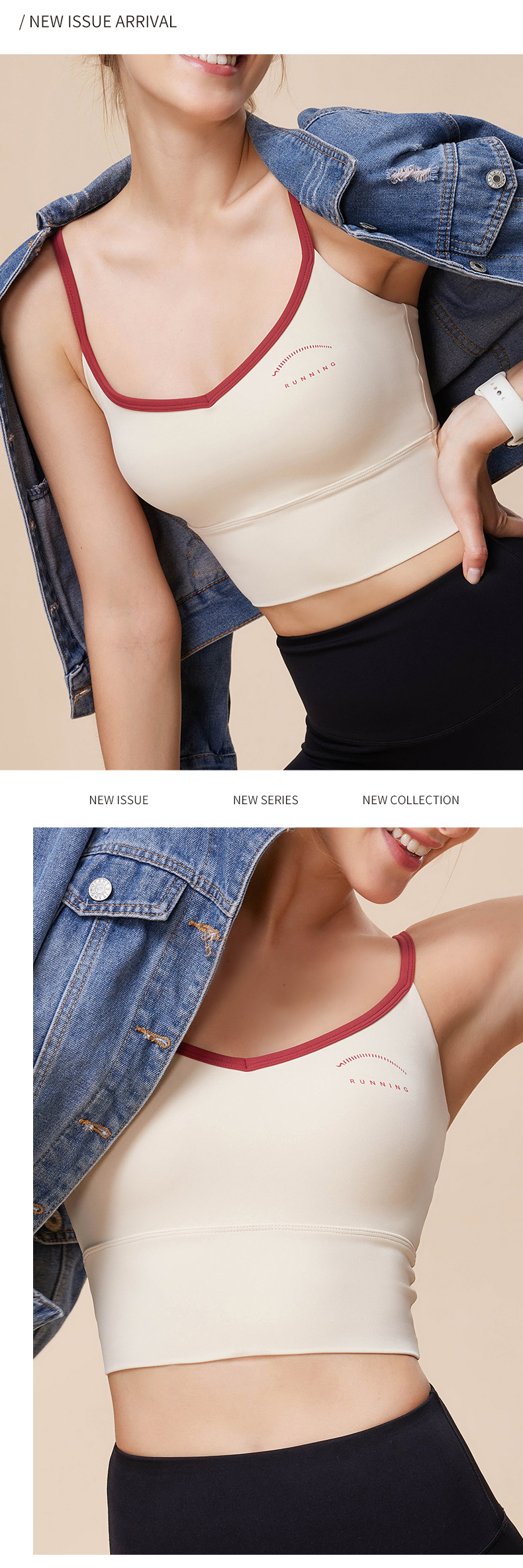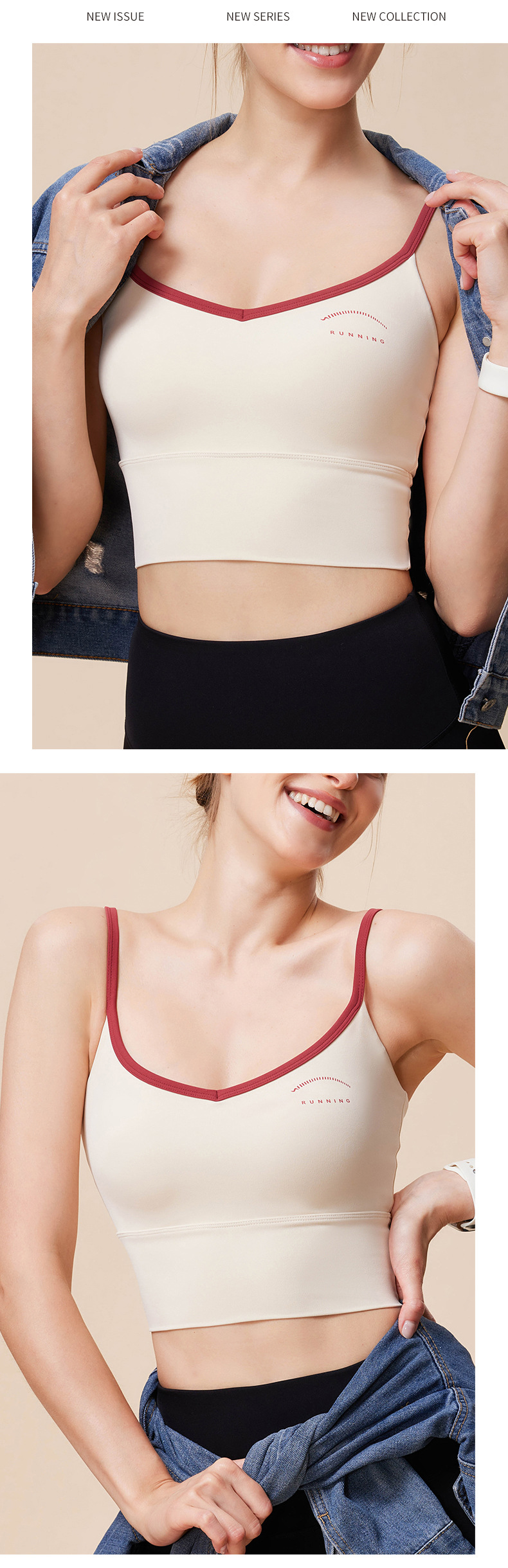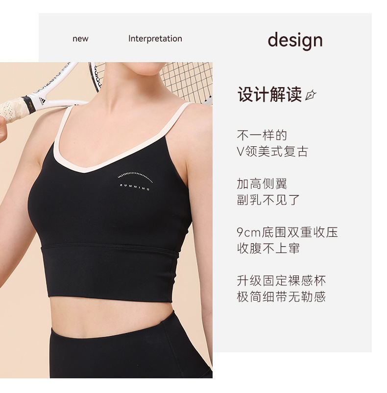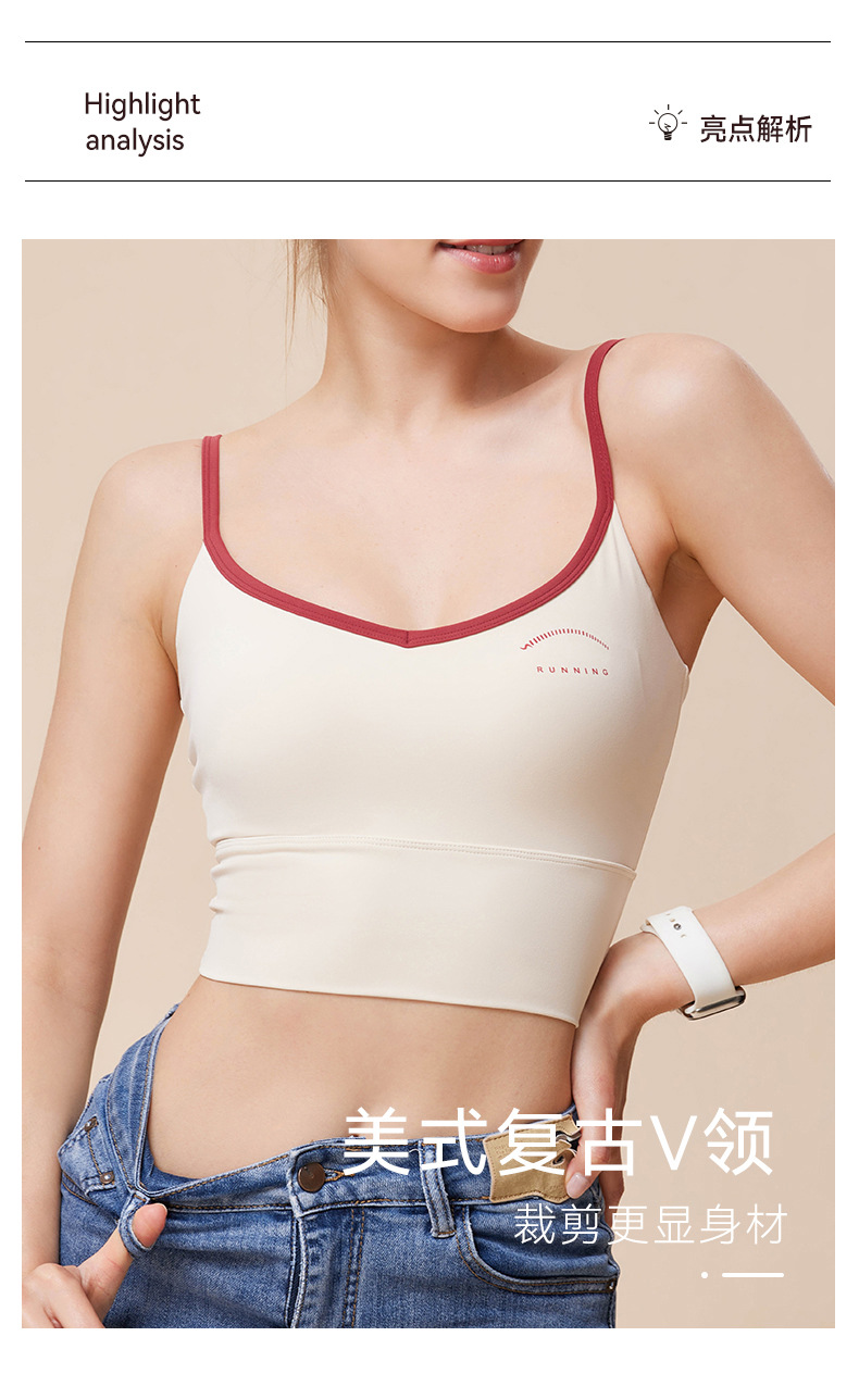 새로운 V 넥 미국 복고풍 스포츠 브래지어 고정 컵 복부 요가 속옷 스포츠 피트니스 액세서리 브래지어