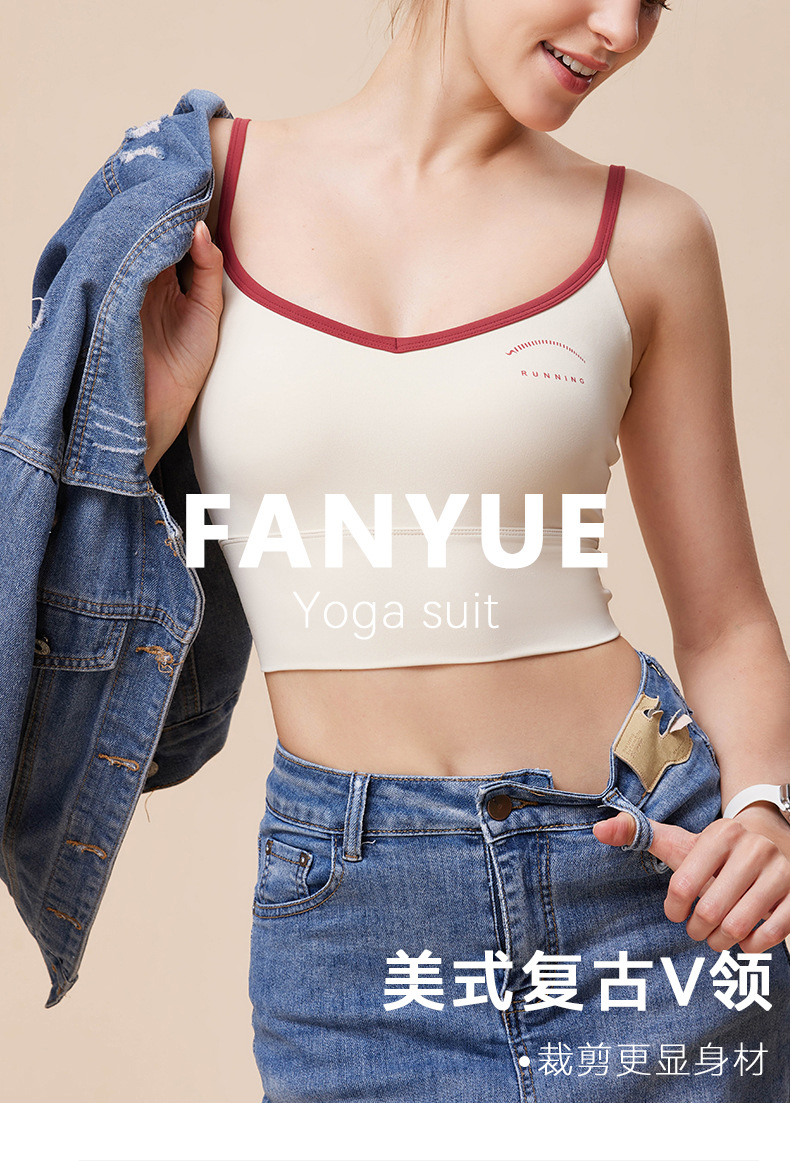 새로운 V 넥 미국 복고풍 스포츠 브래지어 고정 컵 복부 요가 속옷 스포츠 피트니스 액세서리 브래지어스토어 가기