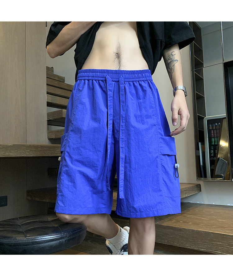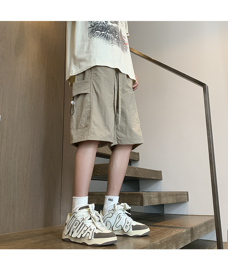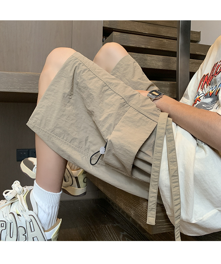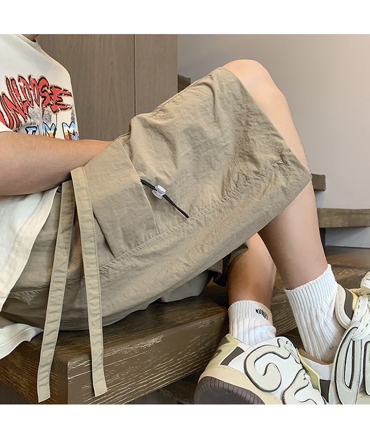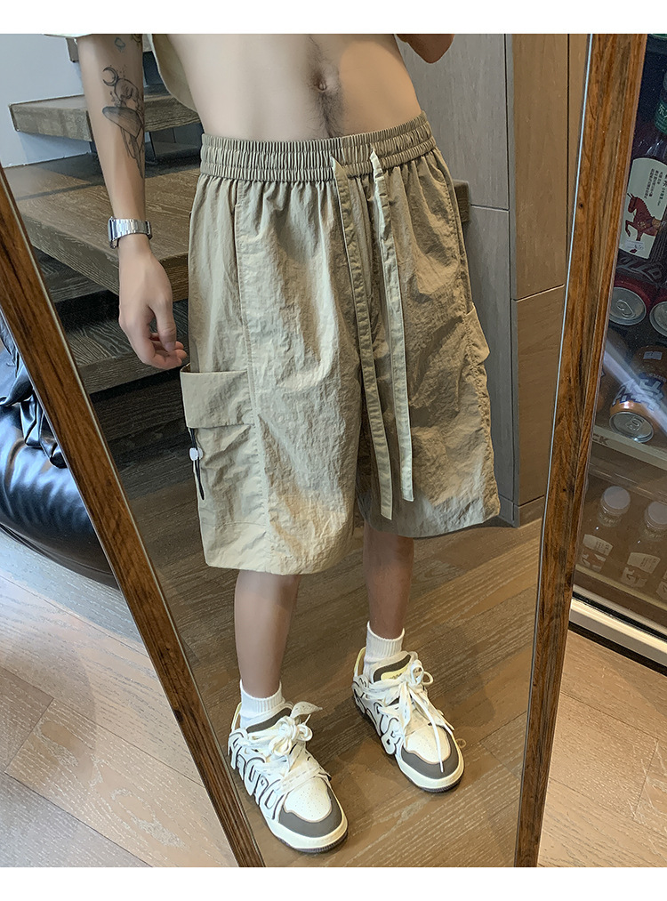 아이스 실크 빠른 건조 바지 2024 툴링 바지 남녀 홍콩 스타일의 트렌디 한 스트레이트 플레이트 여름 캐주얼 반바지스토어 가기