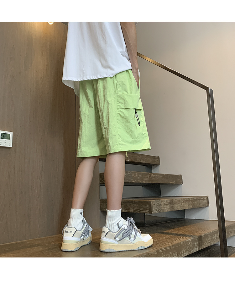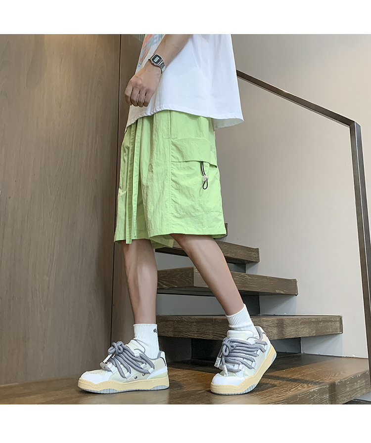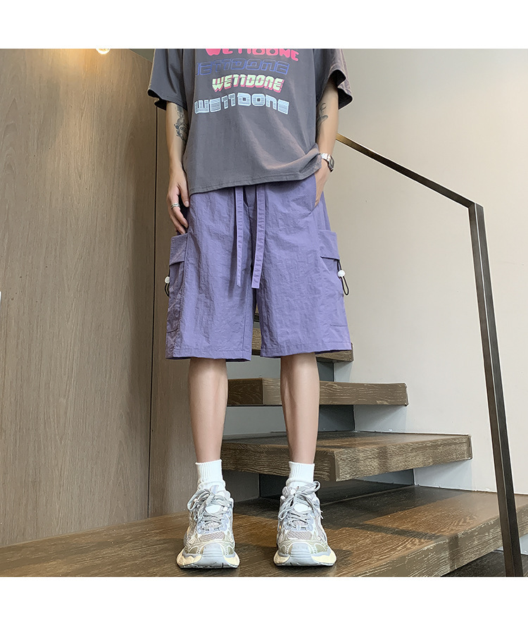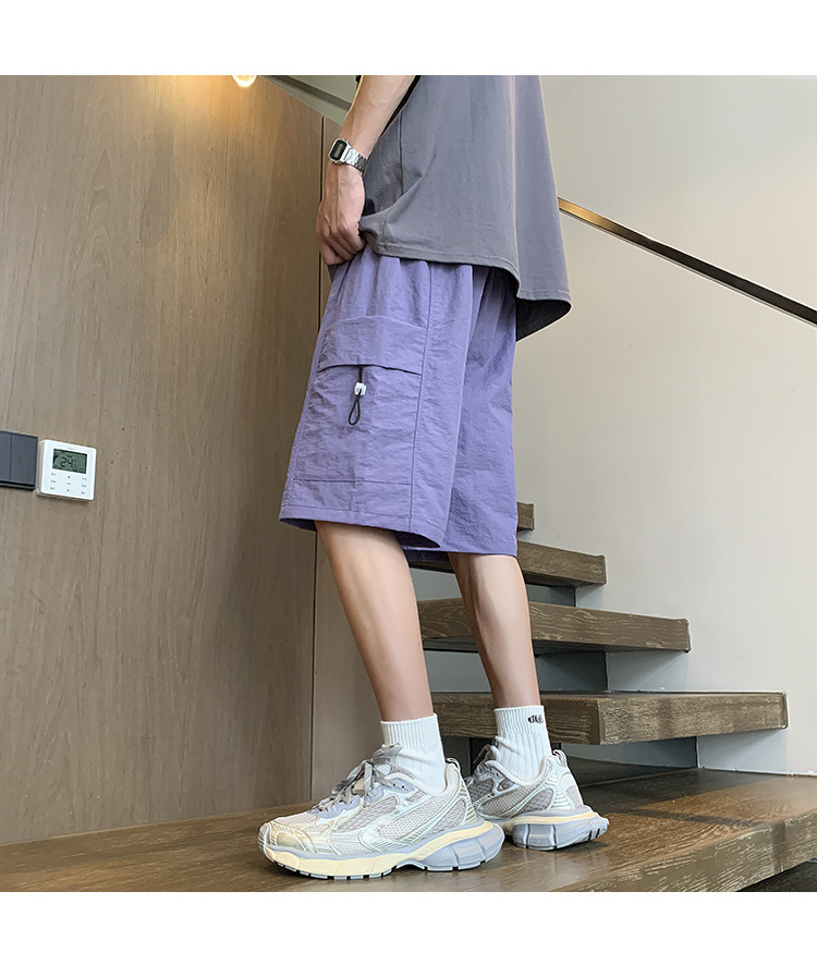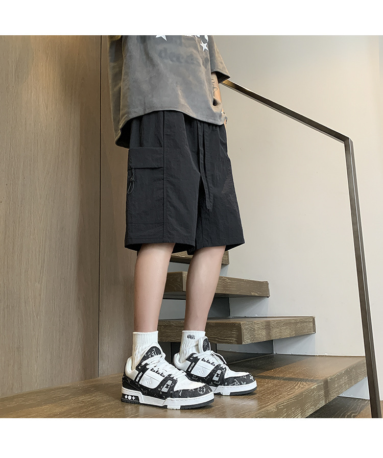 아이스 실크 빠른 건조 바지 2024 툴링 바지 남녀 홍콩 스타일의 트렌디 한 스트레이트 플레이트 여름 캐주얼 반바지스토어 가기
