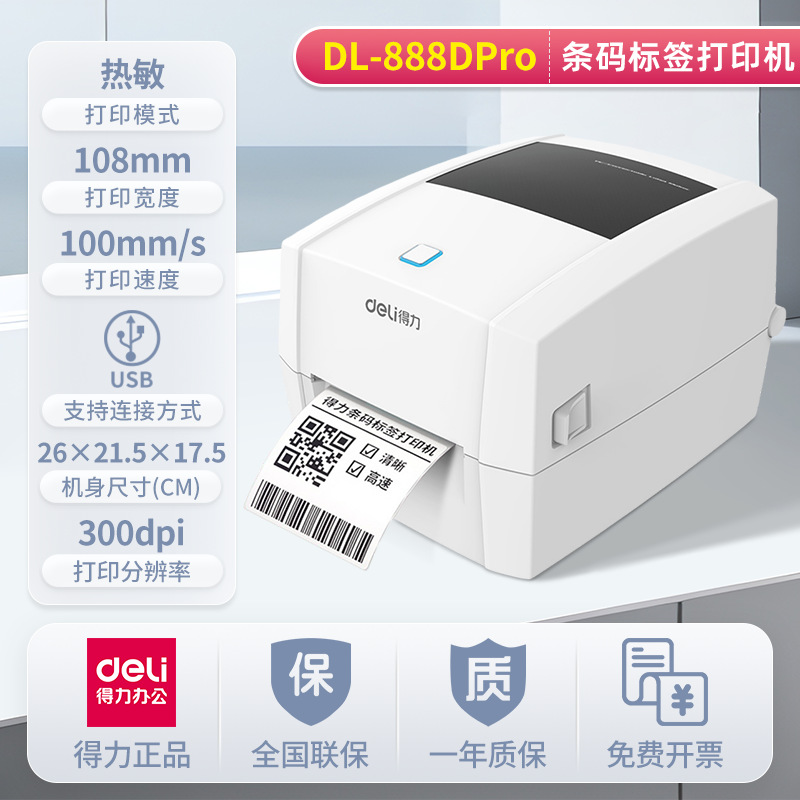 델리 888D 프로 열 라벨 프린터 익스프레스 표면 단일 HD 300dpi 바코드 라벨 프린터