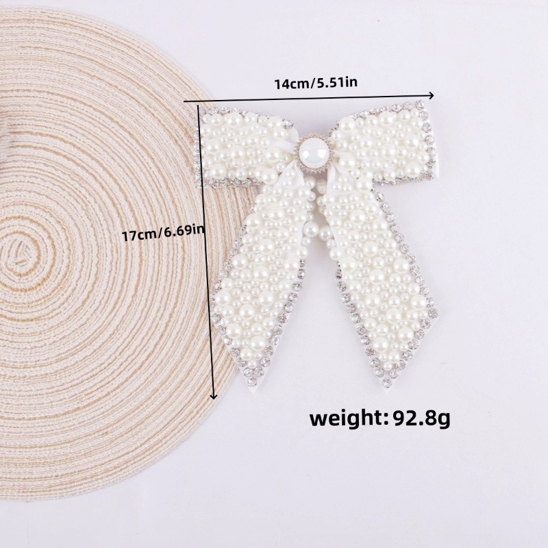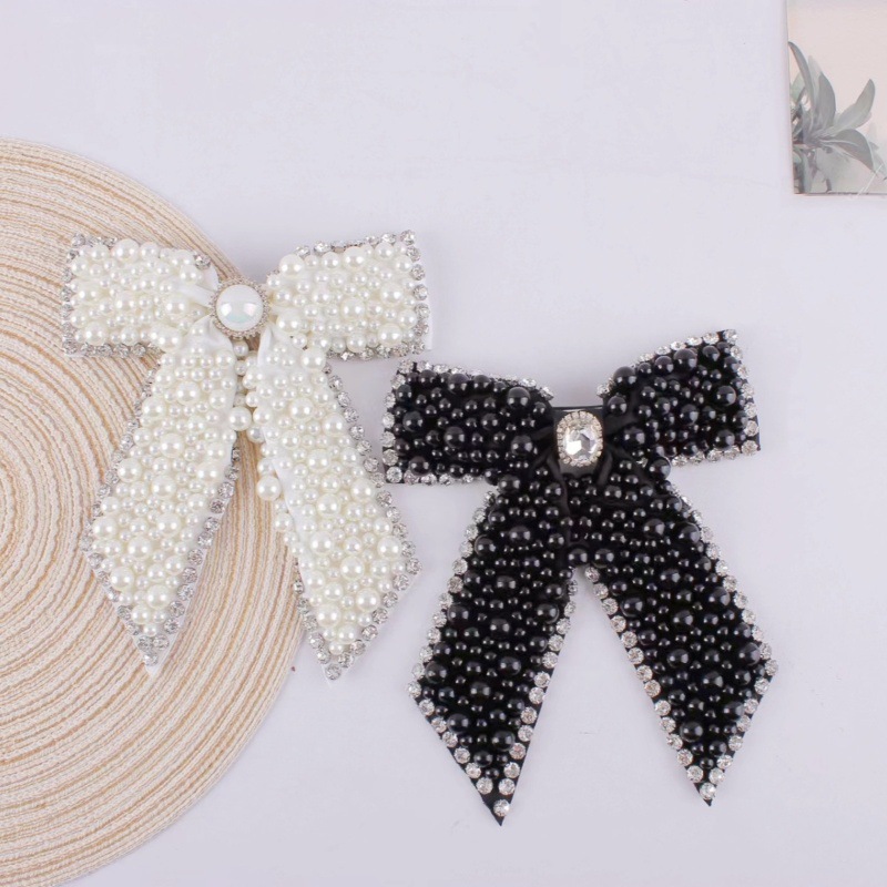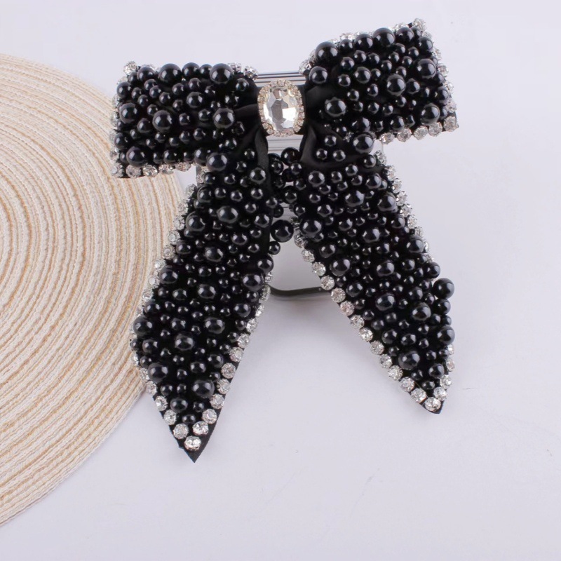 크로스보더 진주와 라인스톤 리본 헤어핀, 심플하고 패셔너블하며 다용도, 스프링 클립 헤어 액세서리, 정교한 헤어 장식, 라인스톤 디자인스토어 가기