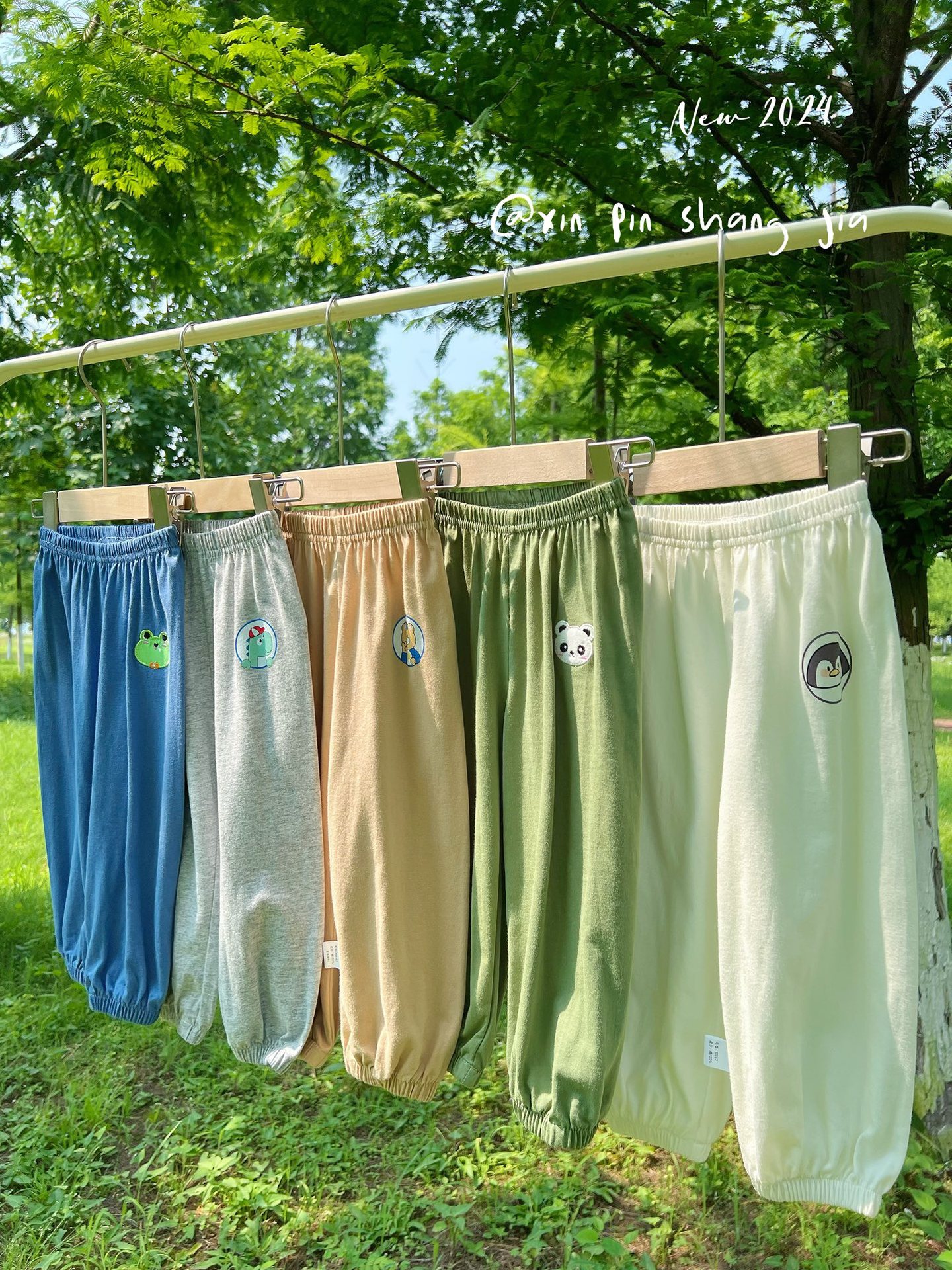 2025 새로운 단색 모기 방지 바지 소년과 소녀를위한 11 색 어린이 바지 캐주얼 바지 아동 의류 레깅스 여름 착용스토어 가기
