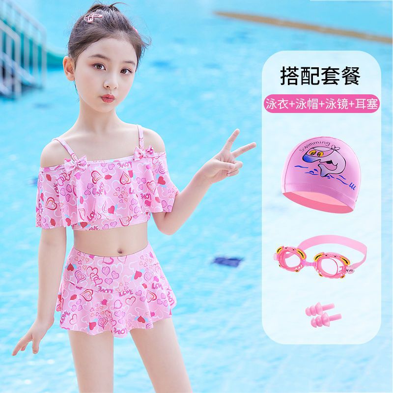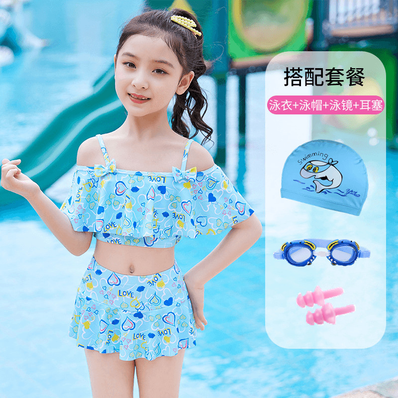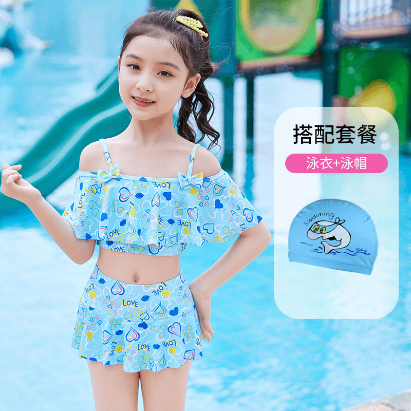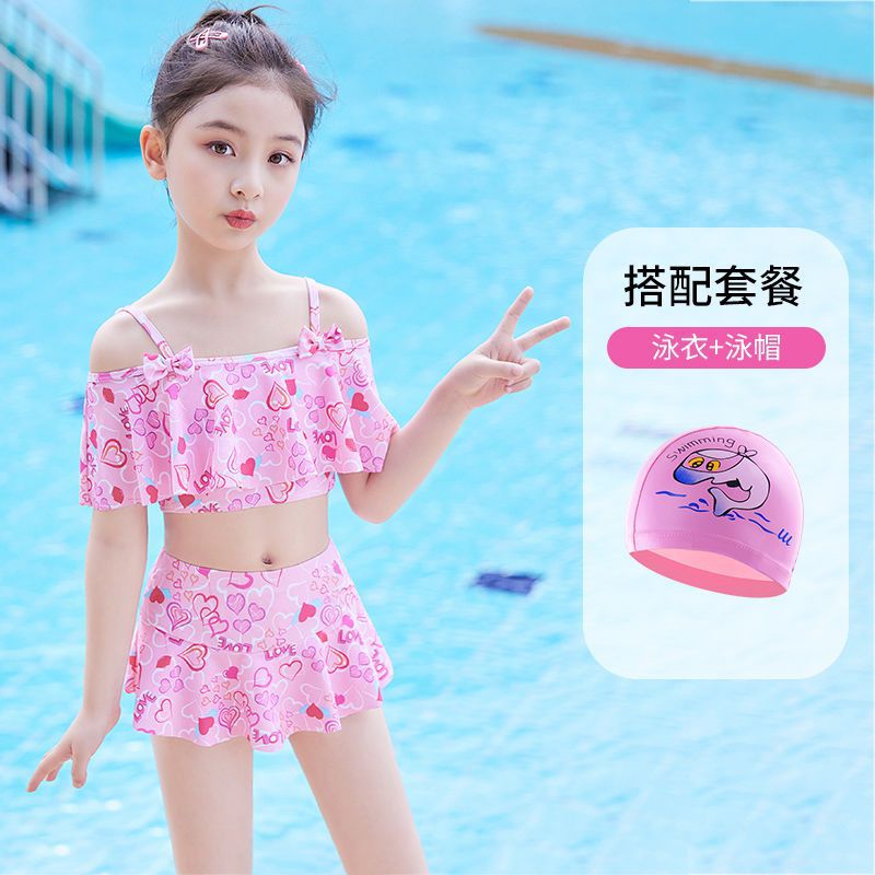 여자 수영복 신식 중대형 어린이 분할 태양 보호 수영복 걸스 급건조 비키니 수영복 세트 공연 옷스토어 가기
