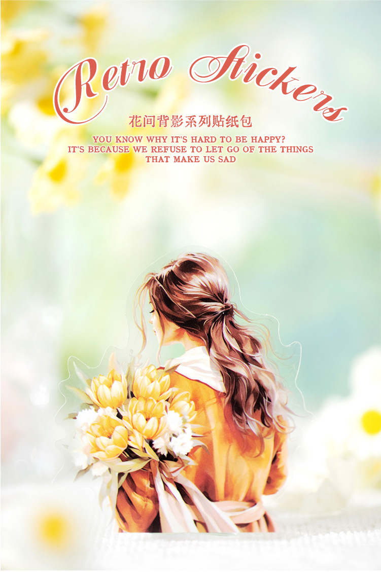 꽃 백 PET 스티커 가방 복고풍 예술 꽃 소녀 백 콜라주 손 계정 장식 포즈 사진 소재스토어 가기