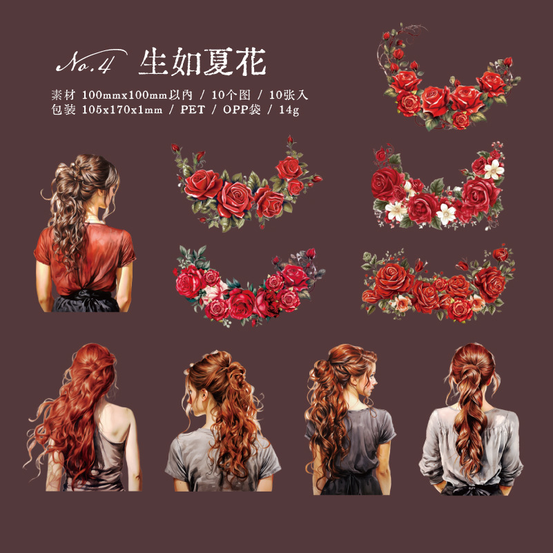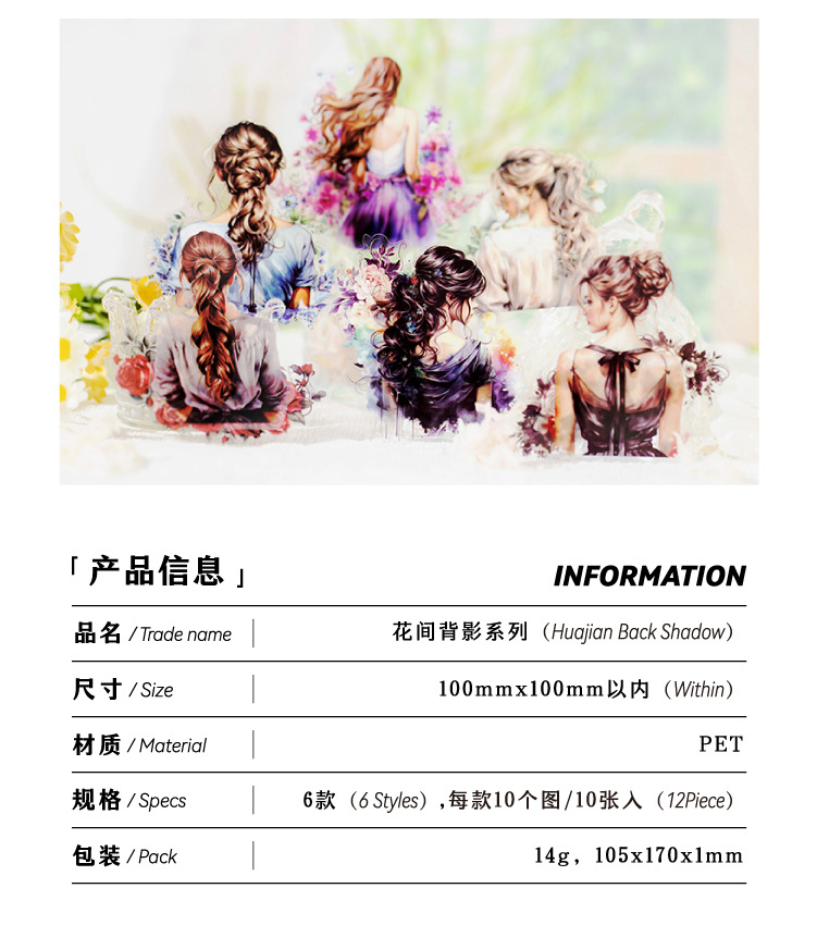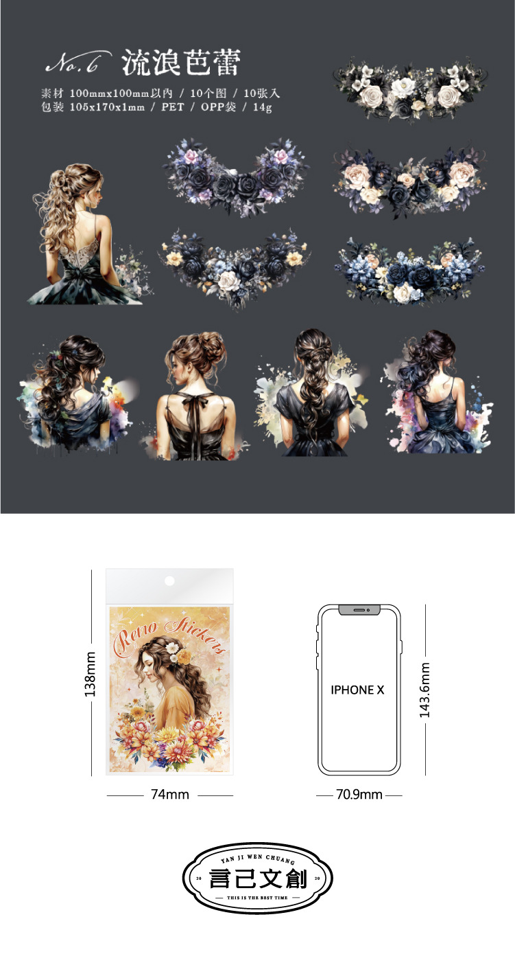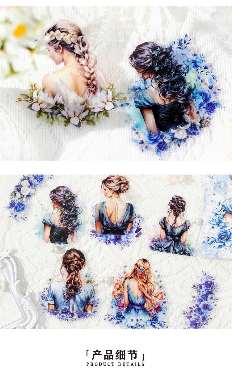 꽃 백 PET 스티커 가방 복고풍 예술 꽃 소녀 백 콜라주 손 계정 장식 포즈 사진 소재