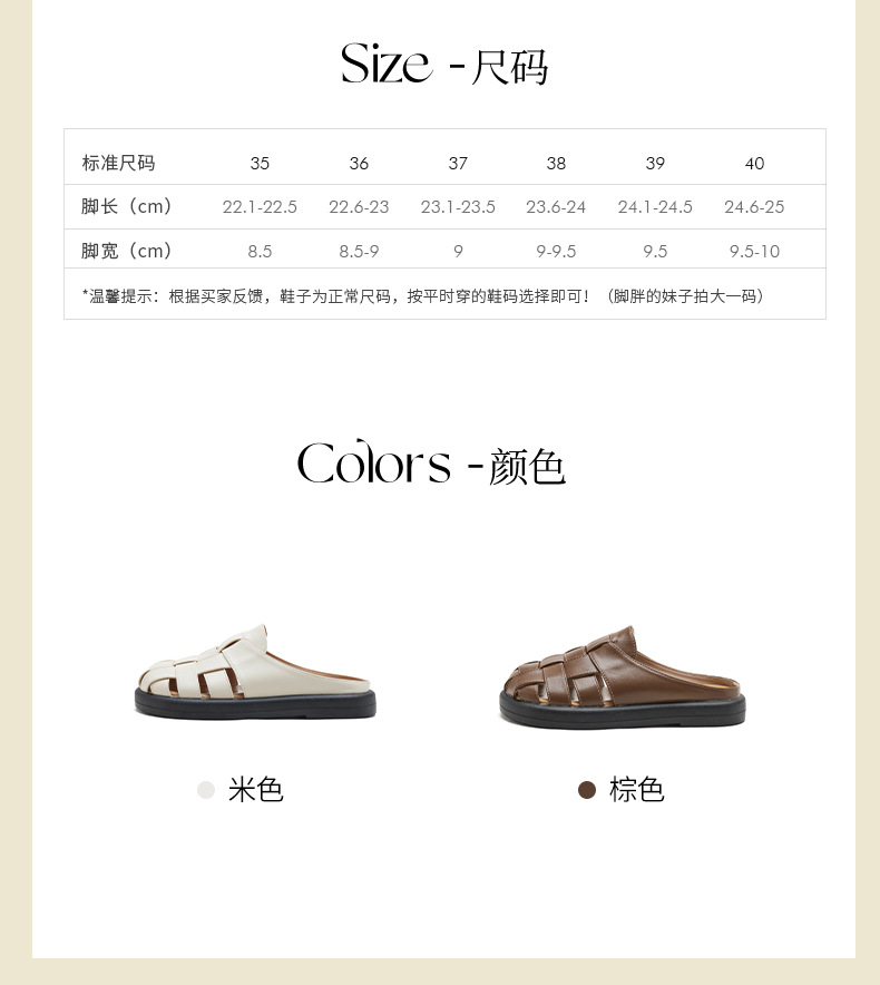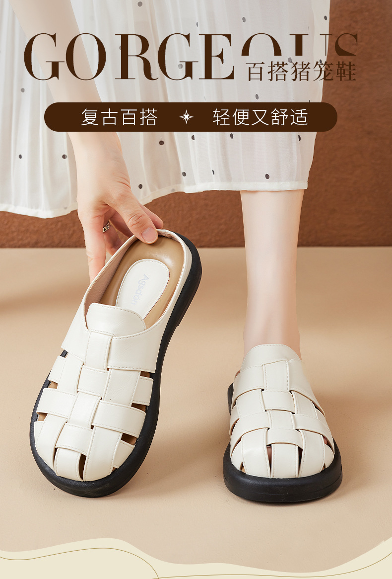 여성용 Augushiden 플랫 슬리퍼 2025 신작 여름 바오터우 슬립 온 외부 직조 중공 로마 샌들스토어 가기