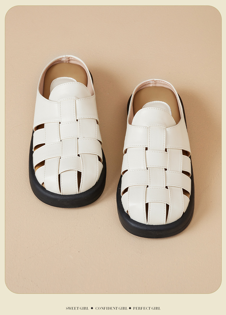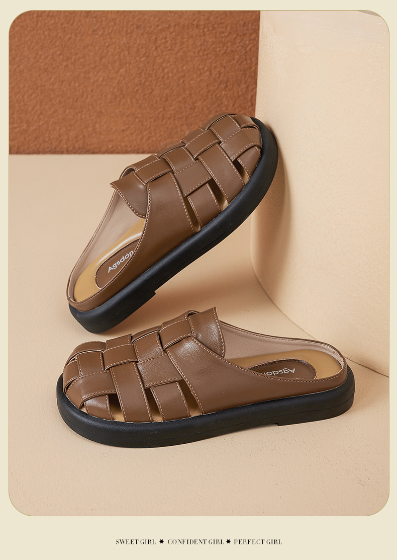 여성용 Augushiden 플랫 슬리퍼 2025 신작 여름 바오터우 슬립 온 외부 직조 중공 로마 샌들