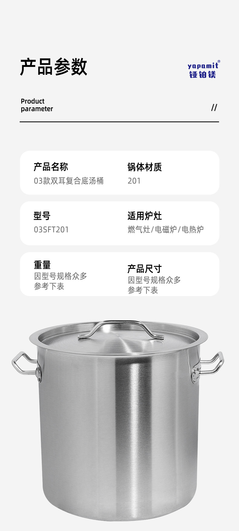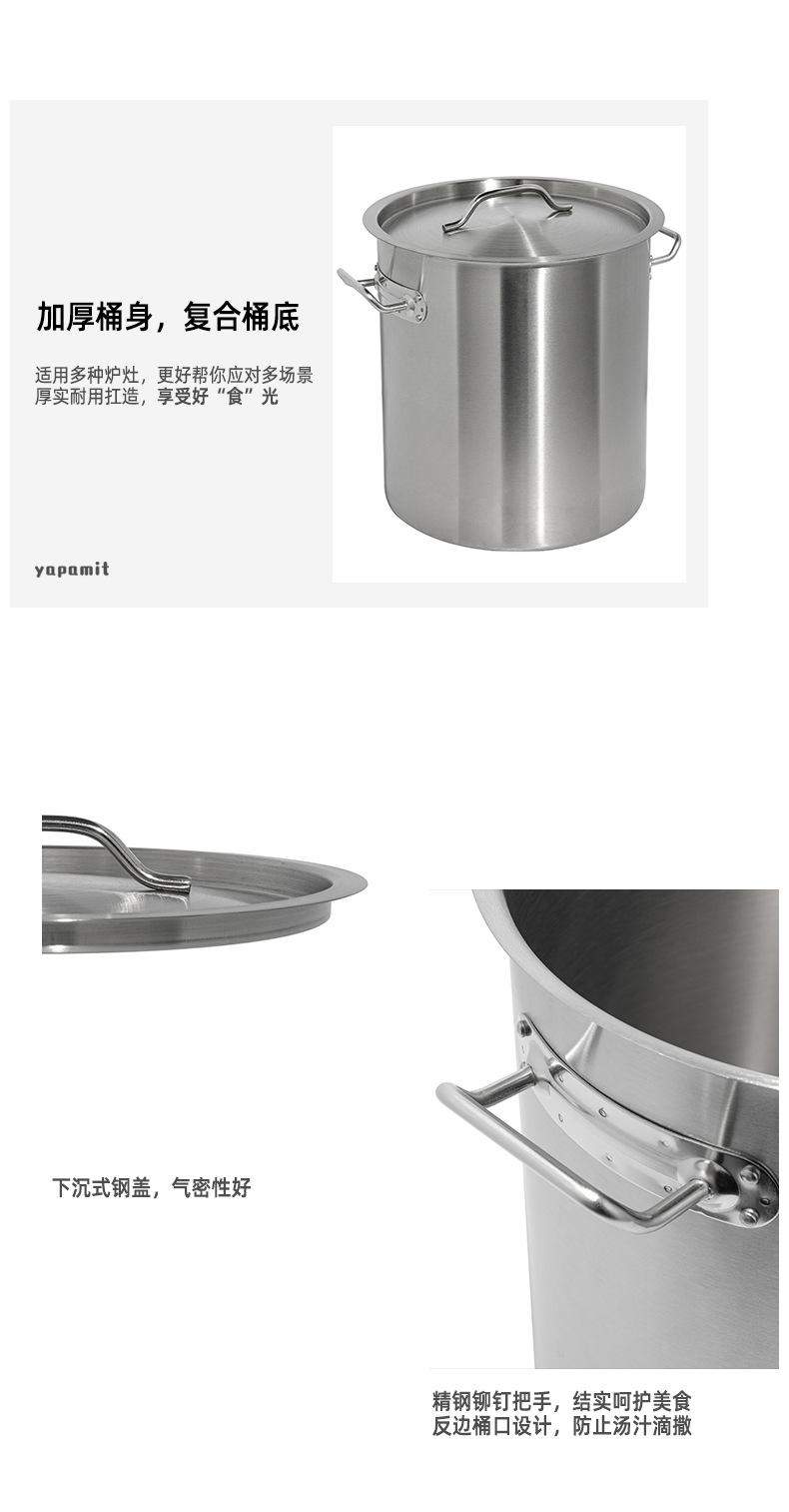 대용량 두꺼운 바닥 스테인레스 스틸 배럴 뚜껑 바이노럴 복합 바닥 수프 배럴 상업용 호텔 절인 고기 특수 배럴 도매