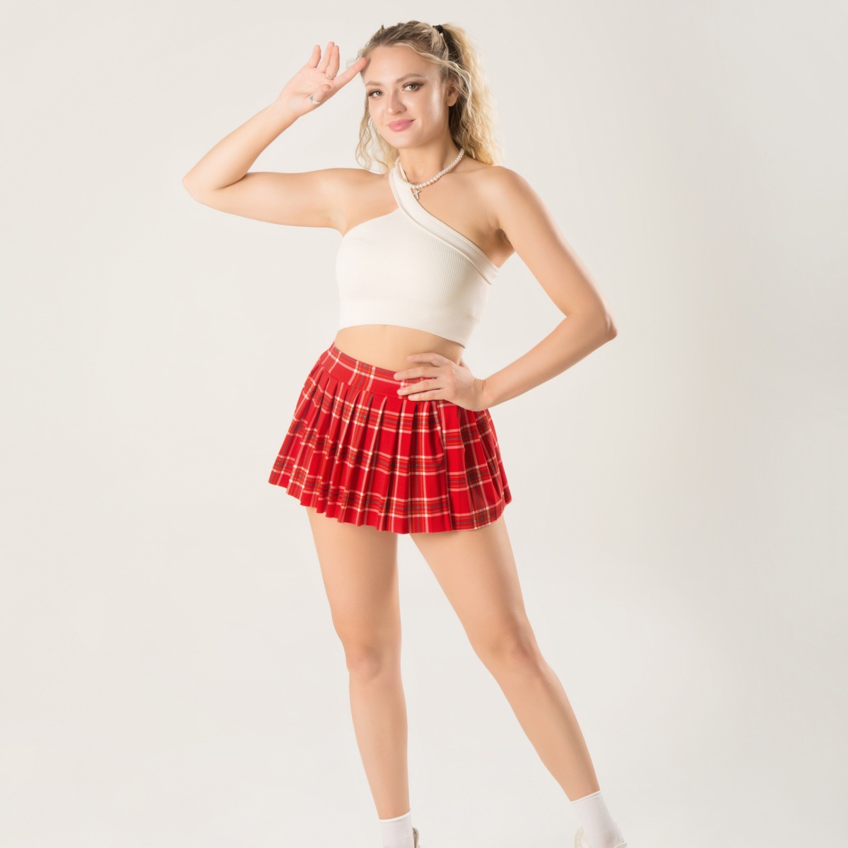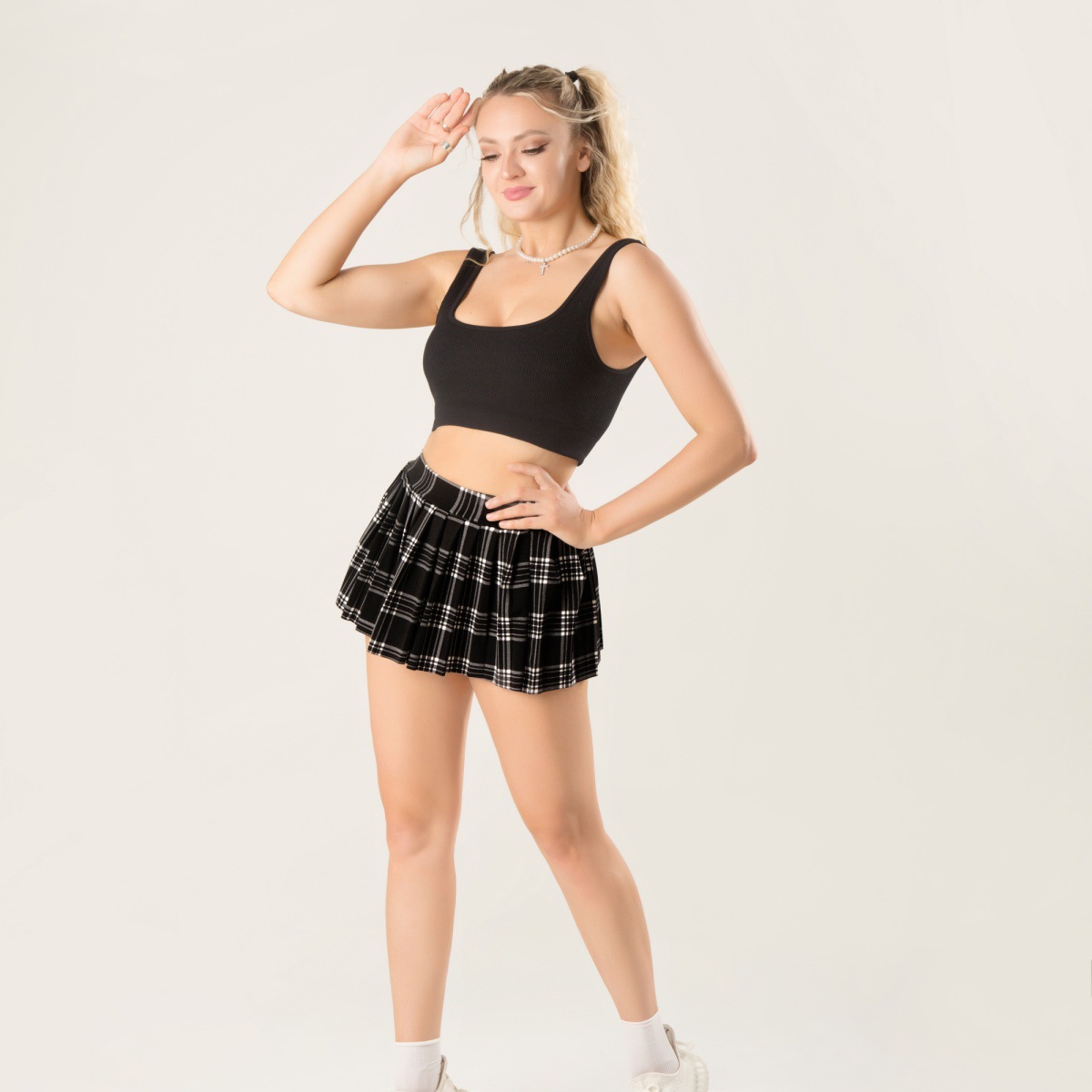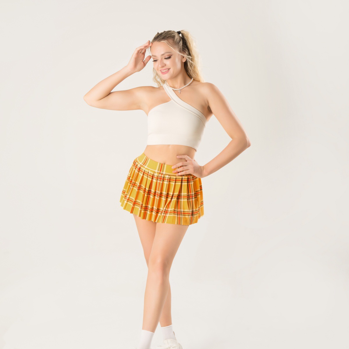 안전 바지 스포츠 재미 작은 치마없이 새로운 울트라 짧은 주름 치마 프린트 탄성 벨트 미니 스커트