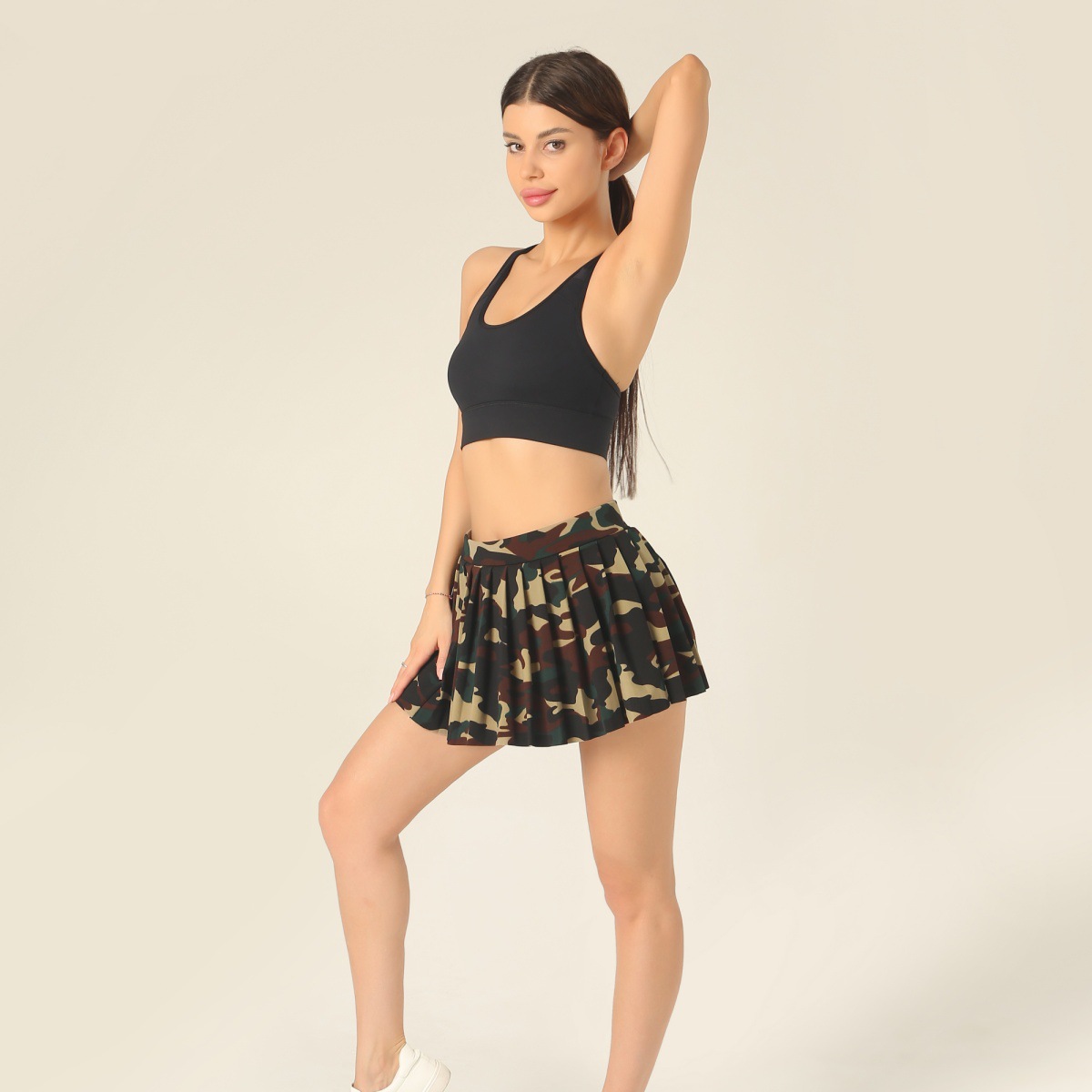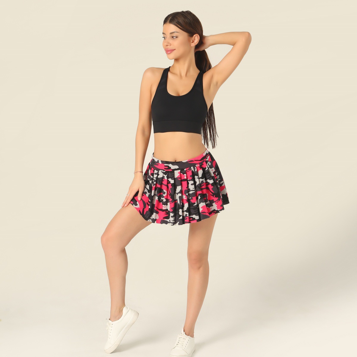 안전 바지 스포츠 재미 작은 치마없이 새로운 울트라 짧은 주름 치마 프린트 탄성 벨트 미니 스커트스토어 가기