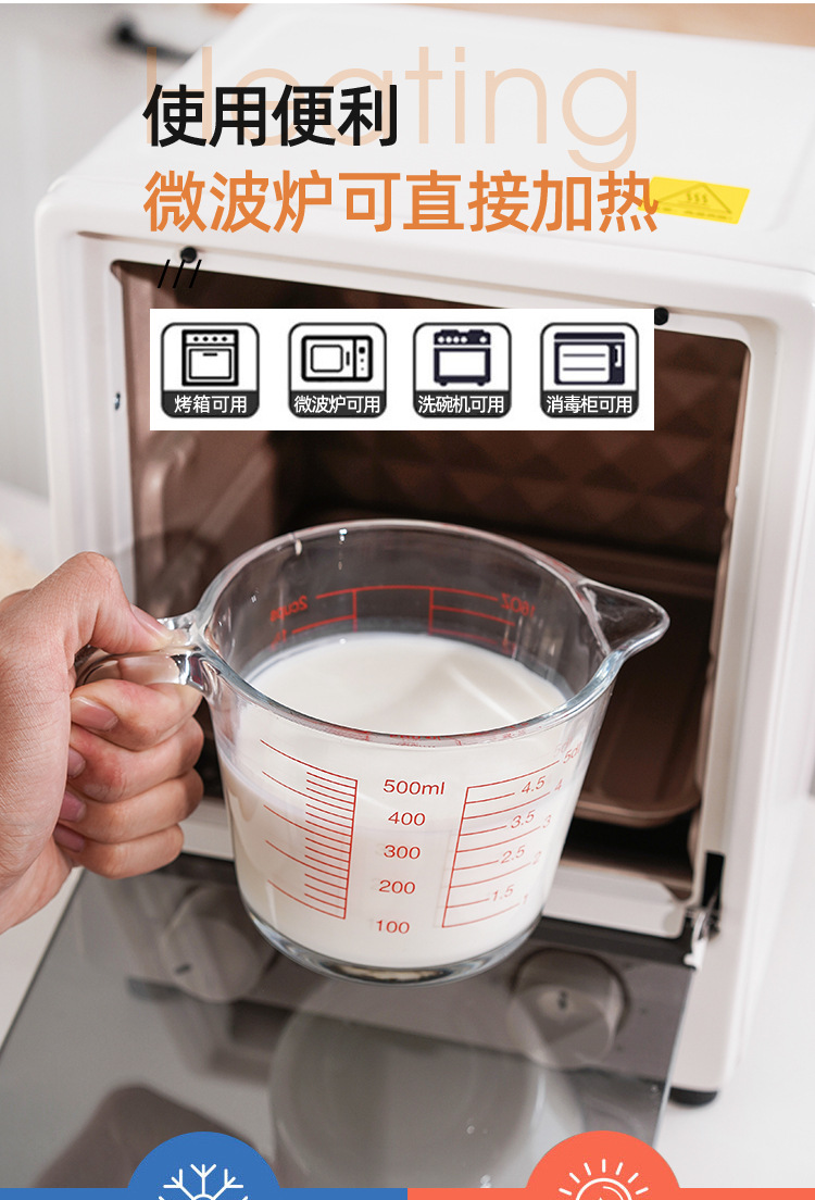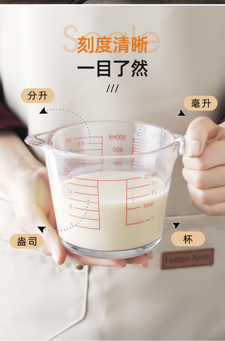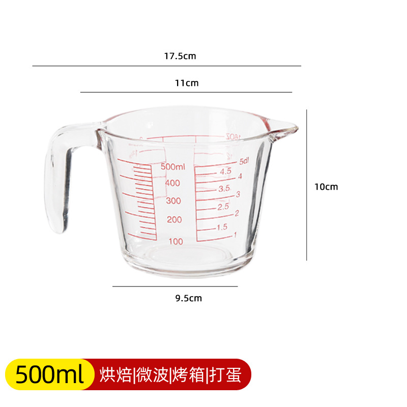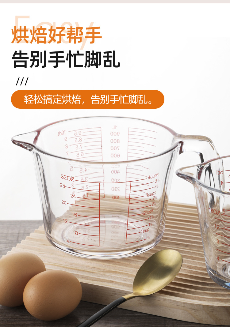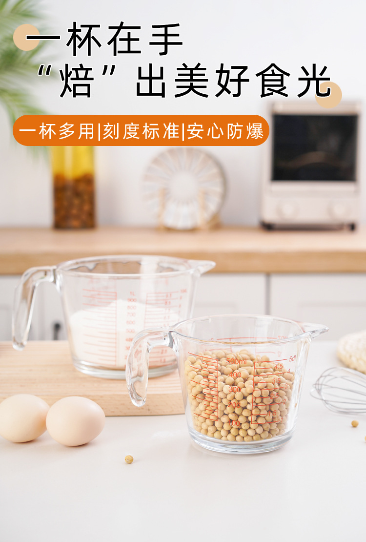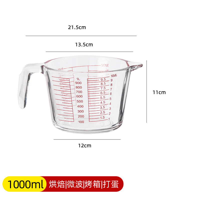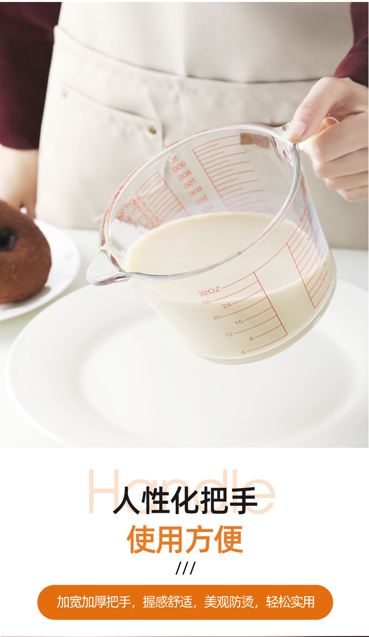 투명 유리 대용량 교반 베이킹 측정 컵 스케일 고온 내성 주방 우유 계란 측정 핸들