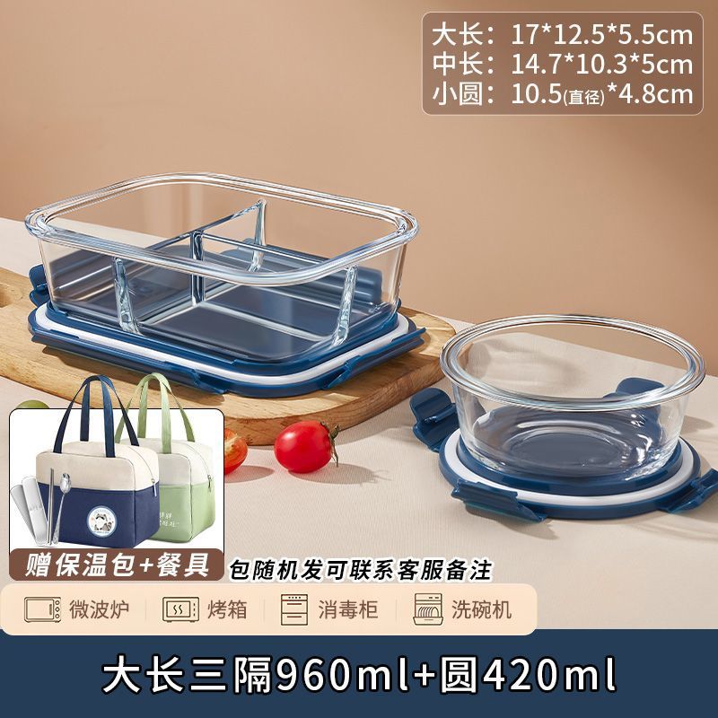 사무실 노동자 휴대용 냉장고 신선한 유지 높은 온도 저항 유리 그릇 세트 난방 도시락 상자 전자 레인지 특수 식기