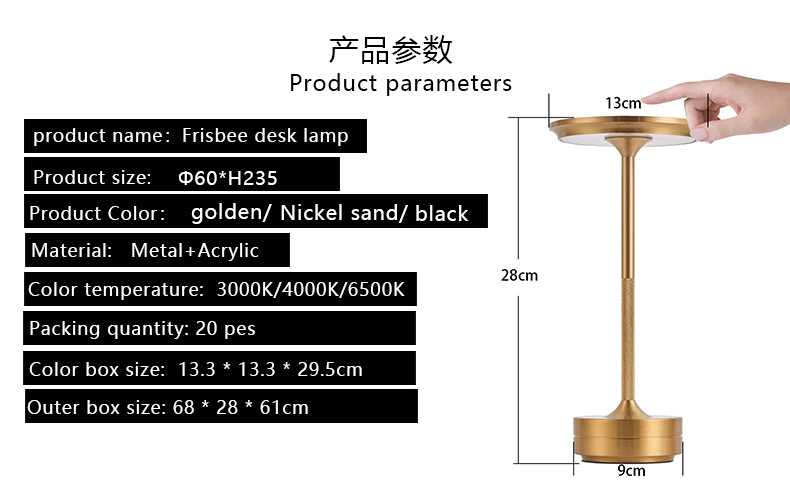 크로스보더 인기 북유럽 스타일 충전식 LED 메탈 UFO 테이블 램프, 고급스럽고 레트로한 바/레스토랑 분위기 조명