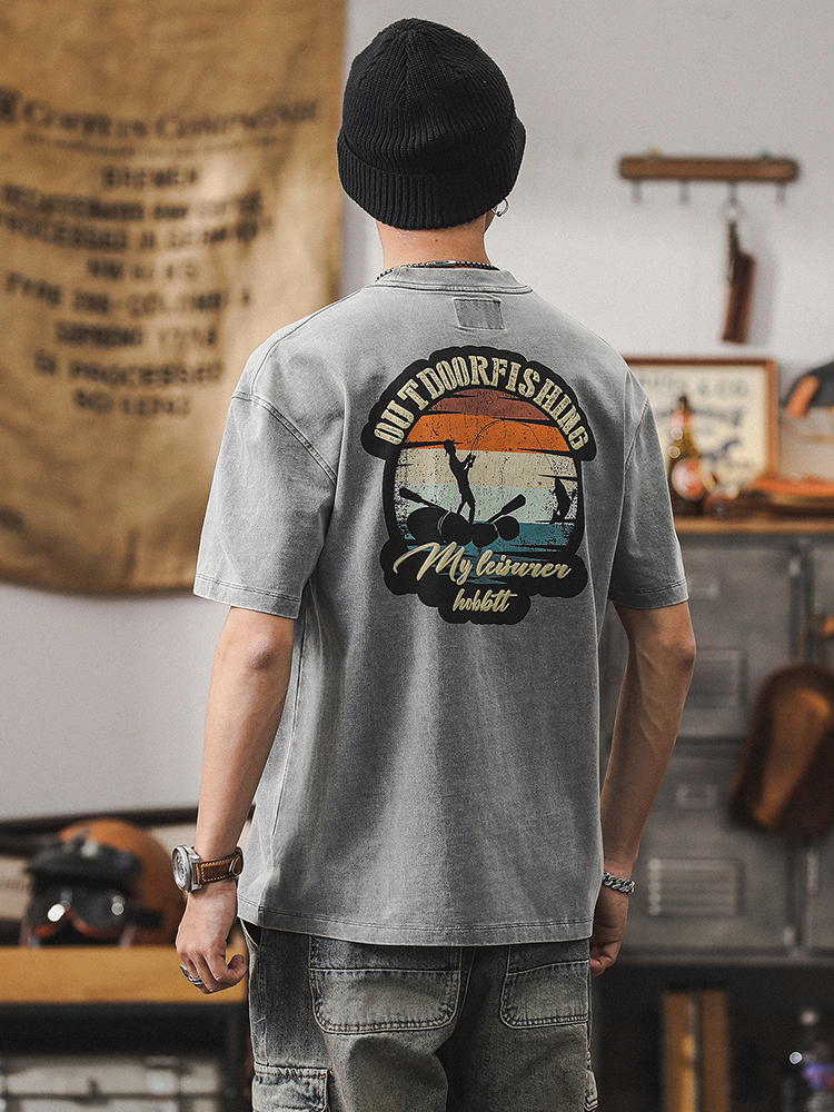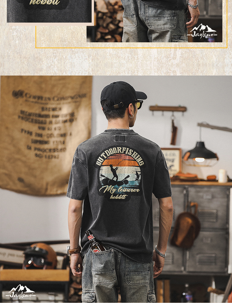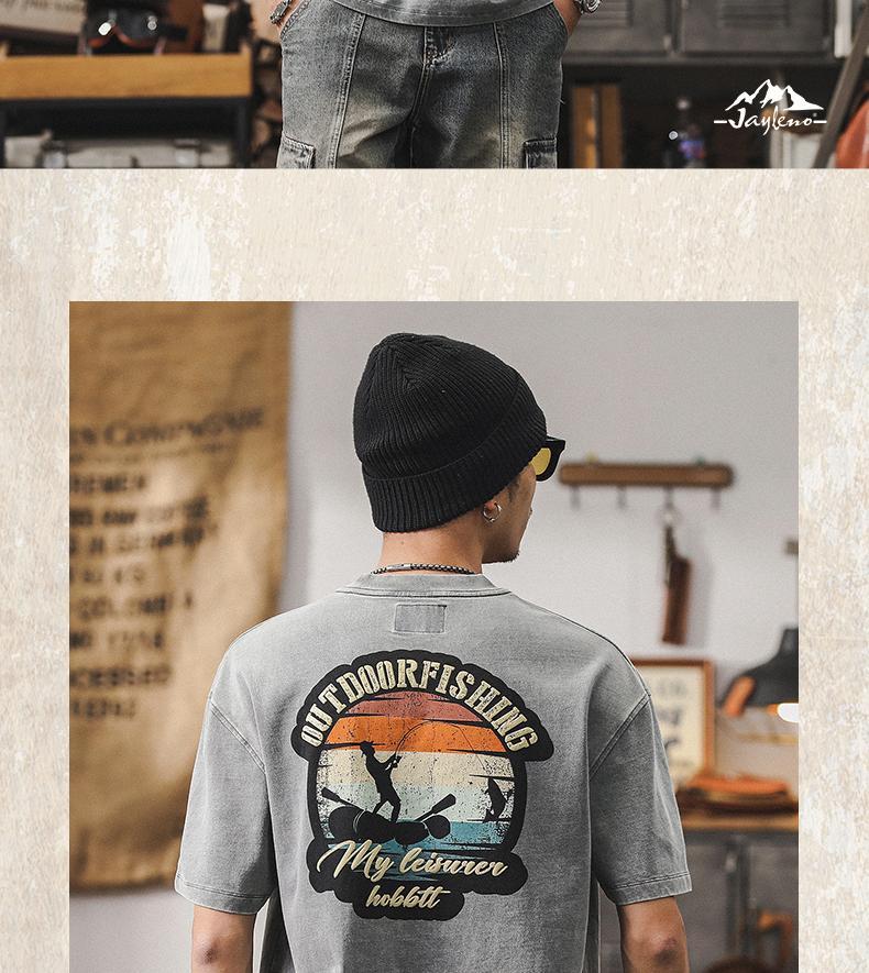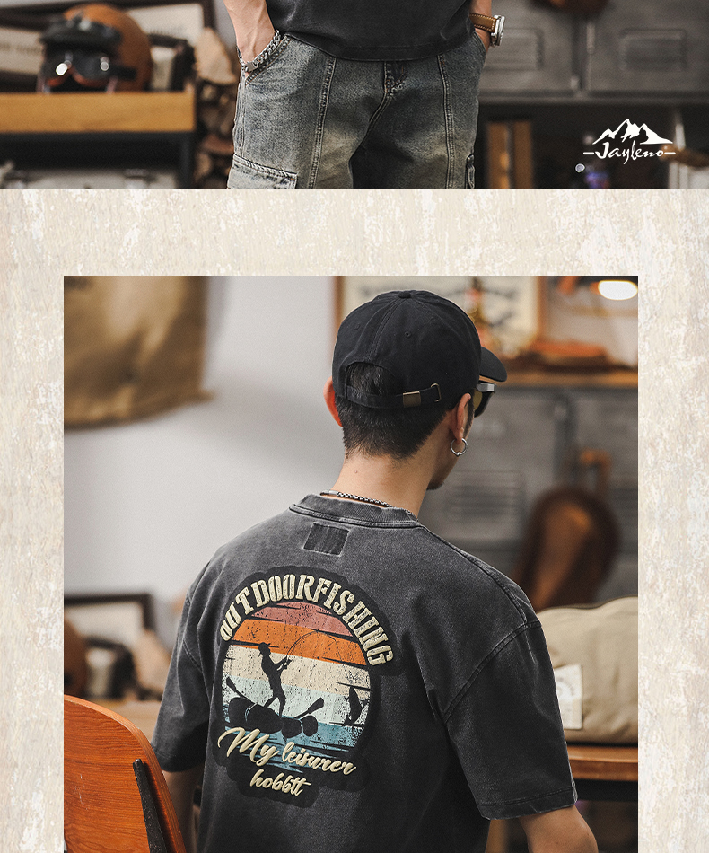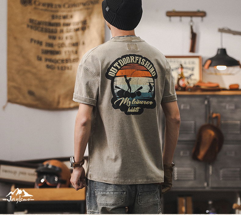 230g 헤비 코튼 티셔츠 남자 2024 뉴 톱 남자 짧은 소매 남자 여름 느슨한 아메리칸 스타일 트렌디 티셔츠스토어 가기