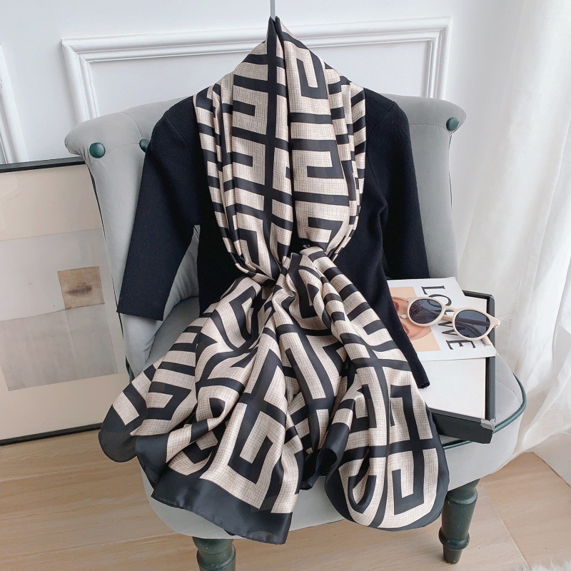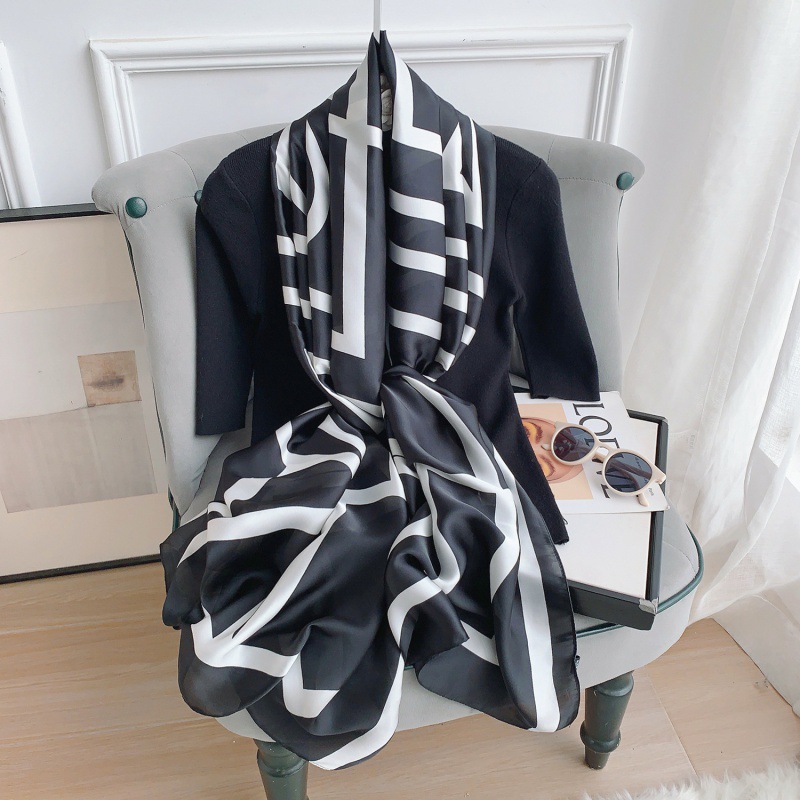 한국 알파벳 기질 새틴 스카프 여성의 봄과 가을 스카프 긴 비치 타월 목도리 스카프 도매