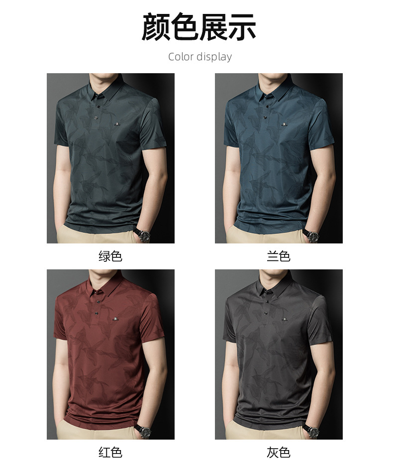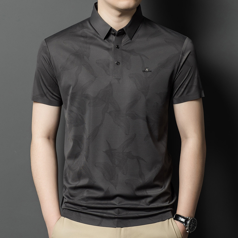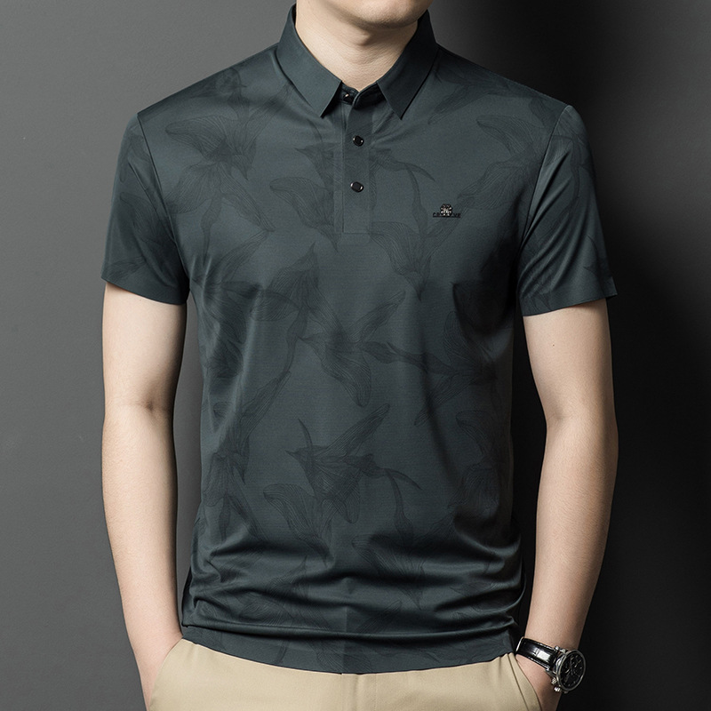 하이 엔드 남성 패션 반팔 폴로 셔츠 여름 비즈니스 캐주얼 아이스 실크 추적없는 티셔츠 프린트 아빠 셔츠 트렌디스토어 가기