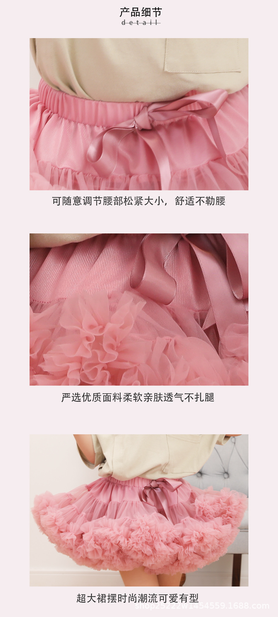注5:改版后新一代蓬蓬裙,为50D经编腰布内衬,防静电,不易褶皱,弹性好,舒适感极强!透气亲肤!