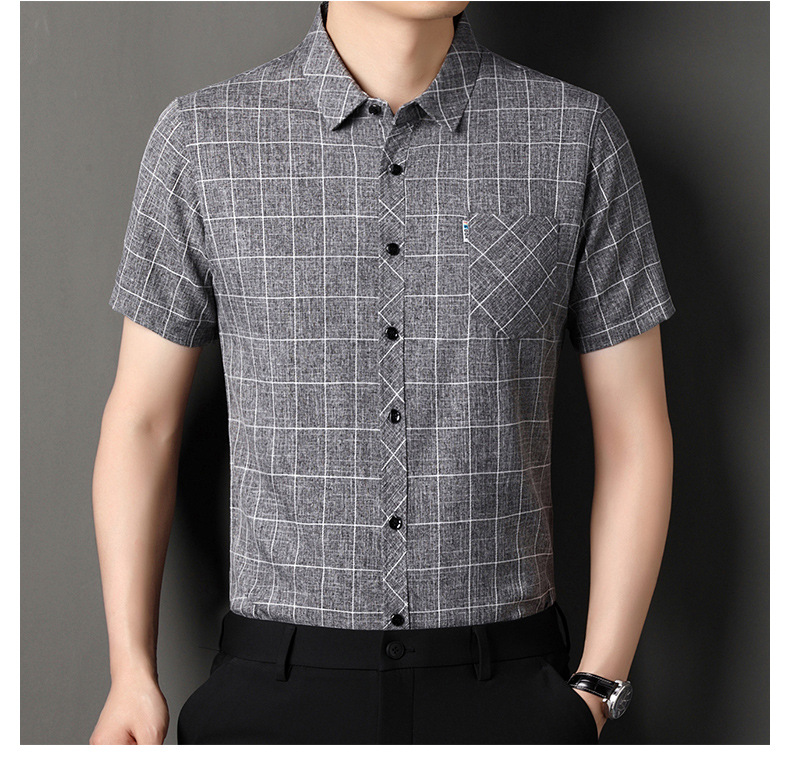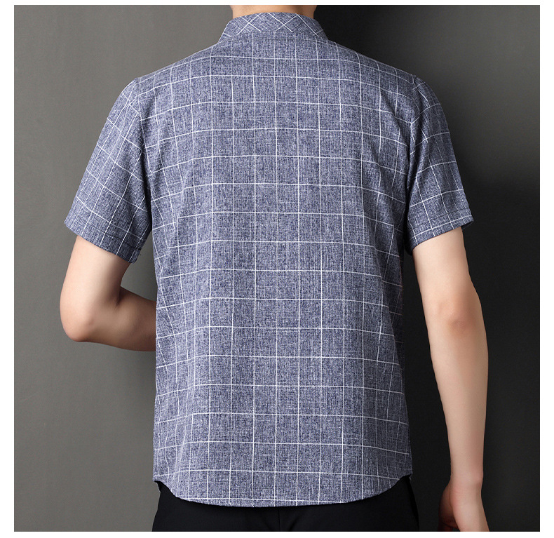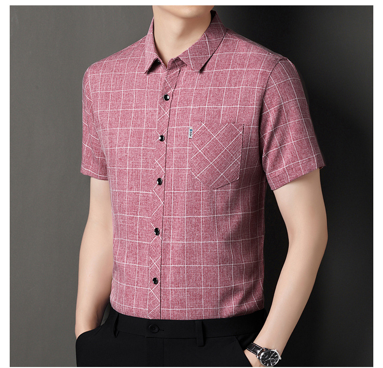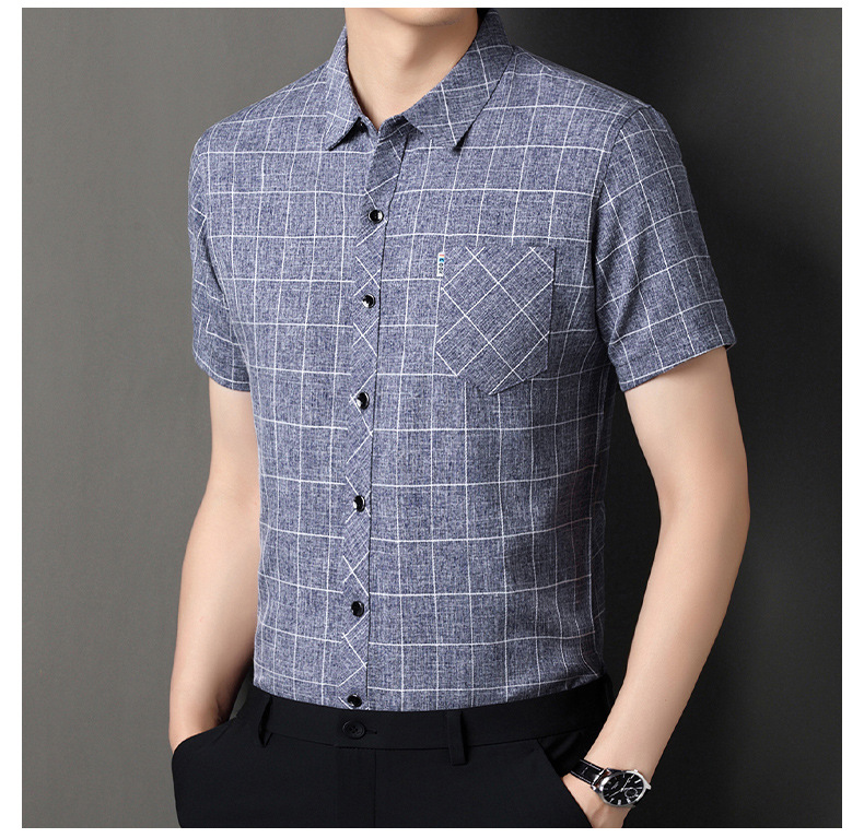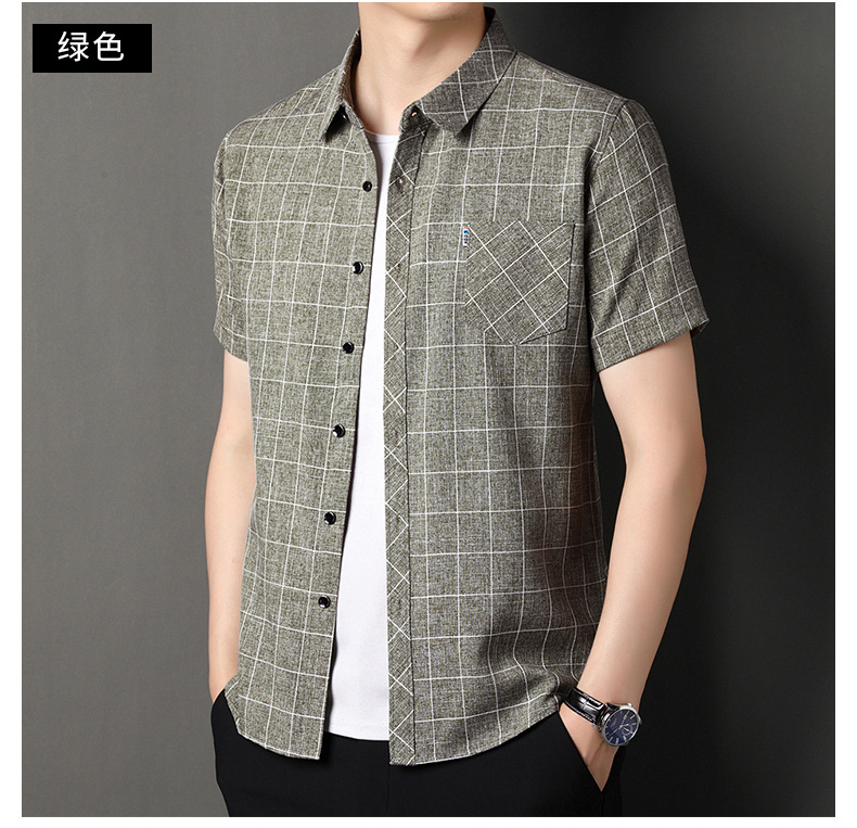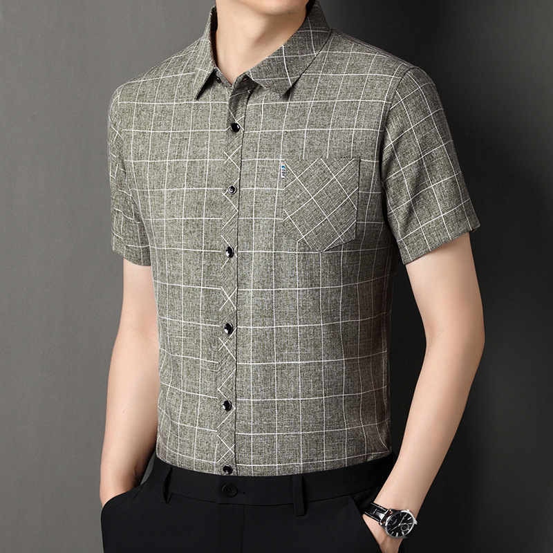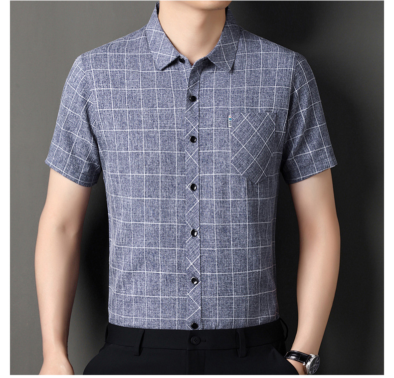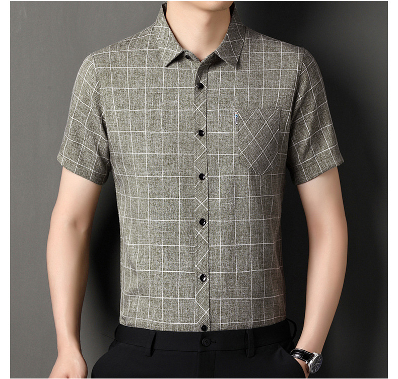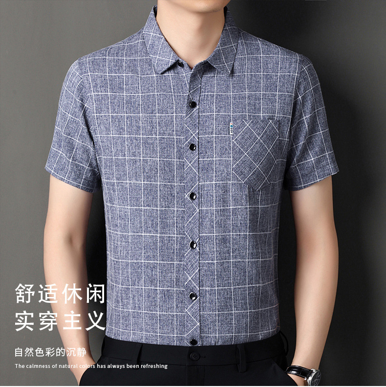 남성용 코튼 리넨 반팔 셔츠 남성용 느슨한 통기성 여름 새로운 중년 줄무늬 포켓 아빠 셔츠 남성 의류스토어 가기