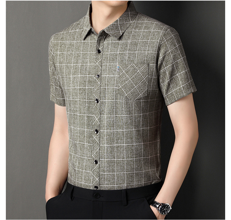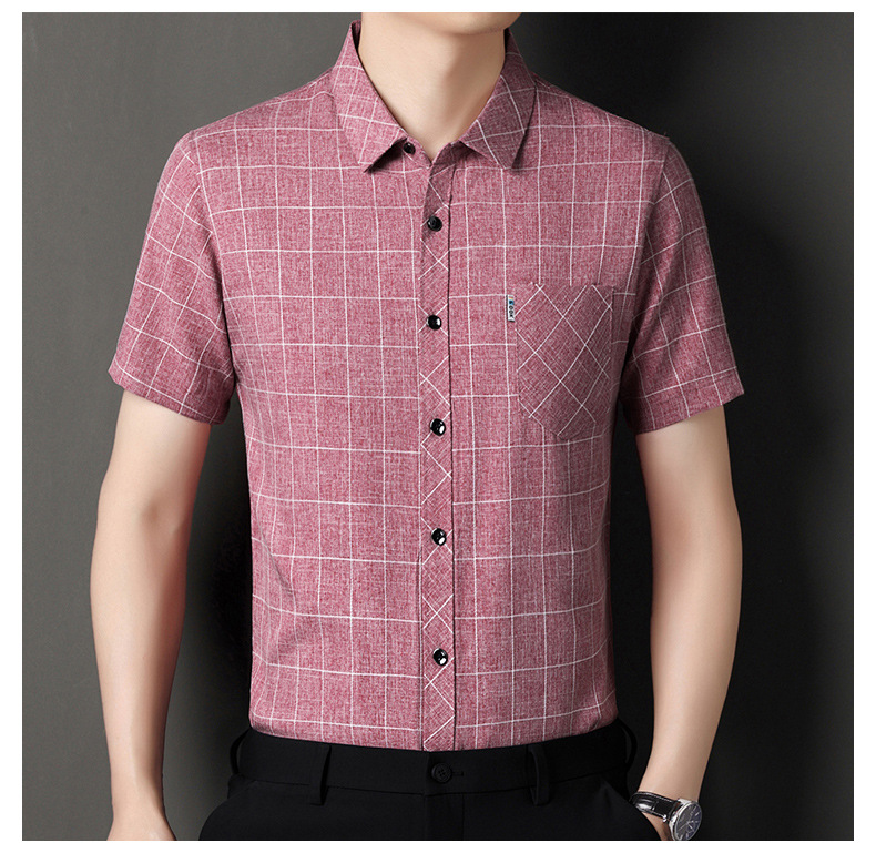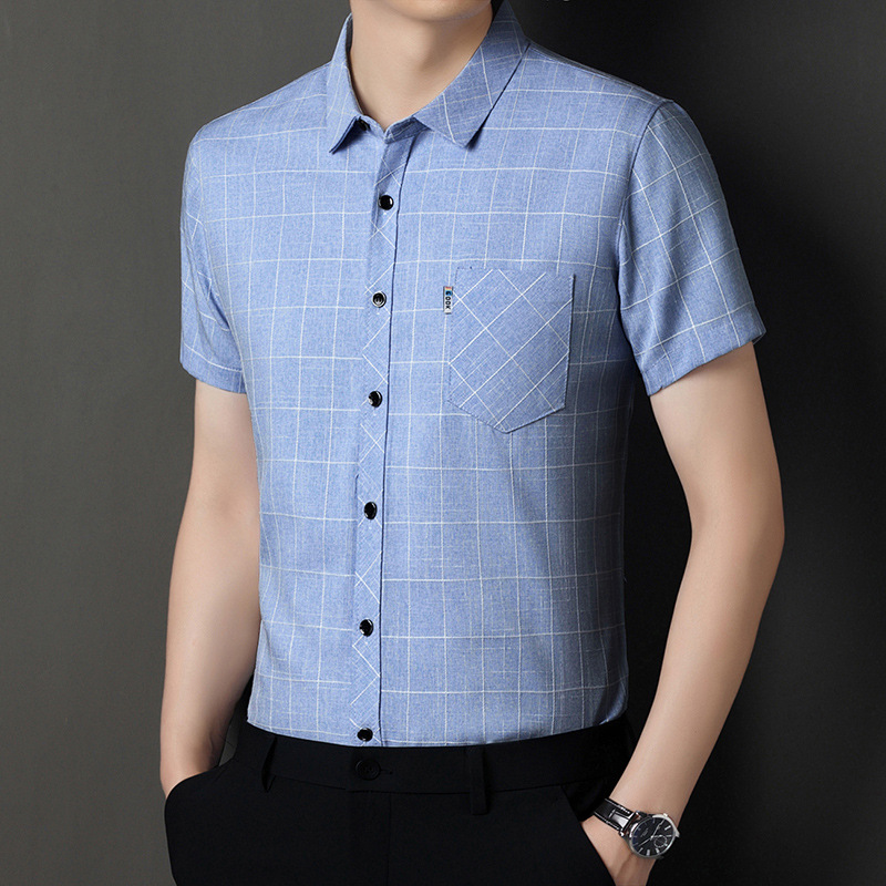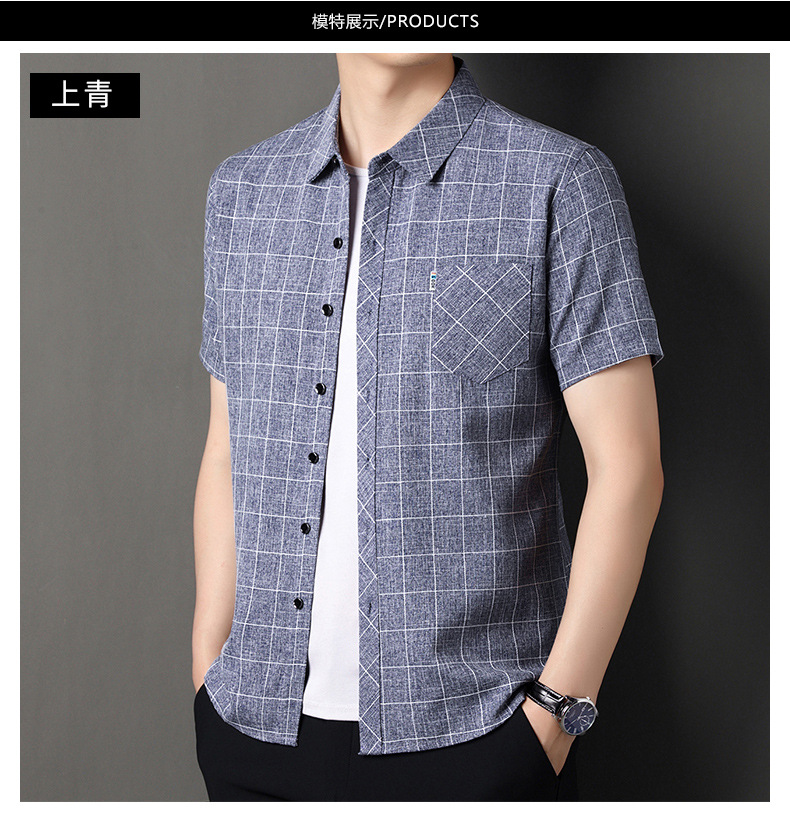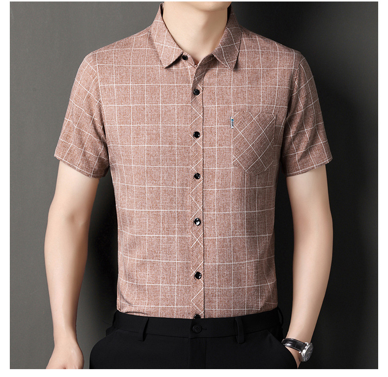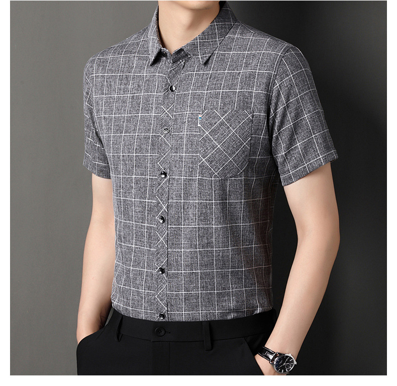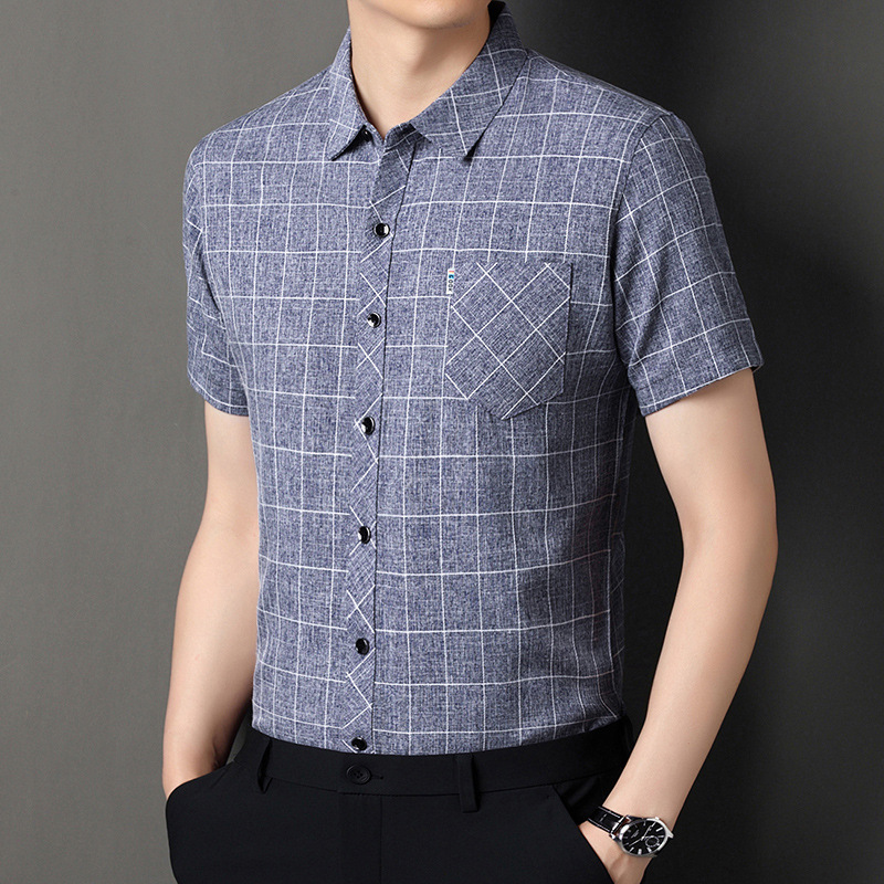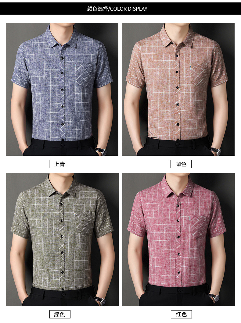 남성용 코튼 리넨 반팔 셔츠 남성용 느슨한 통기성 여름 새로운 중년 줄무늬 포켓 아빠 셔츠 남성 의류스토어 가기