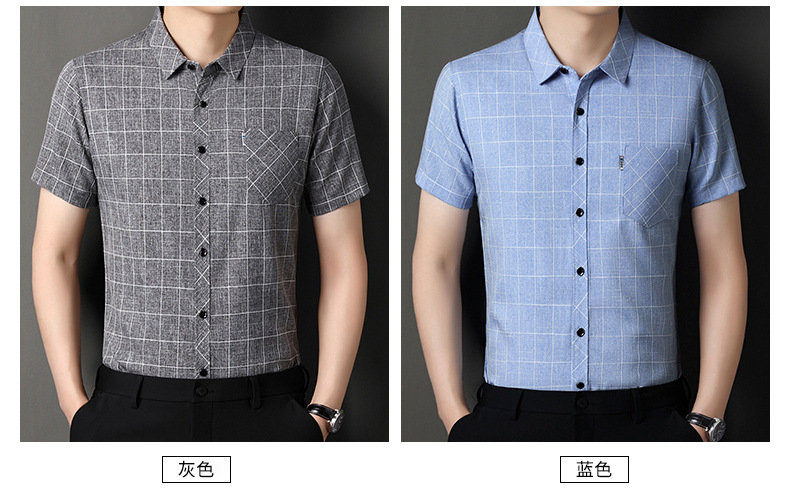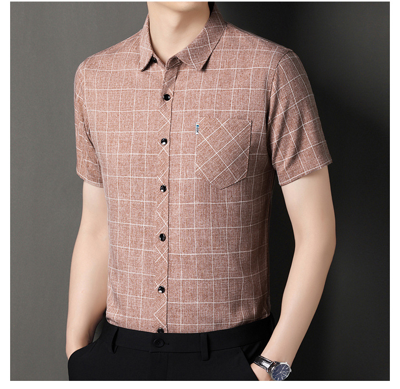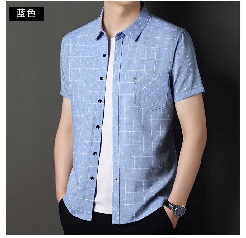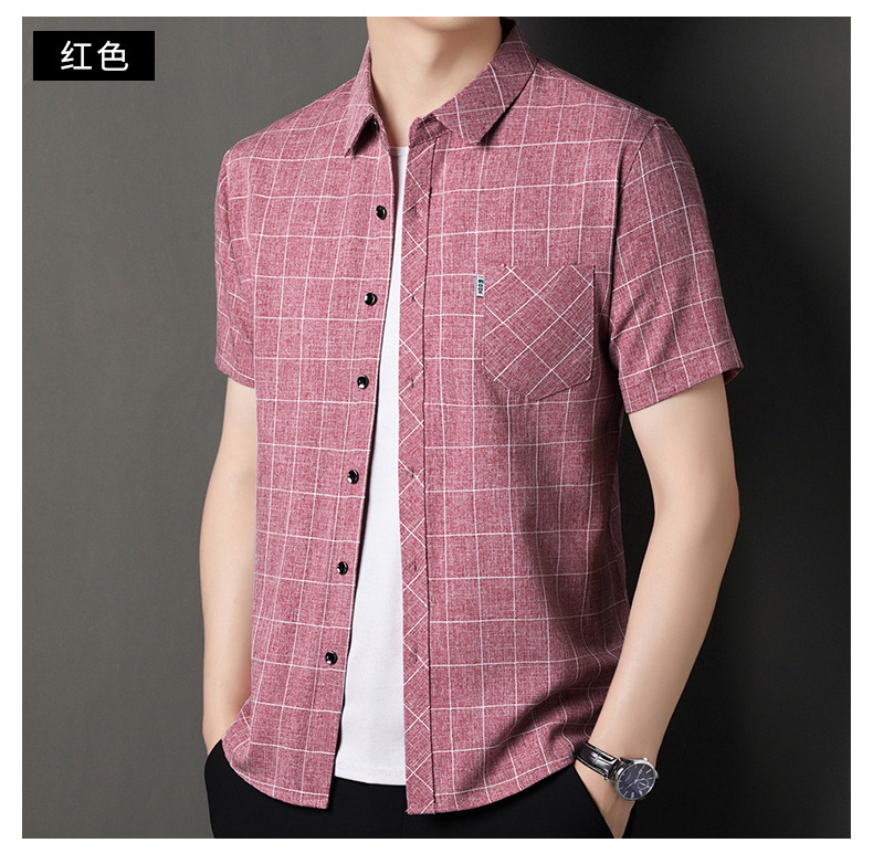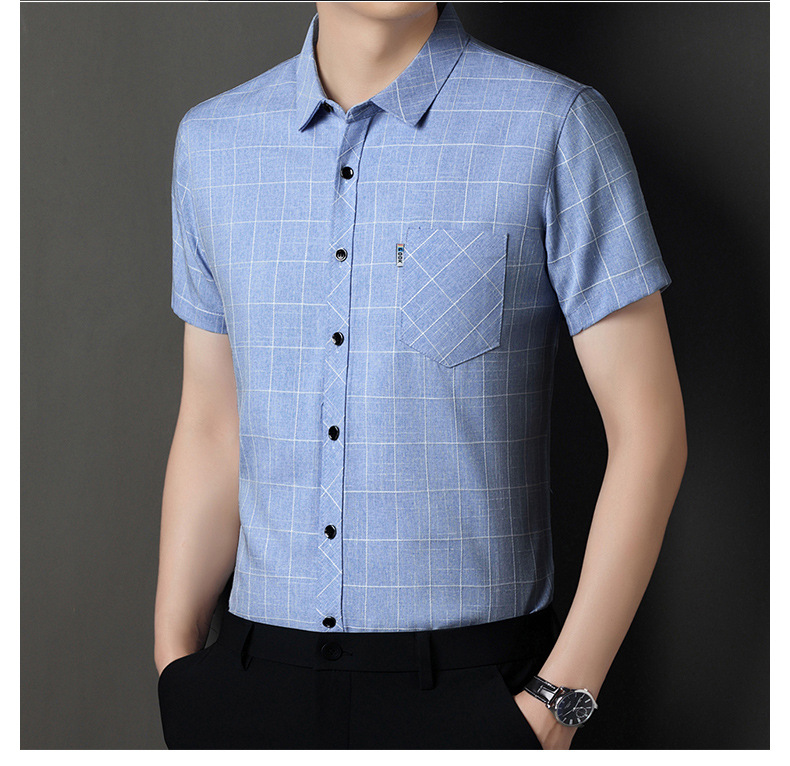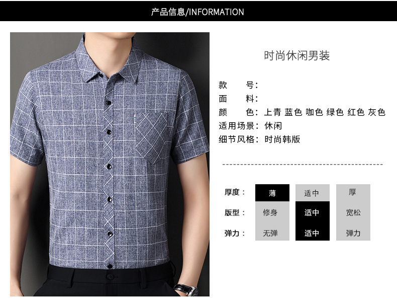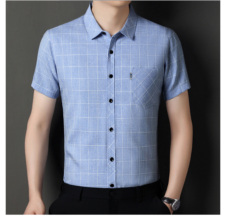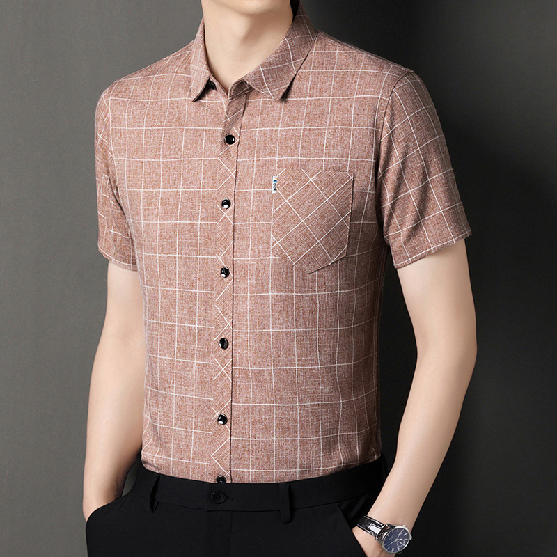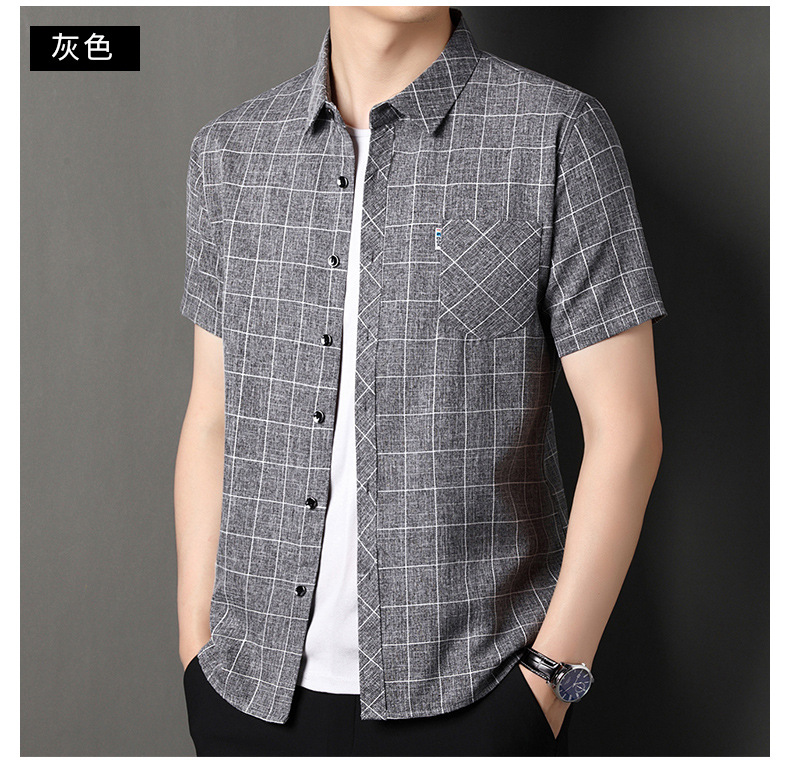 남성용 코튼 리넨 반팔 셔츠 남성용 느슨한 통기성 여름 새로운 중년 줄무늬 포켓 아빠 셔츠 남성 의류스토어 가기