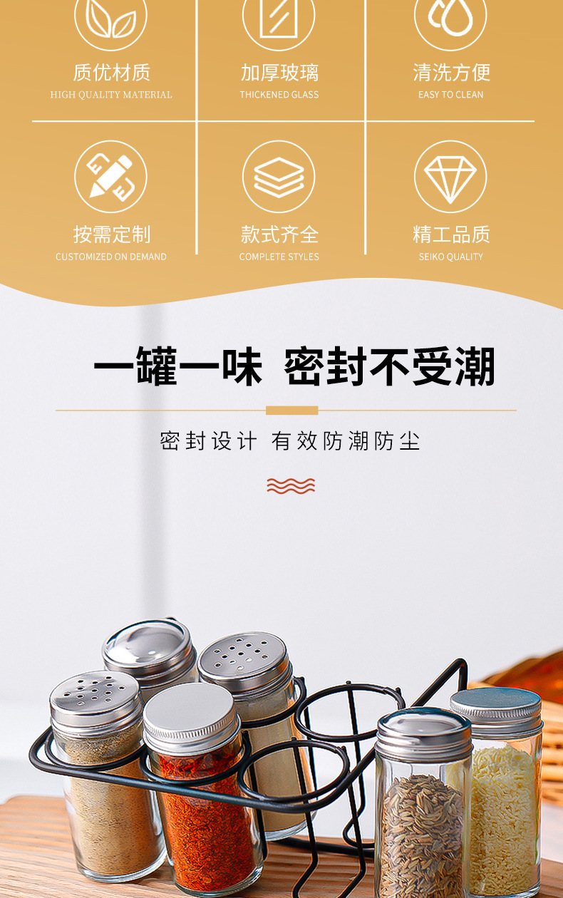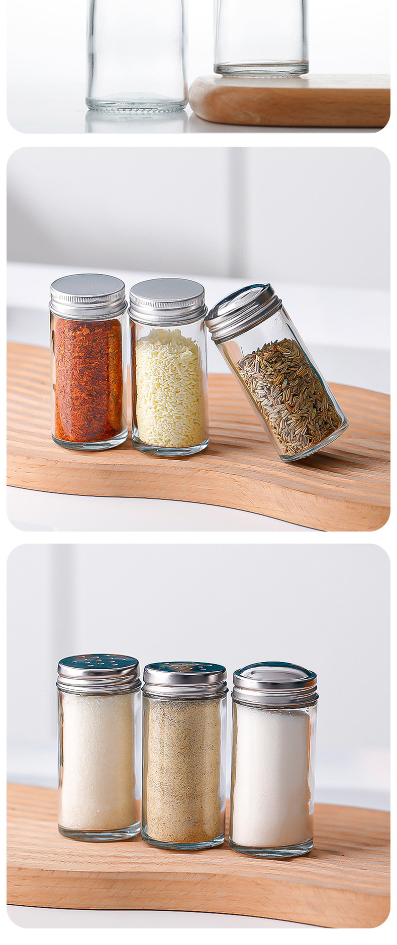 주방 가정용 라운드 조미료 병 소금 모노 나트륨 글루타메이트 설탕 유리 뿌리기 탱크 바베큐 커민 분말 다공성 저장 탱크 조합스토어 가기