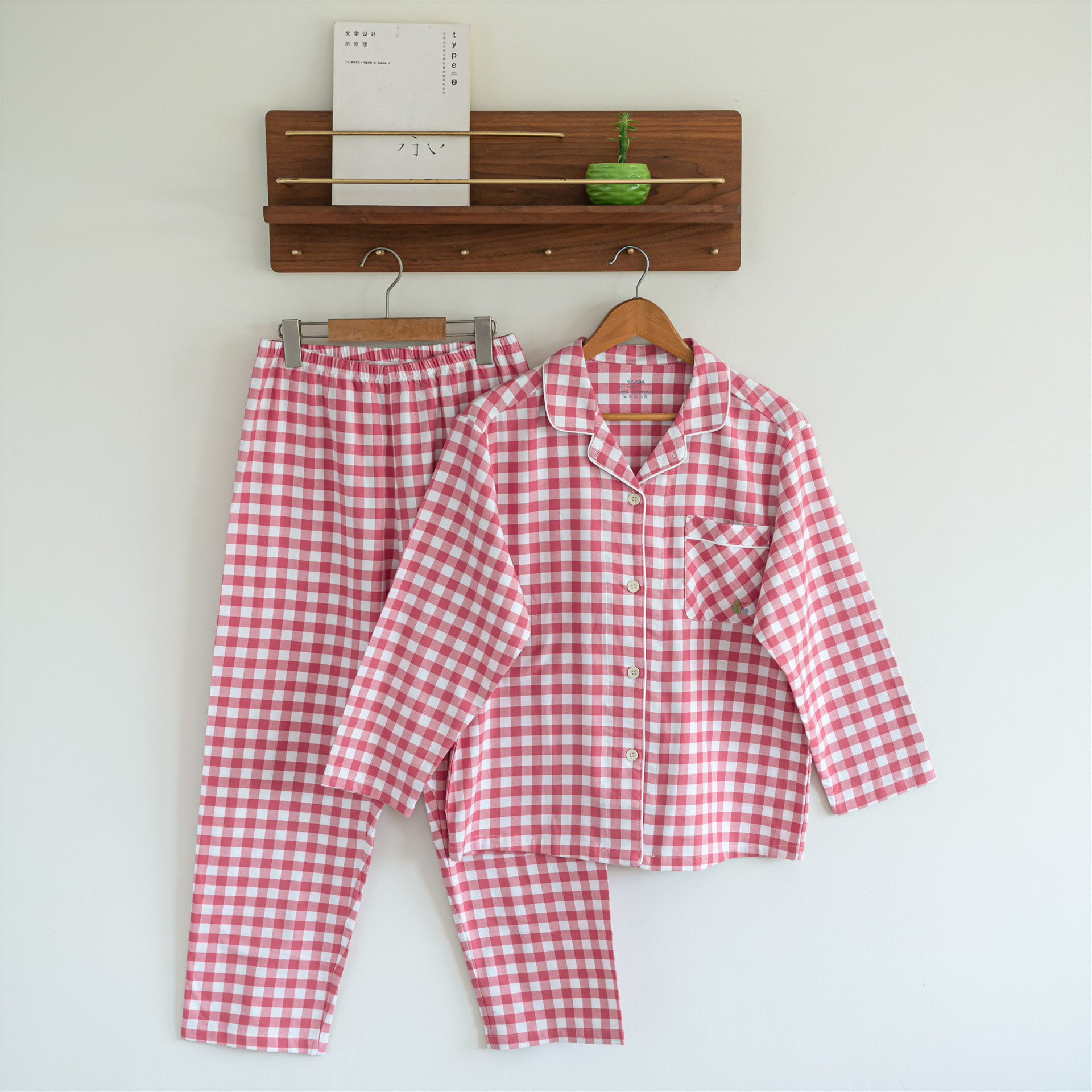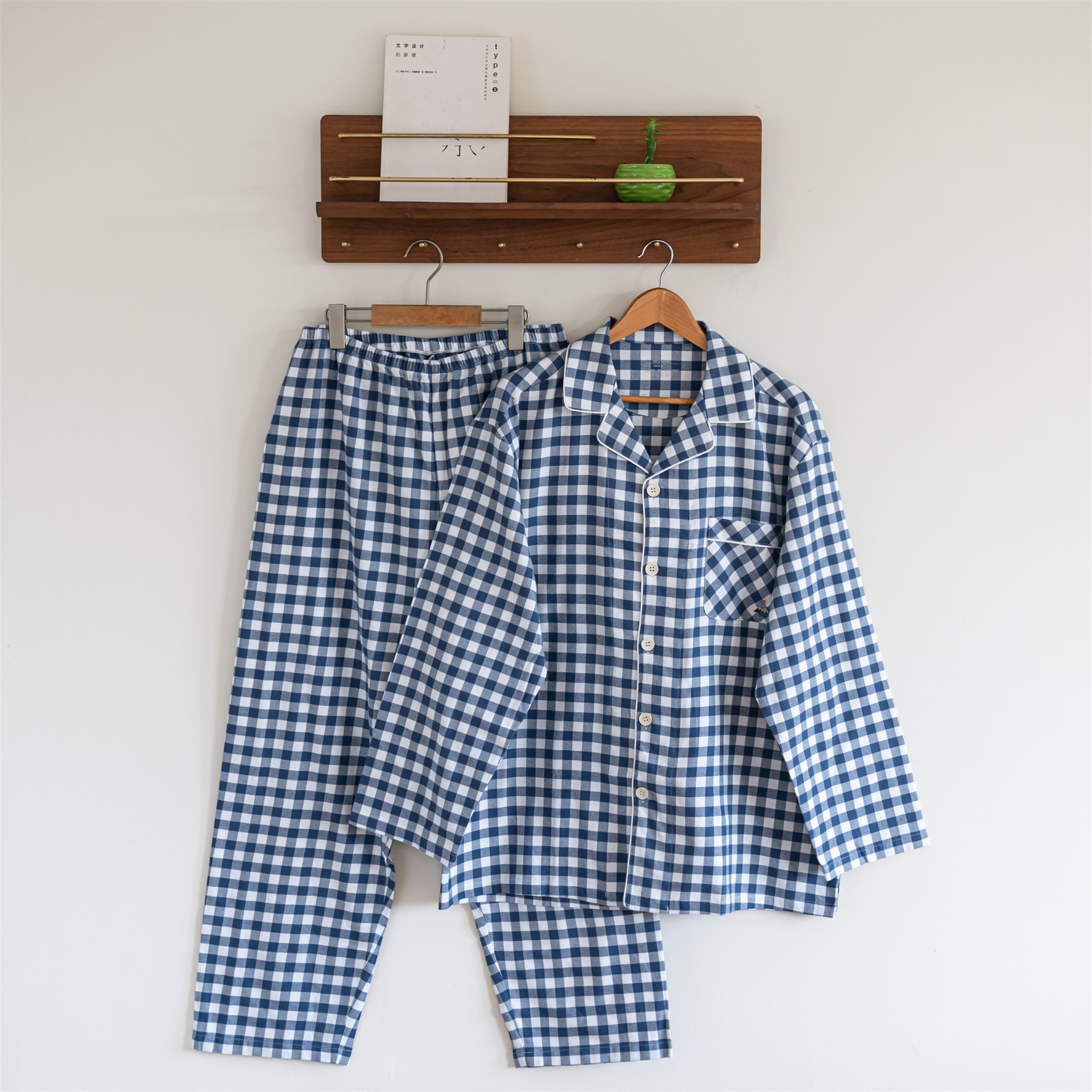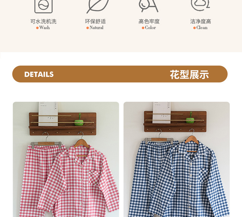 일본식 가정용 남녀 100 Combed 면 가구 의류 면 짠 긴 소매 바지 커플 잠옷스토어 가기