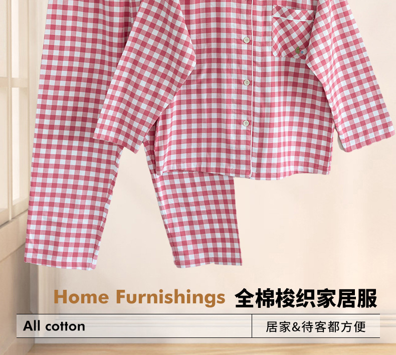 일본식 가정용 남녀 100 Combed 면 가구 의류 면 짠 긴 소매 바지 커플 잠옷