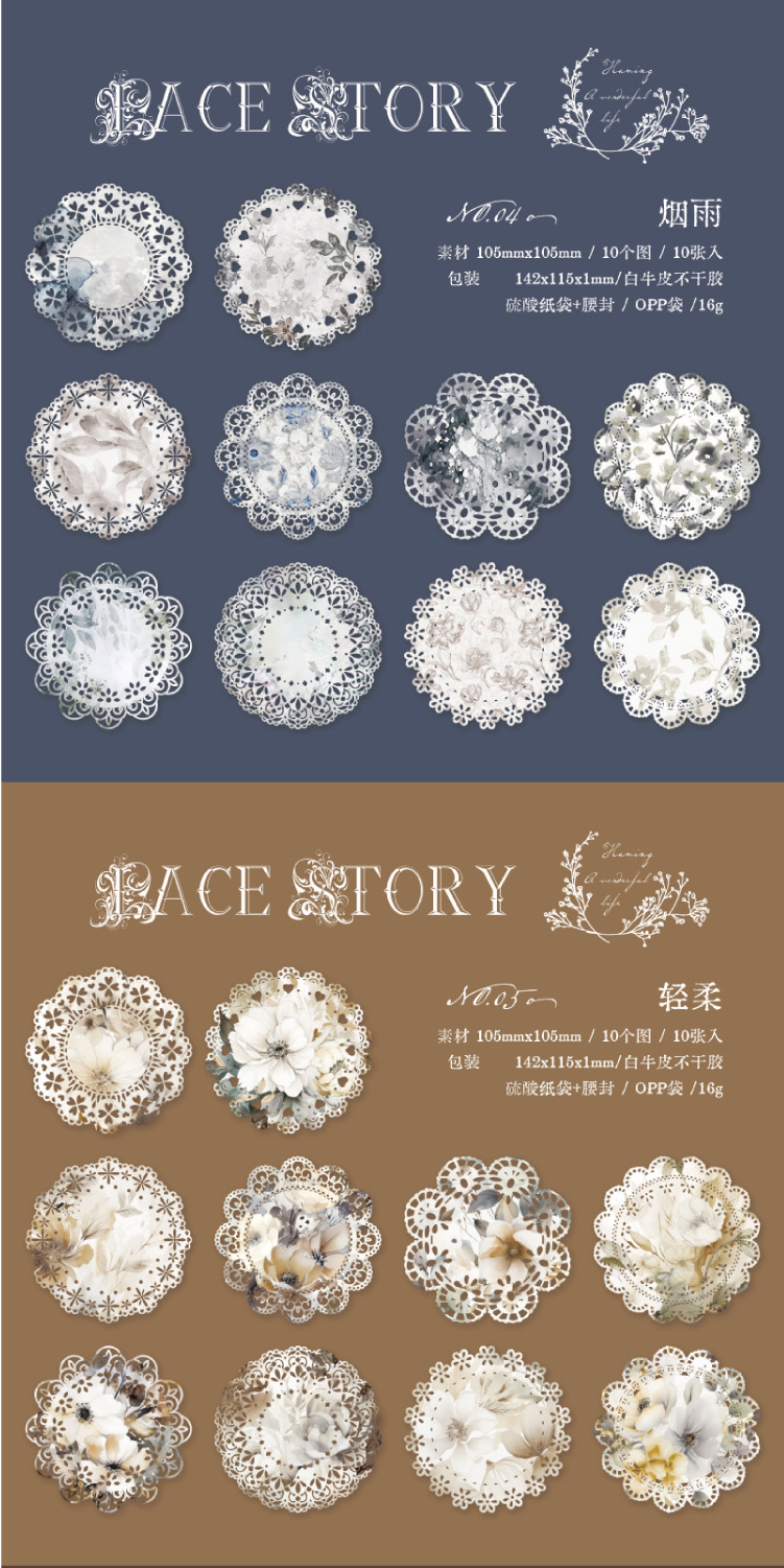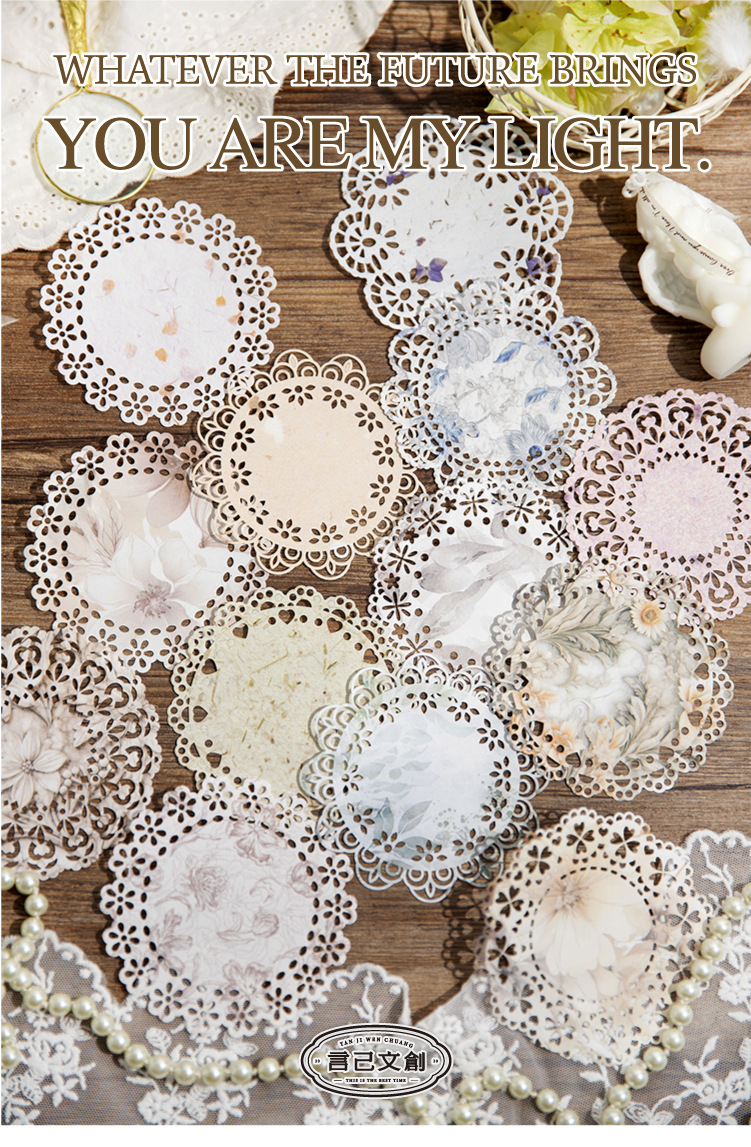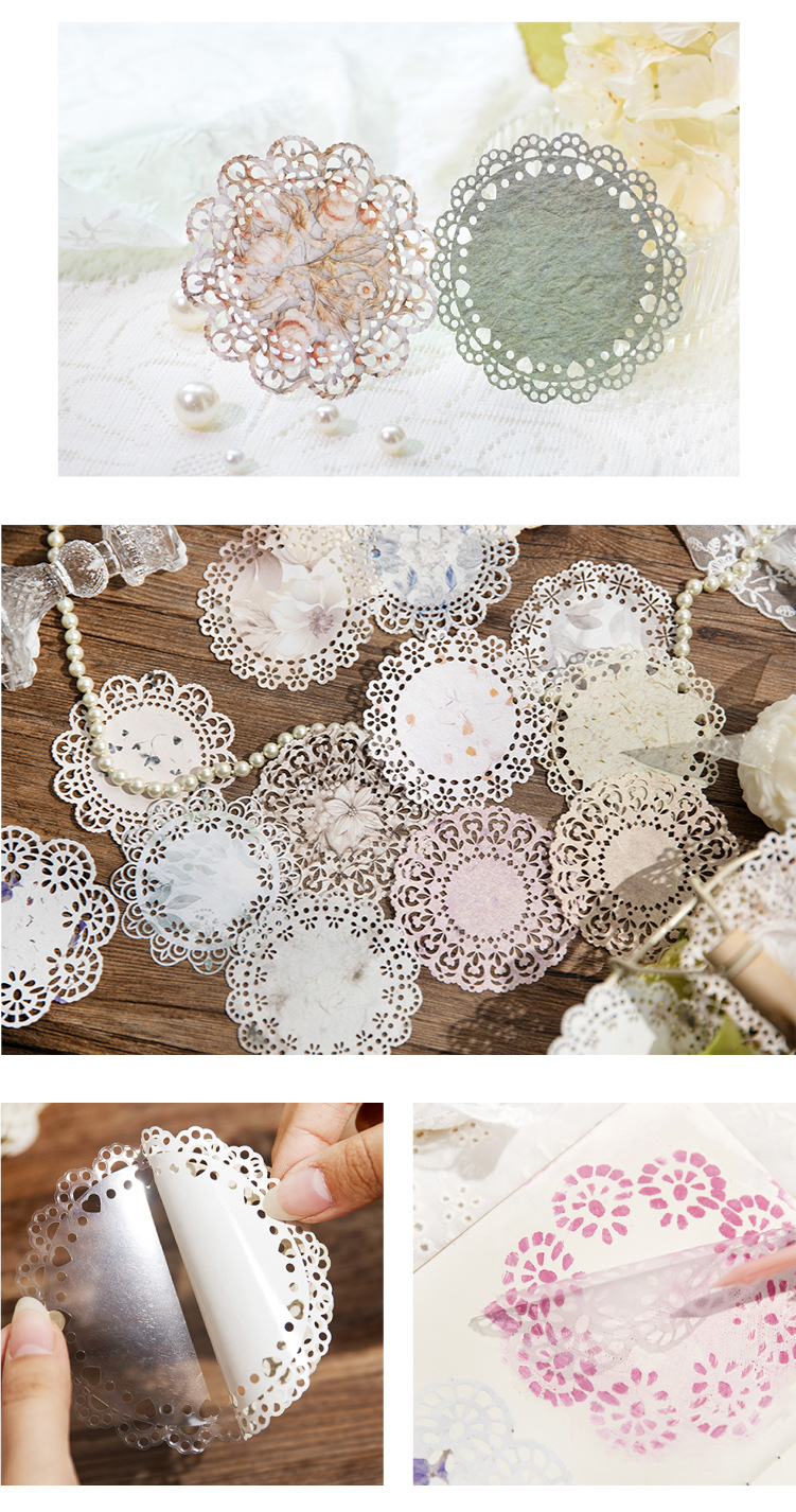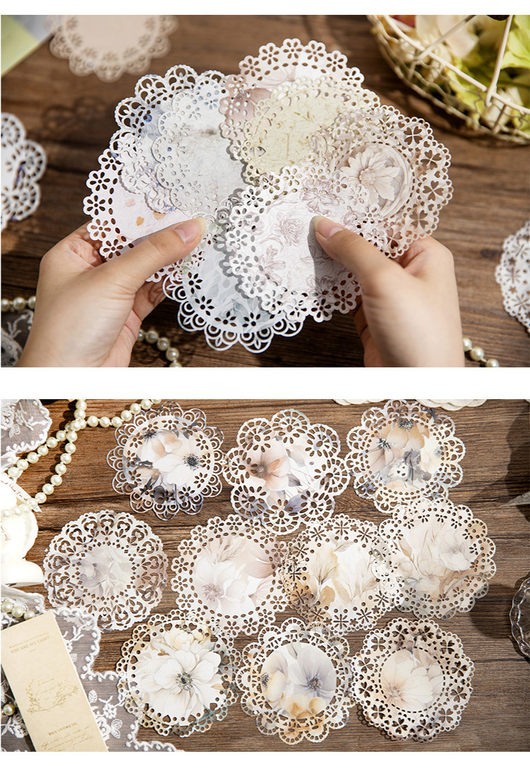레이스 스토리 시리즈 중공 스티커 복고풍 흰색 가죽 콜라주 배경 백킹 손 계정 기본 장식스토어 가기