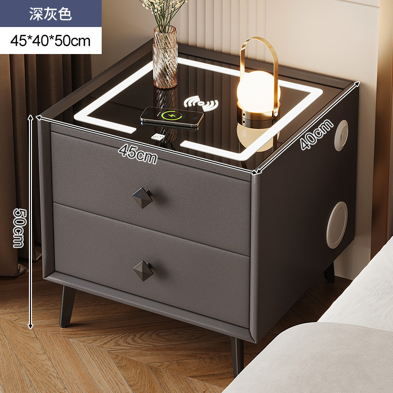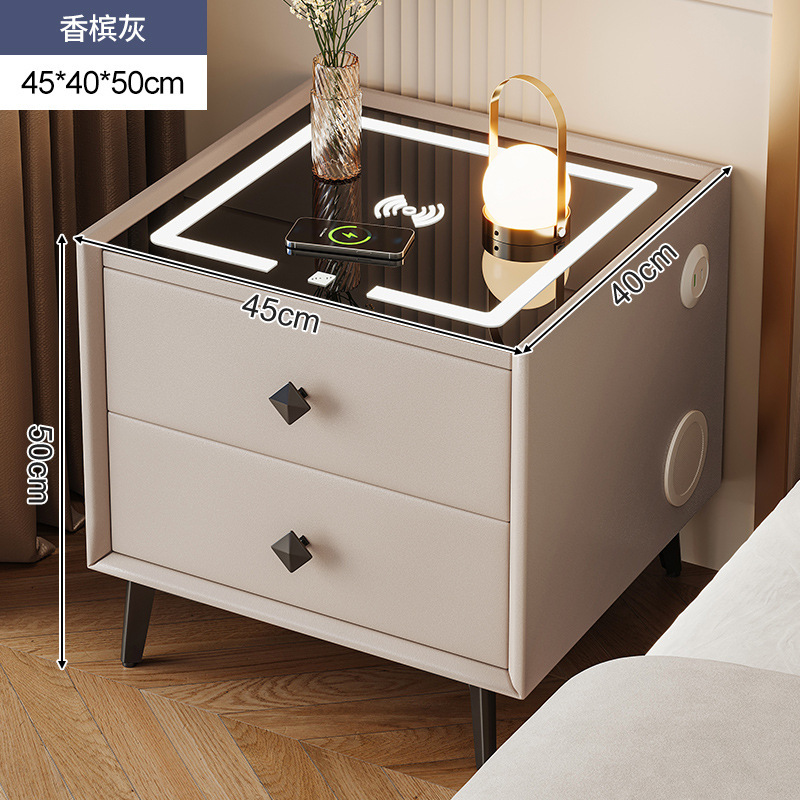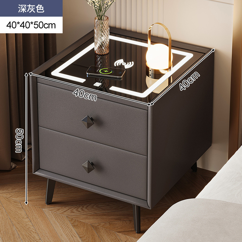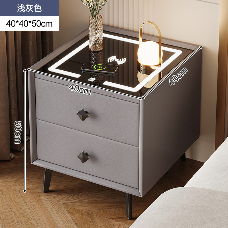 스마트 침대 옆 테이블 간단한 현대 무선 충전 다기능 빛 고급 고급 나무 침실 침실 캐비닛