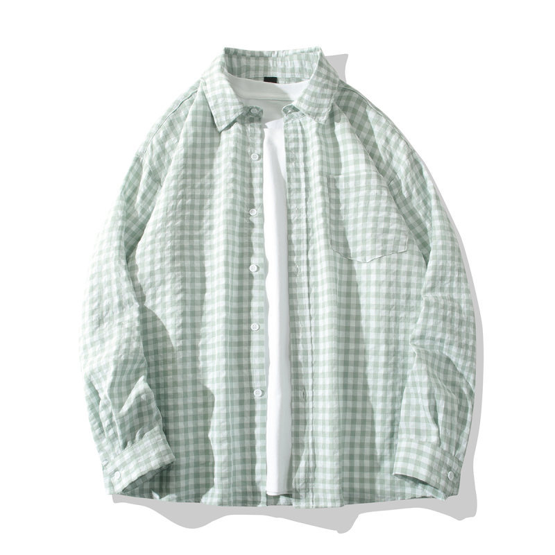 2024 새로운 남성 격자 무늬 긴팔 셔츠 유행 브랜드 유행 작은 신선한 얇은 느슨한 캐주얼 셔츠 재킷