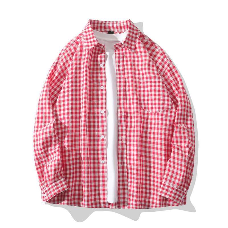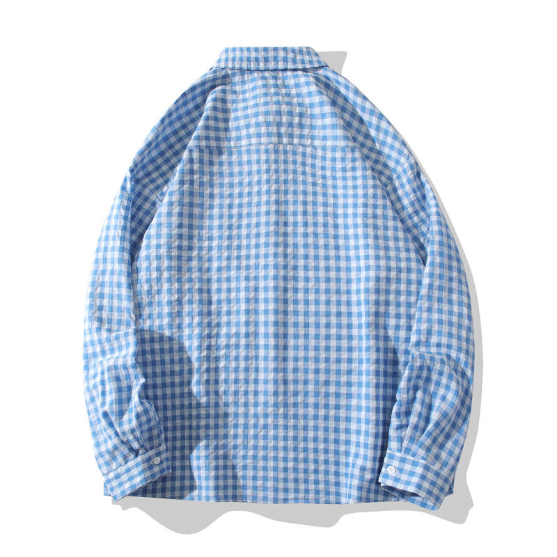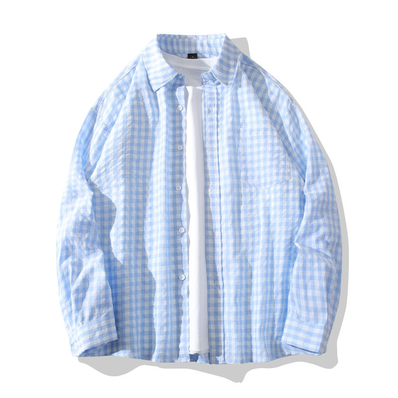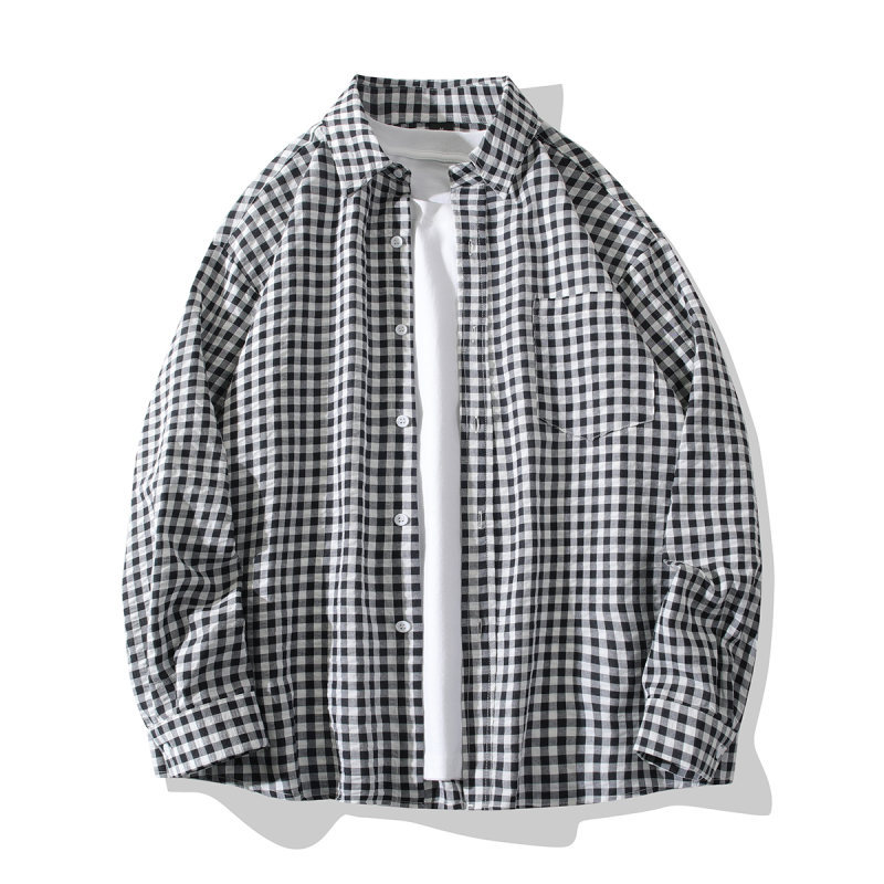 2024 새로운 남성 격자 무늬 긴팔 셔츠 유행 브랜드 유행 작은 신선한 얇은 느슨한 캐주얼 셔츠 재킷스토어 가기