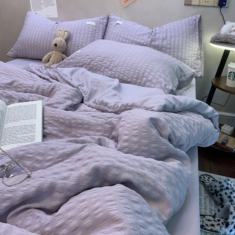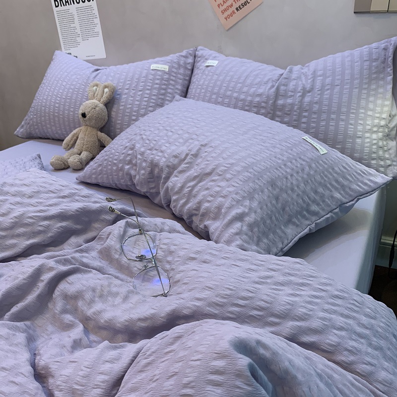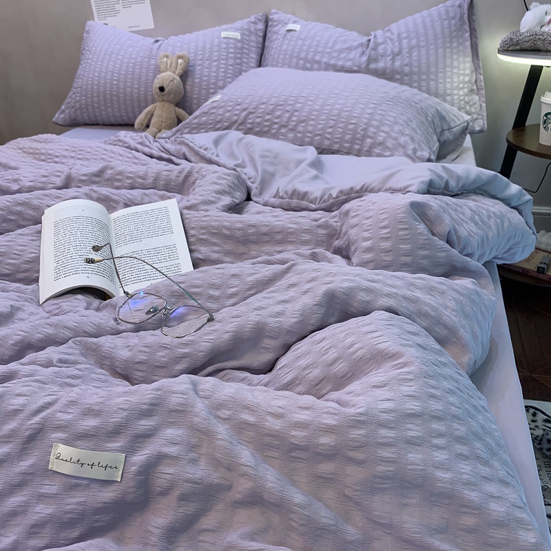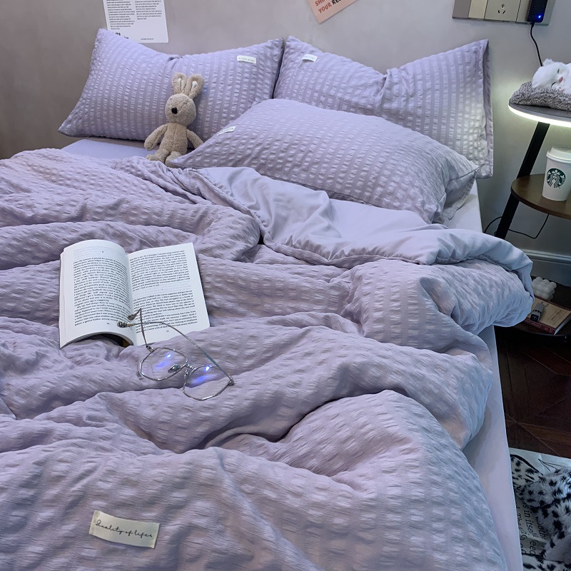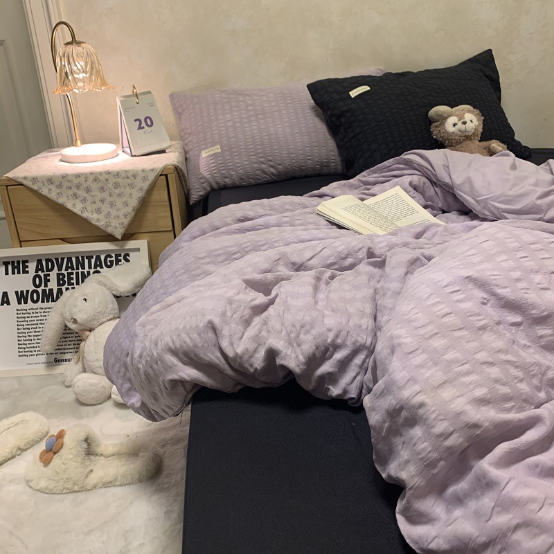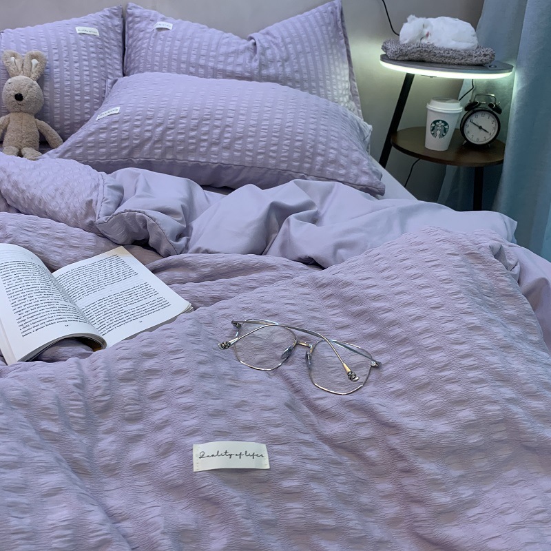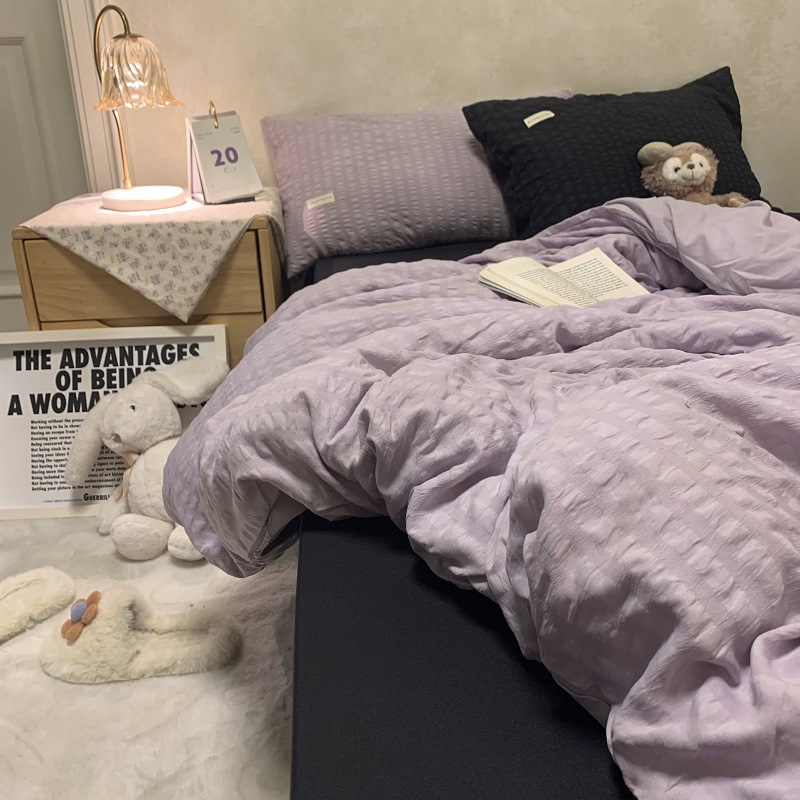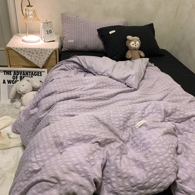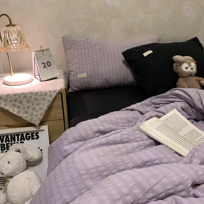 인 스타일 간단한 편안한 그레이 퍼플 믹스 워터 리플 퀼트 커버 침구 4 피스 기숙사 침대 시트 3 피스 세트스토어 가기