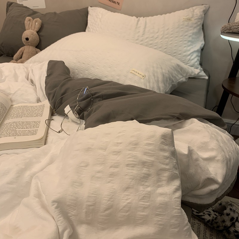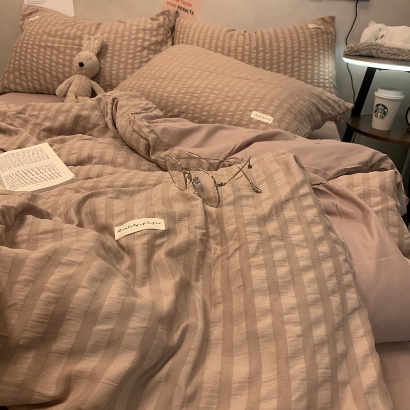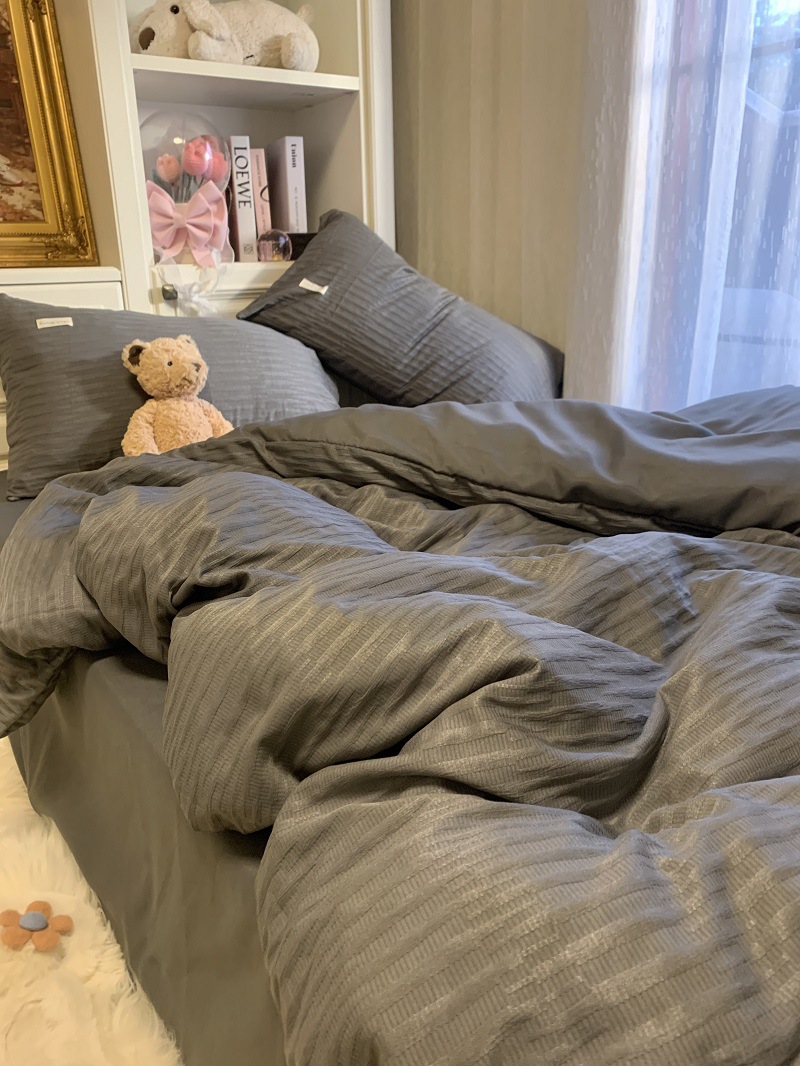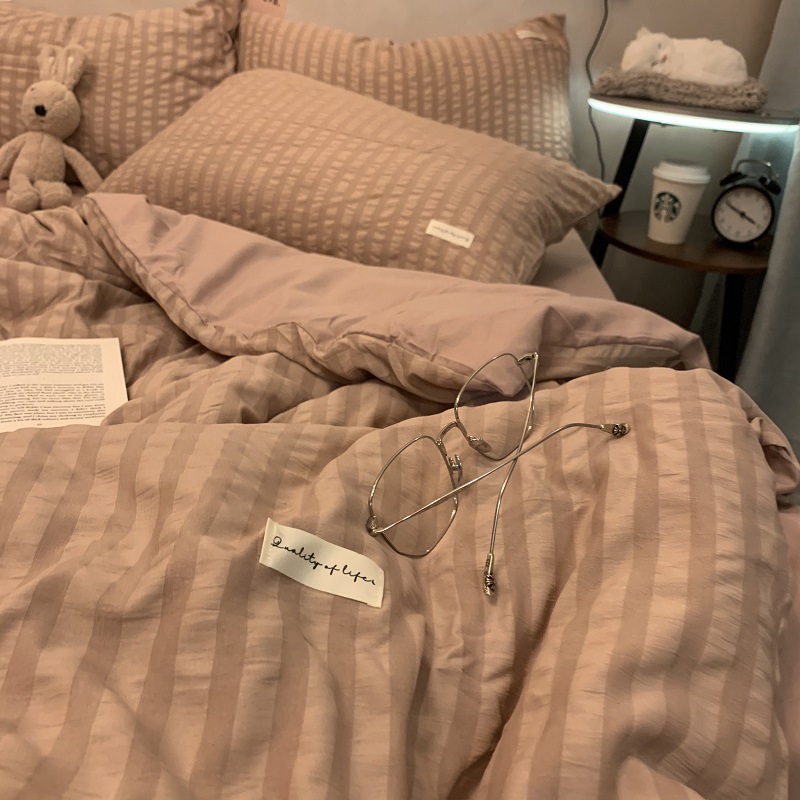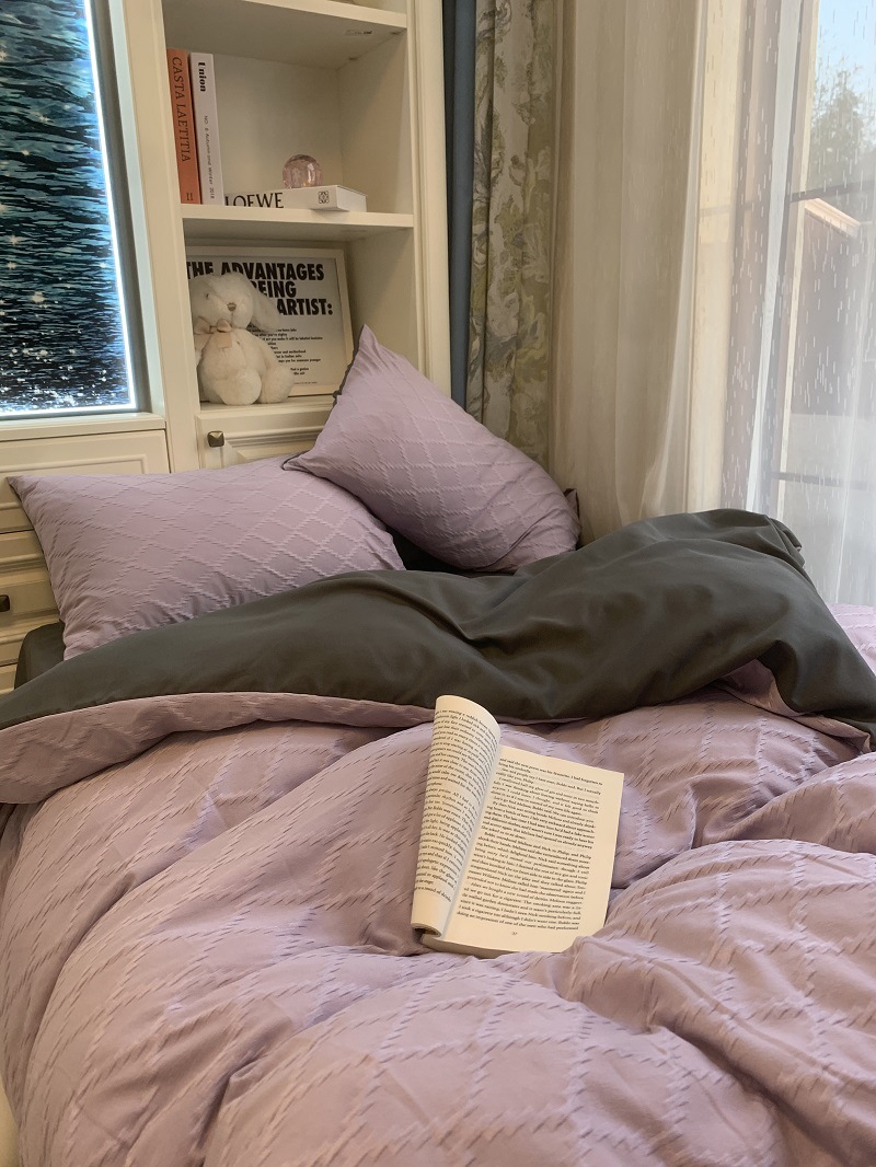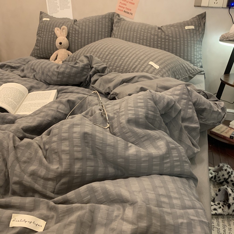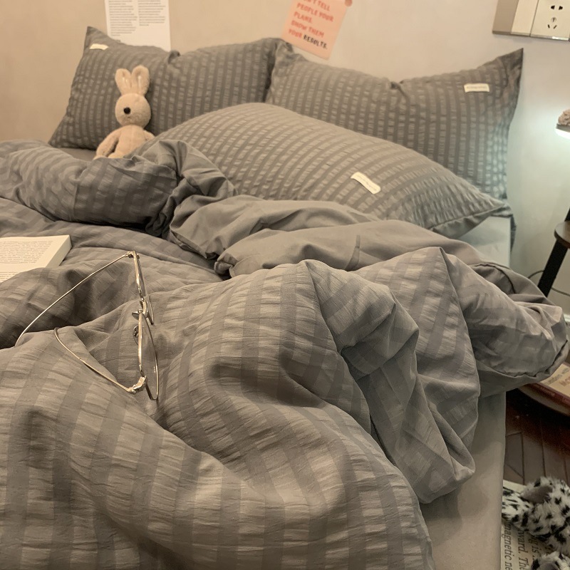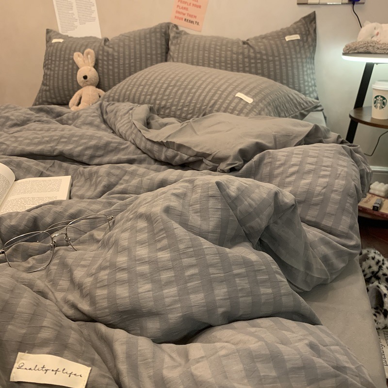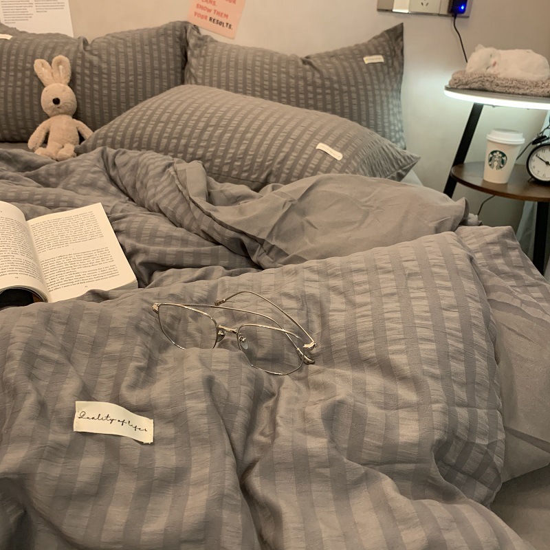 인 스타일 간단한 편안한 그레이 퍼플 믹스 워터 리플 퀼트 커버 침구 4 피스 기숙사 침대 시트 3 피스 세트스토어 가기