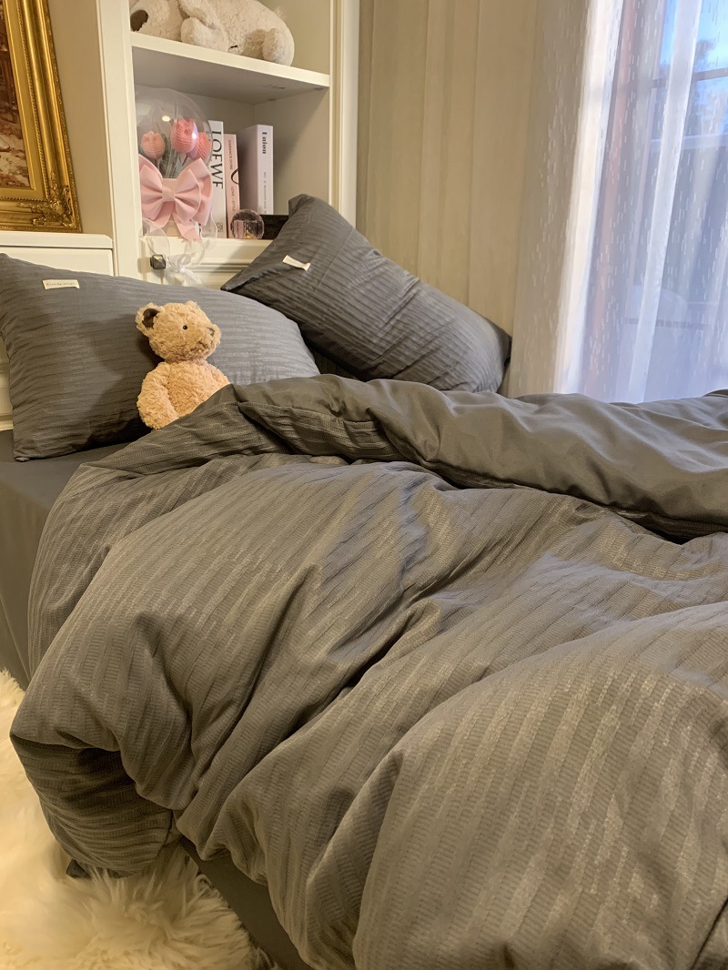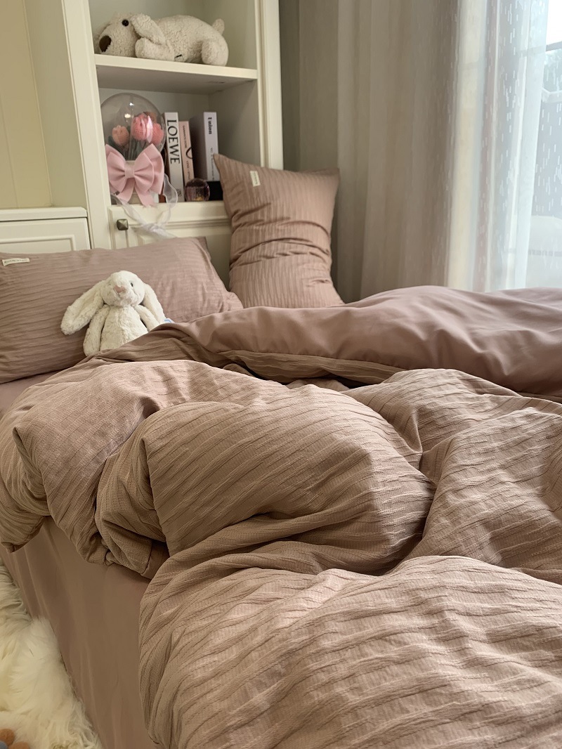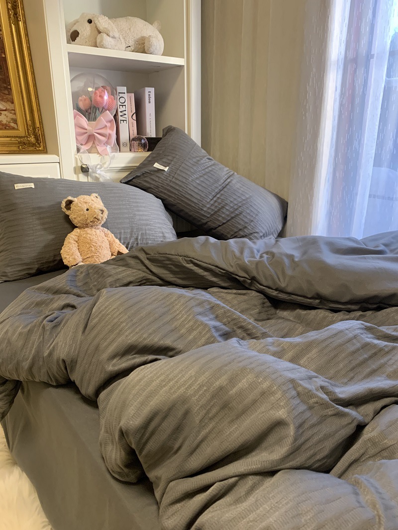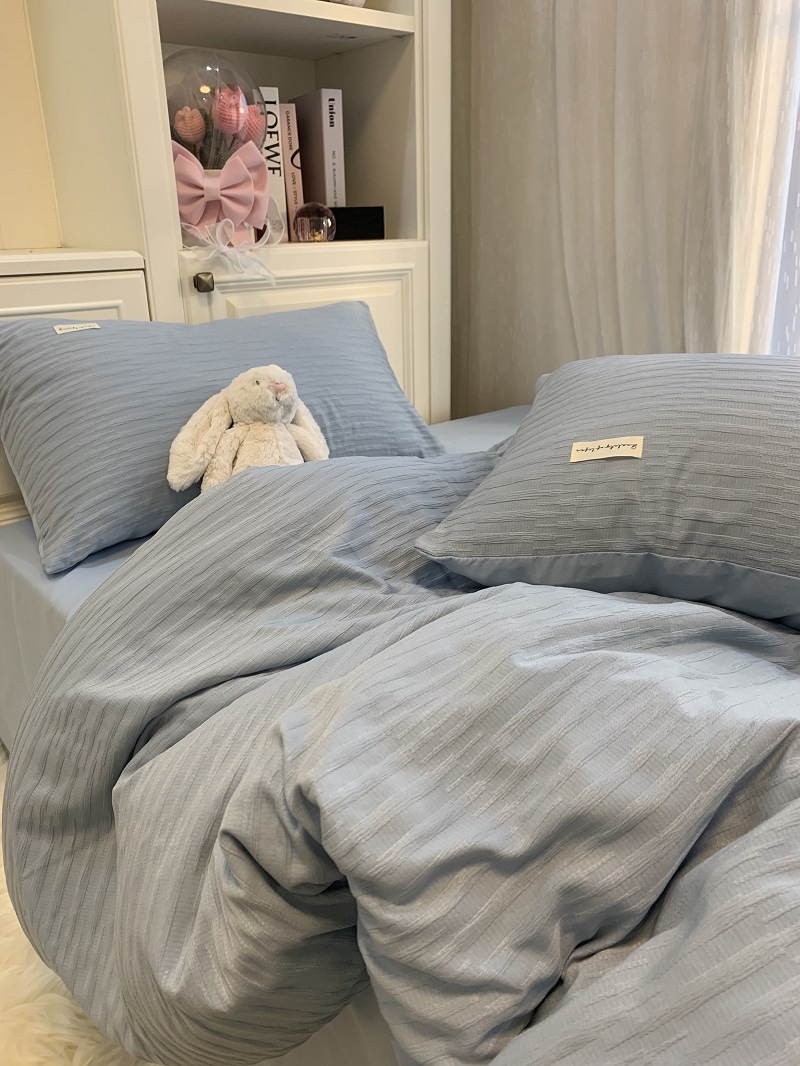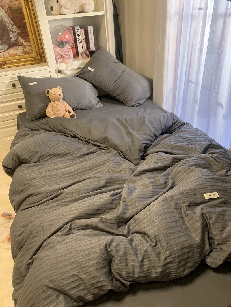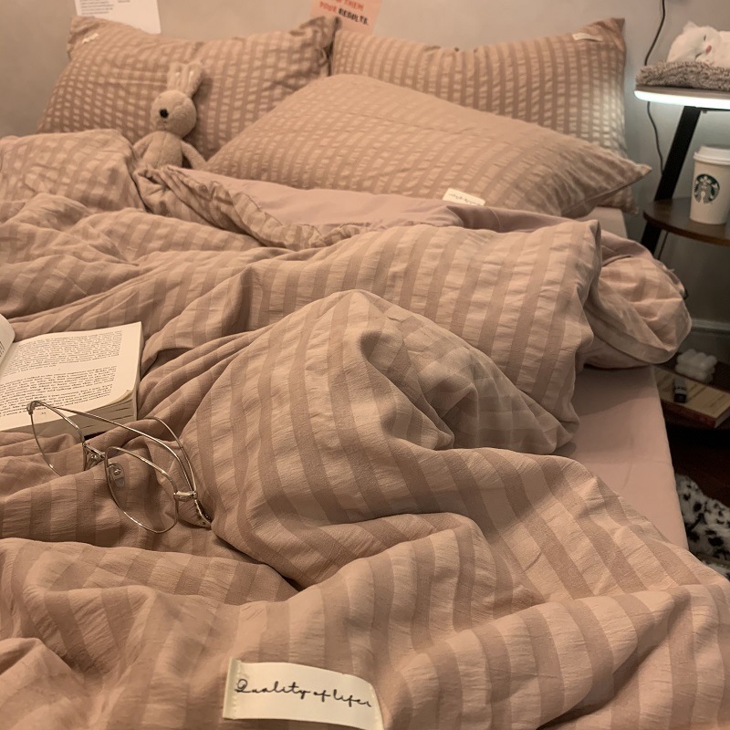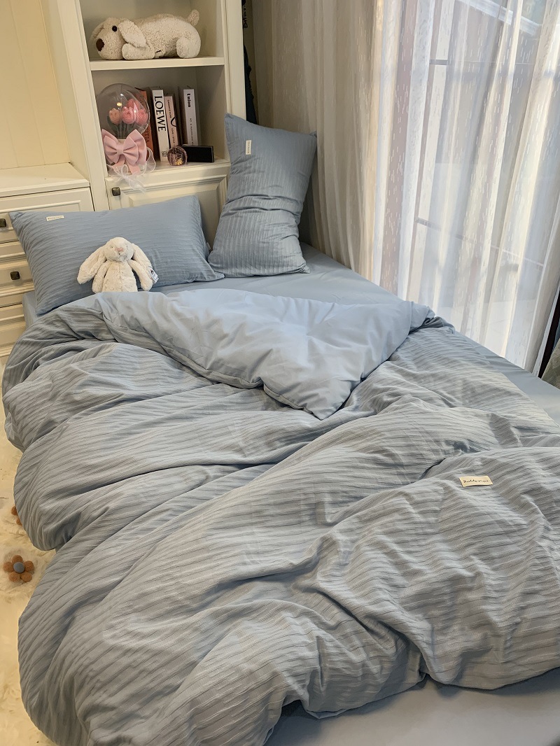 인 스타일 간단한 편안한 그레이 퍼플 믹스 워터 리플 퀼트 커버 침구 4 피스 기숙사 침대 시트 3 피스 세트스토어 가기