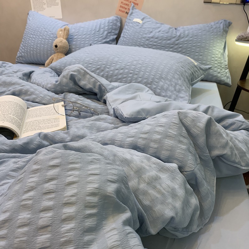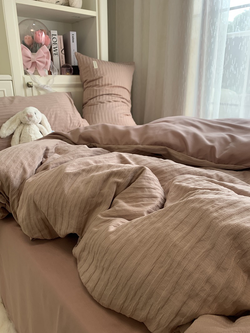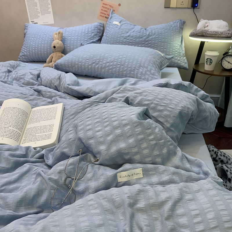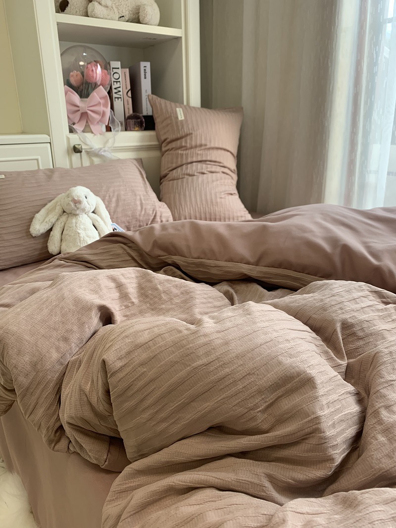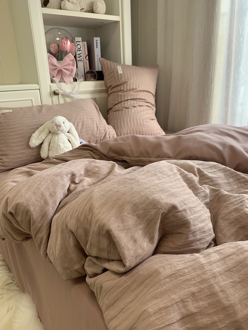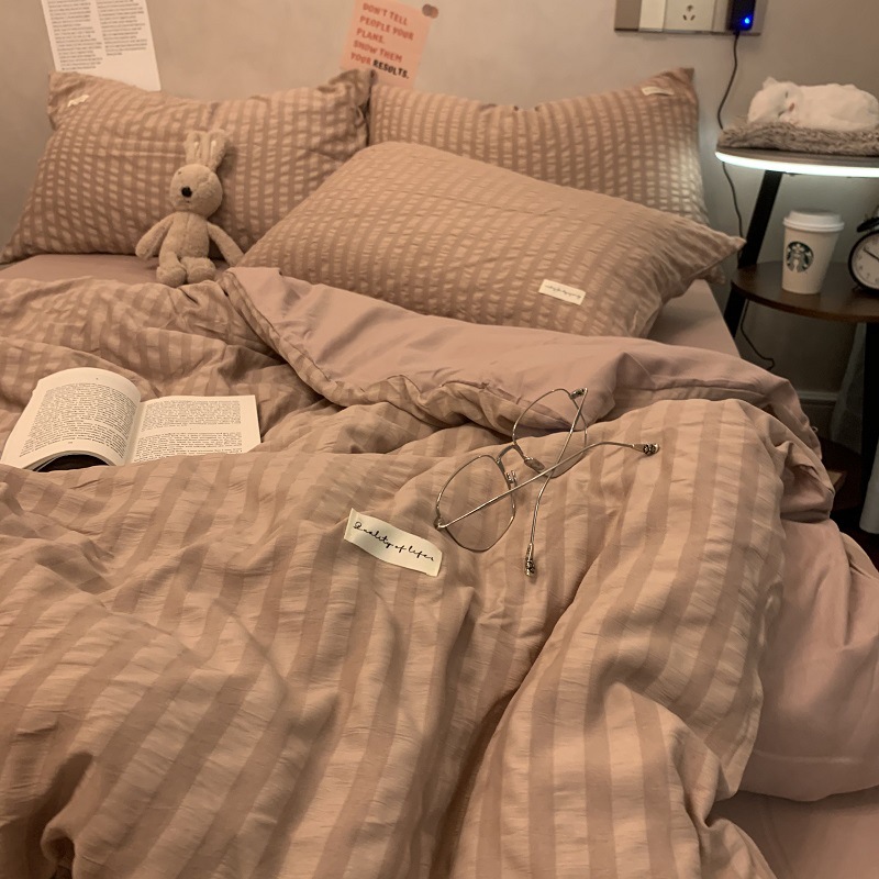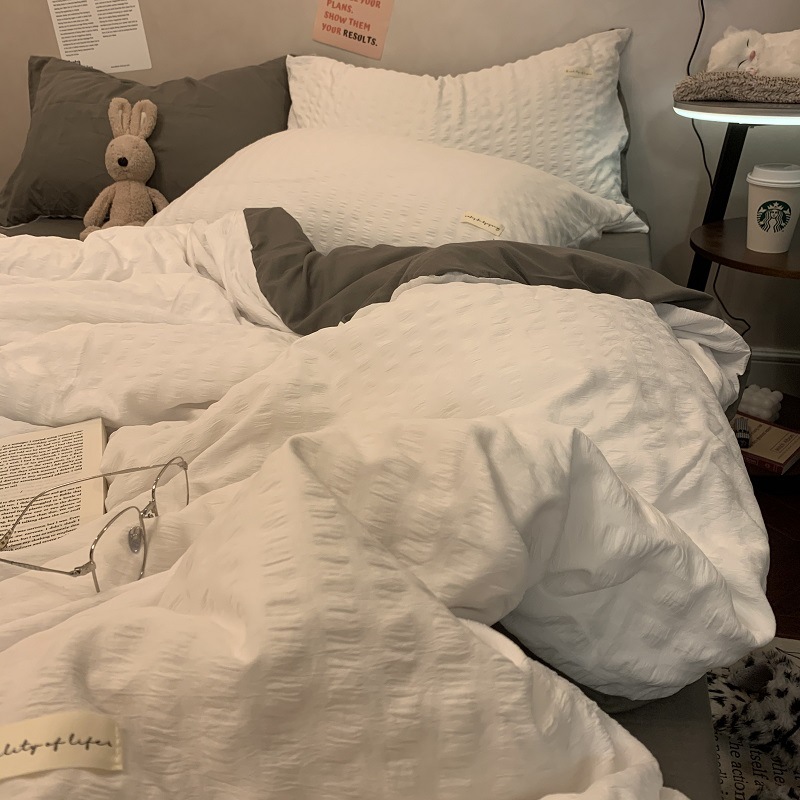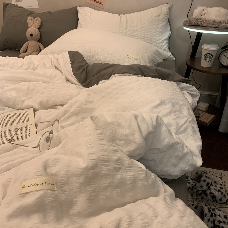 인 스타일 간단한 편안한 그레이 퍼플 믹스 워터 리플 퀼트 커버 침구 4 피스 기숙사 침대 시트 3 피스 세트스토어 가기