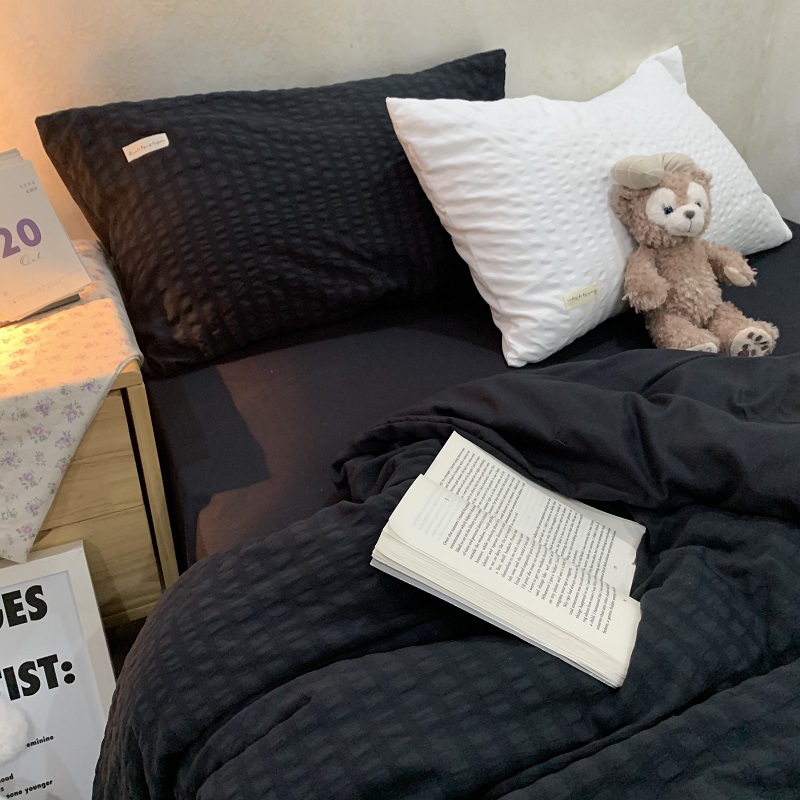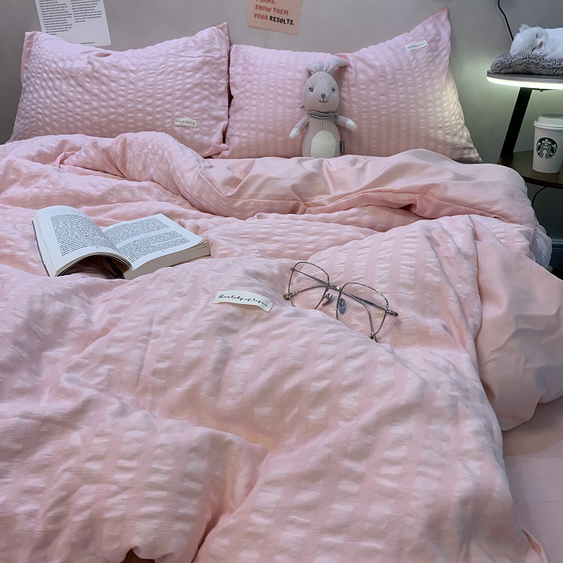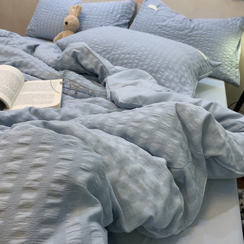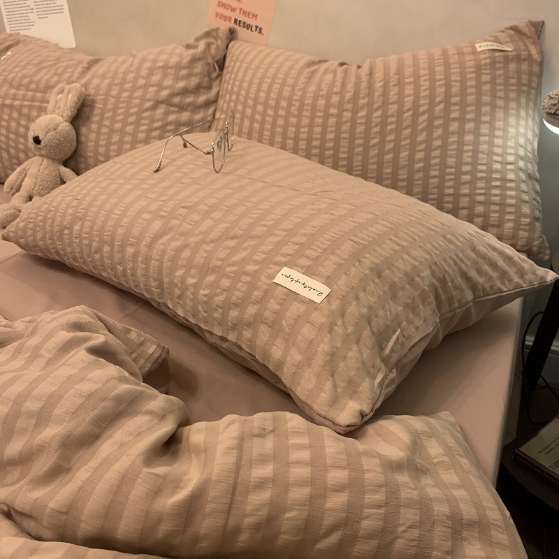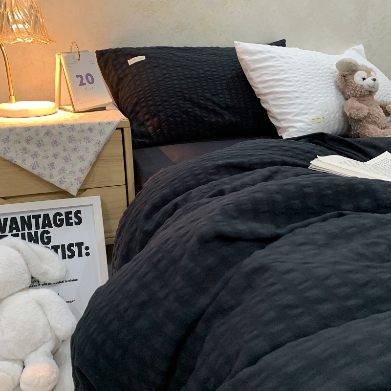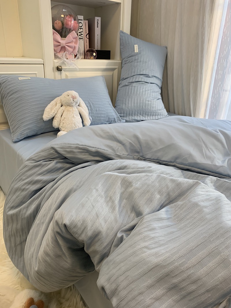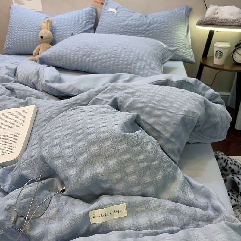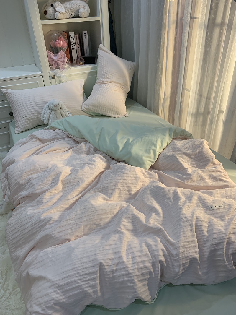 인 스타일 간단한 편안한 그레이 퍼플 믹스 워터 리플 퀼트 커버 침구 4 피스 기숙사 침대 시트 3 피스 세트스토어 가기