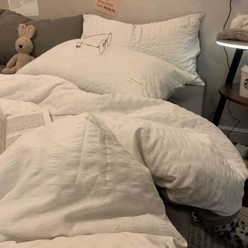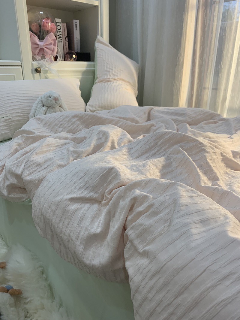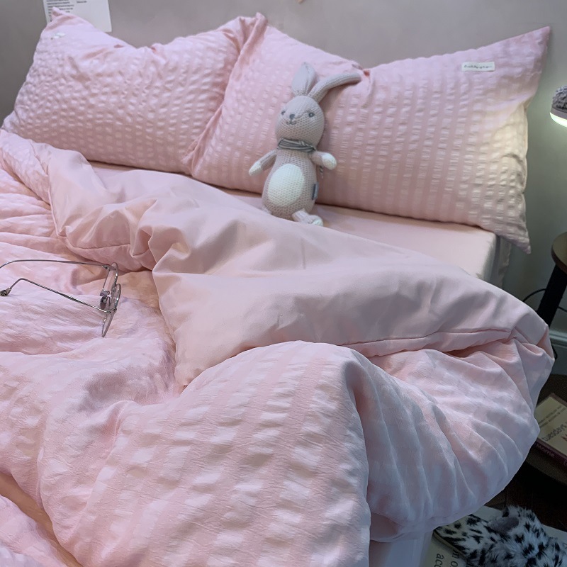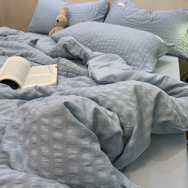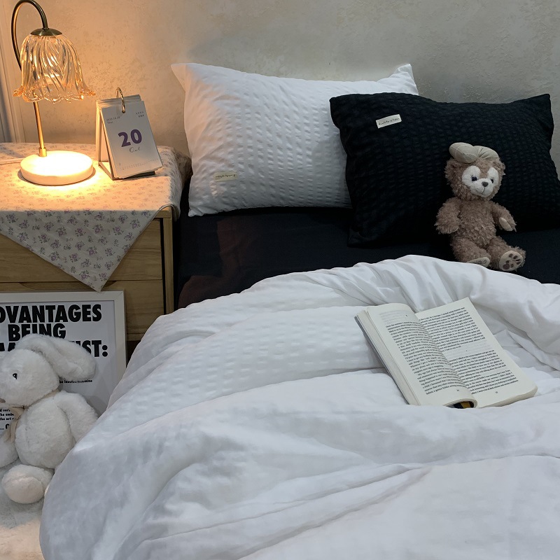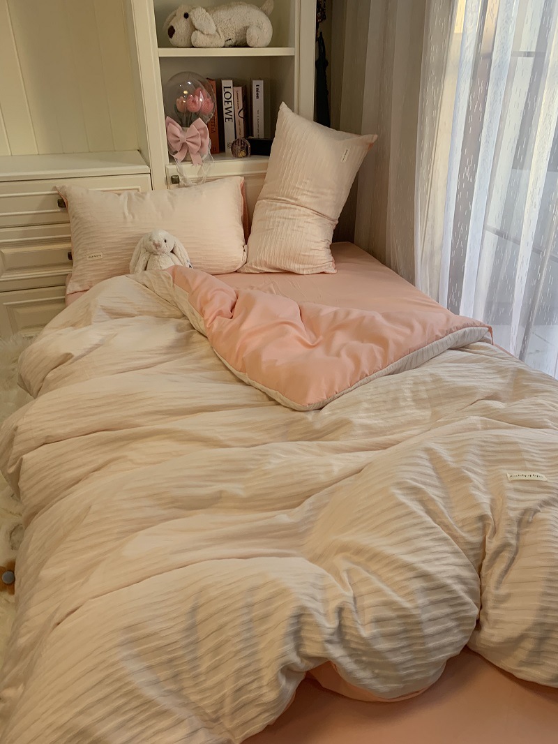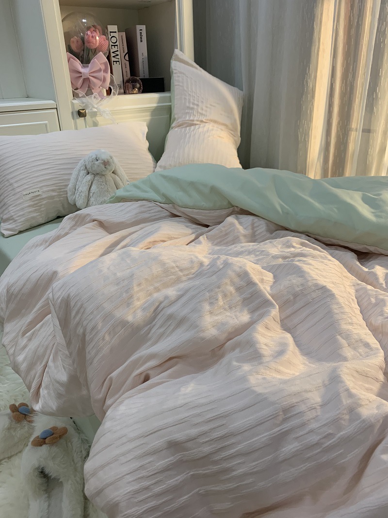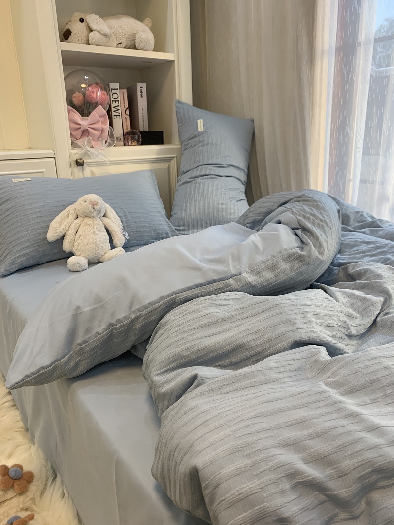 인 스타일 간단한 편안한 그레이 퍼플 믹스 워터 리플 퀼트 커버 침구 4 피스 기숙사 침대 시트 3 피스 세트스토어 가기