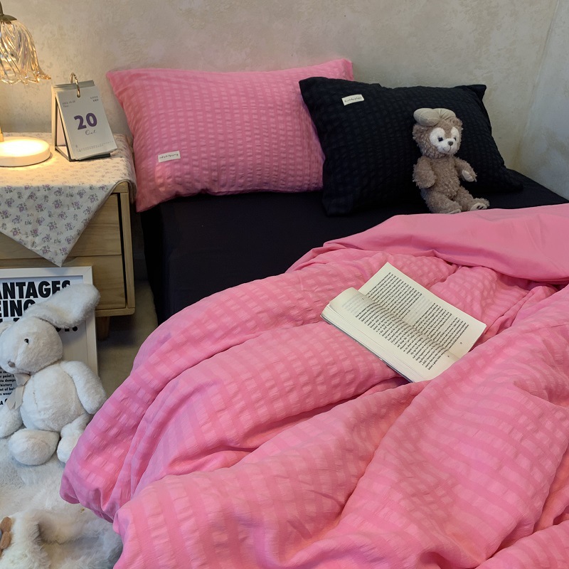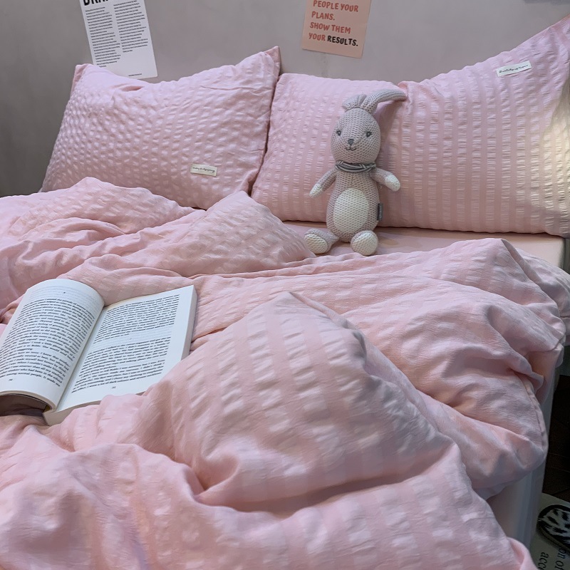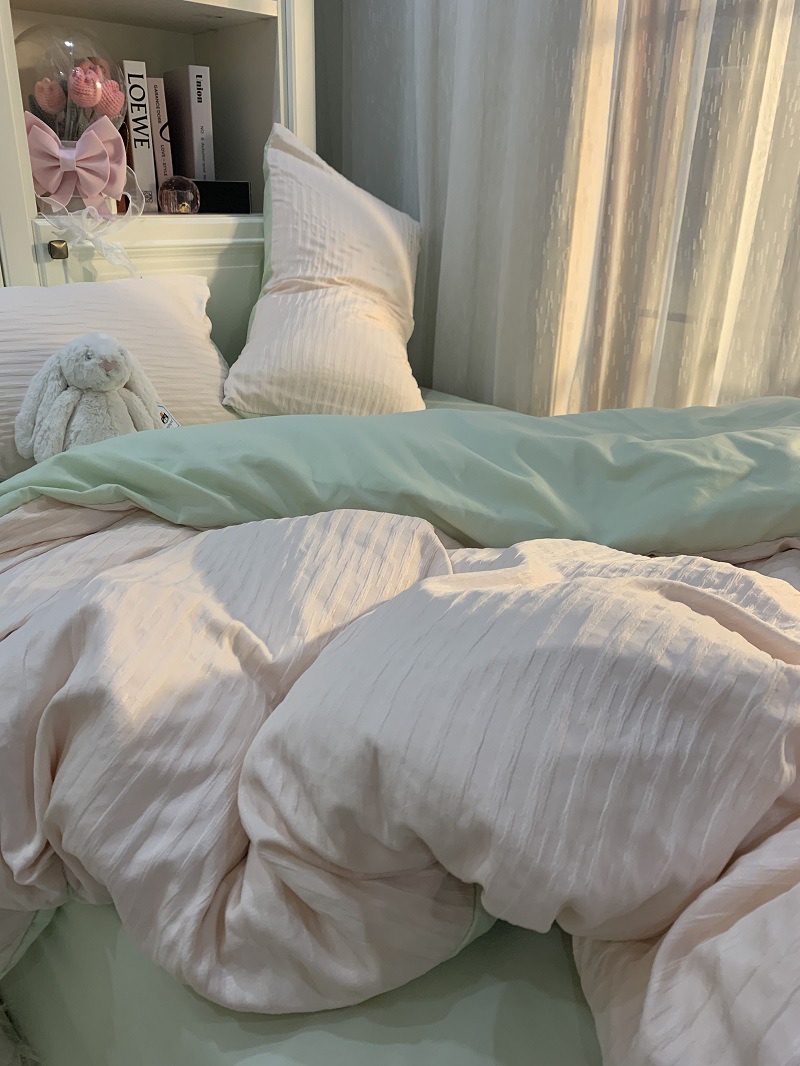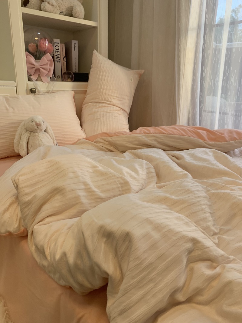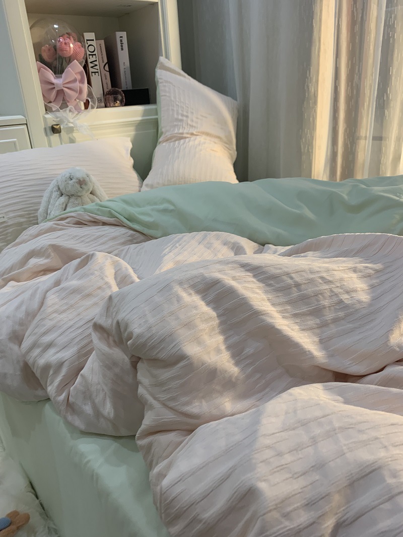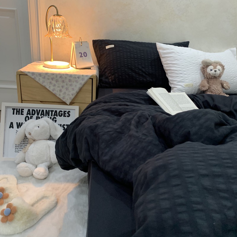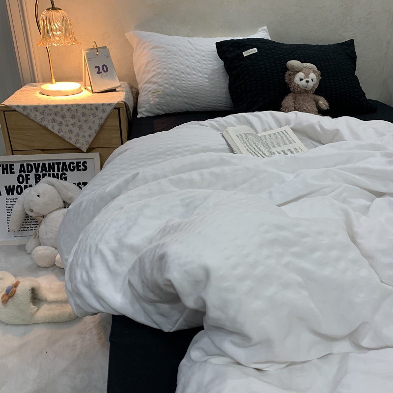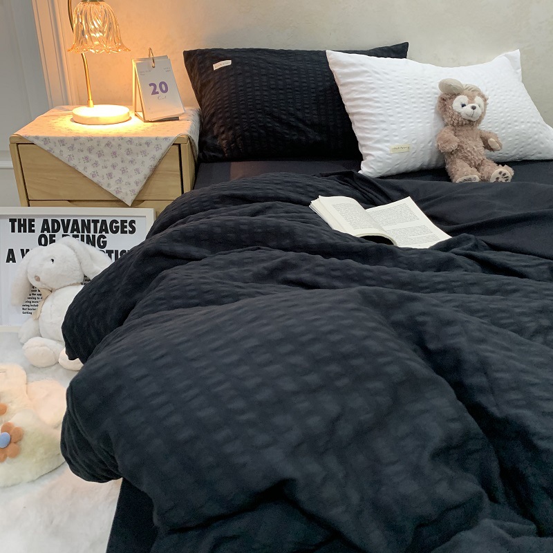 인 스타일 간단한 편안한 그레이 퍼플 믹스 워터 리플 퀼트 커버 침구 4 피스 기숙사 침대 시트 3 피스 세트스토어 가기
