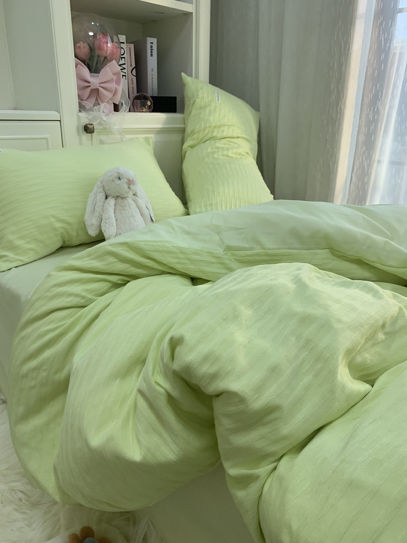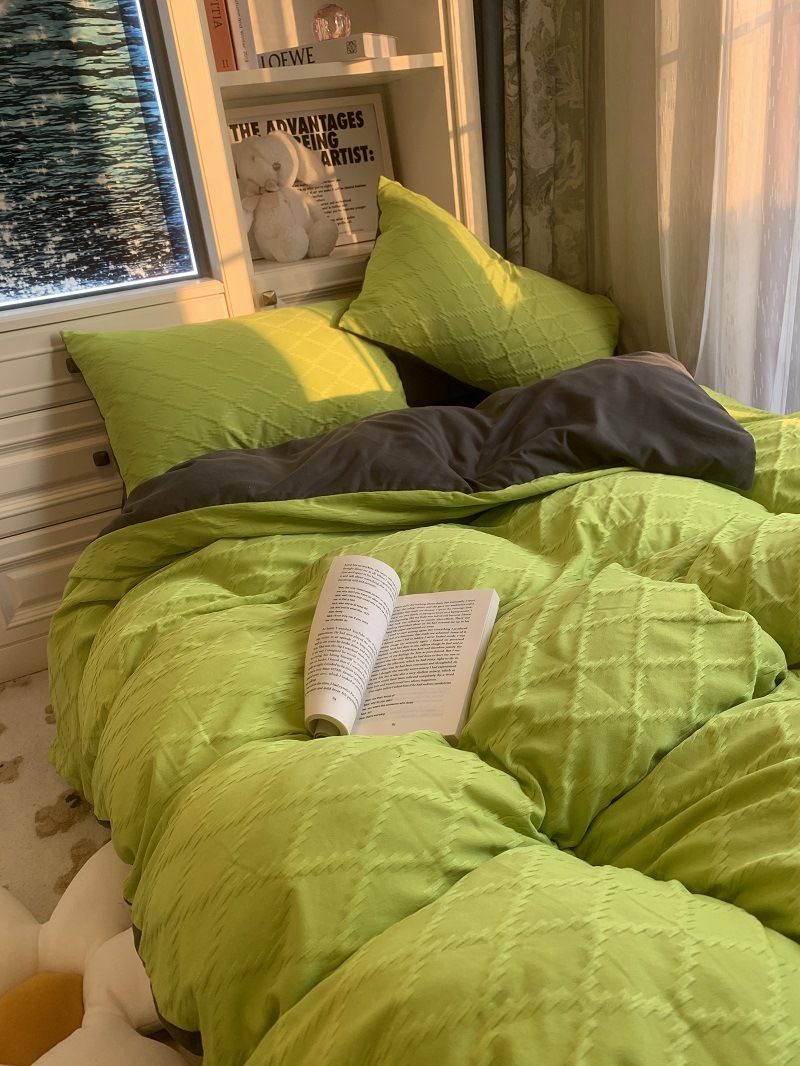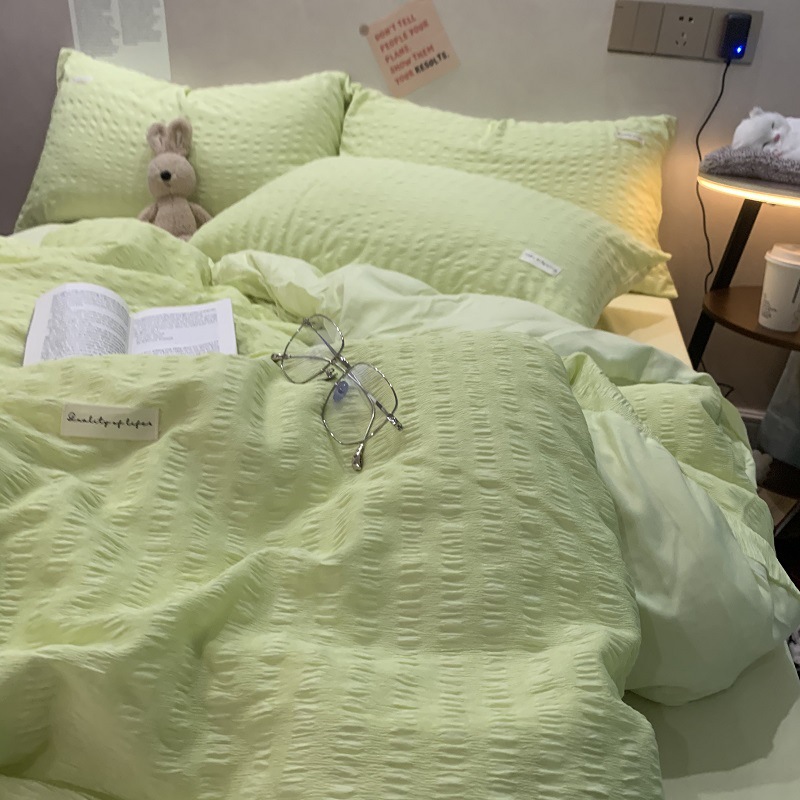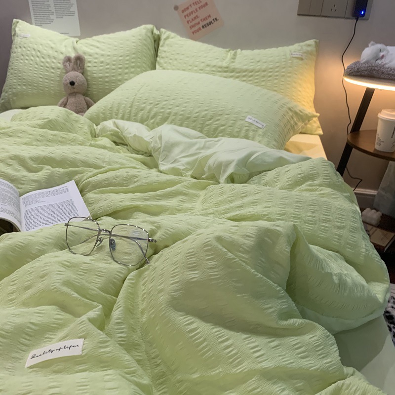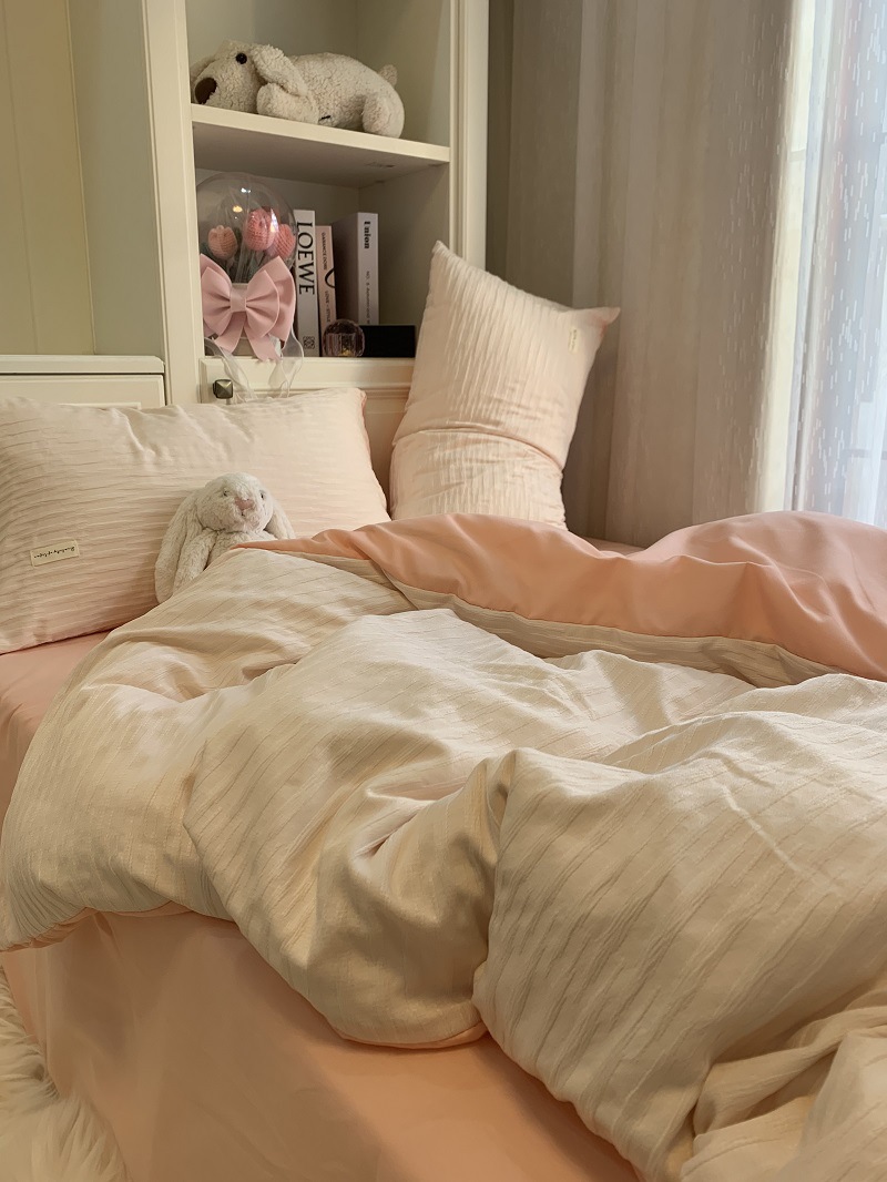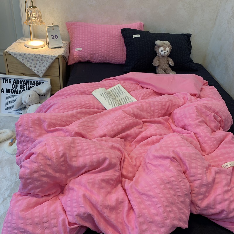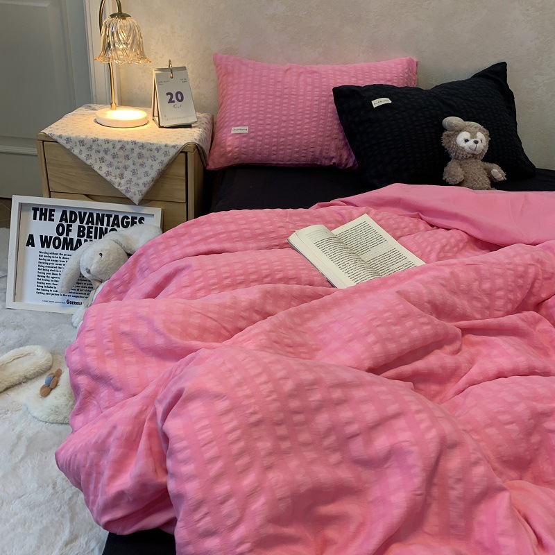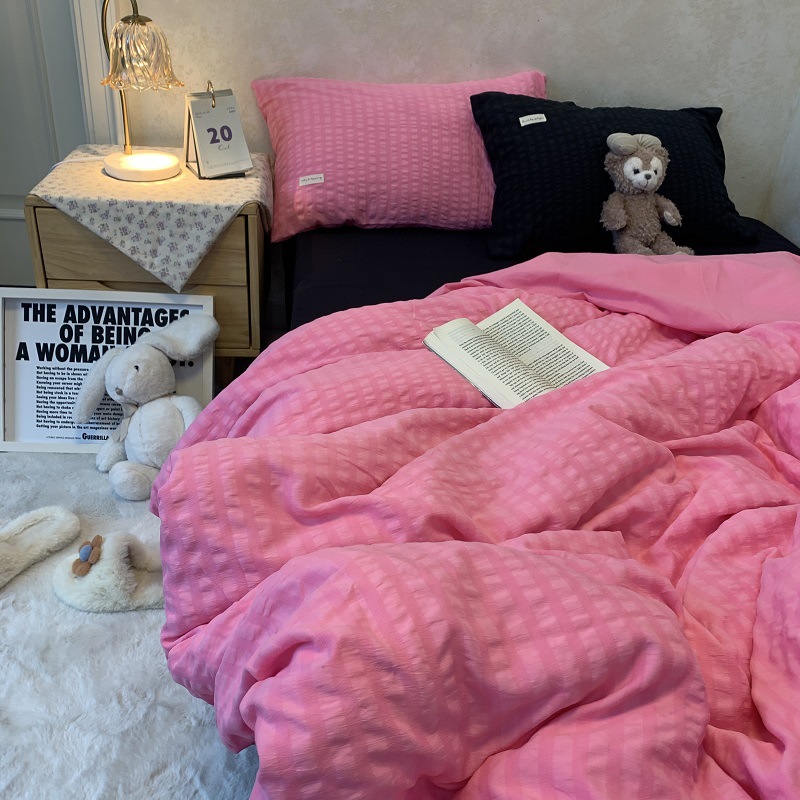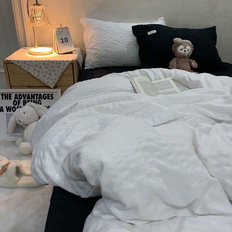 인 스타일 간단한 편안한 그레이 퍼플 믹스 워터 리플 퀼트 커버 침구 4 피스 기숙사 침대 시트 3 피스 세트스토어 가기