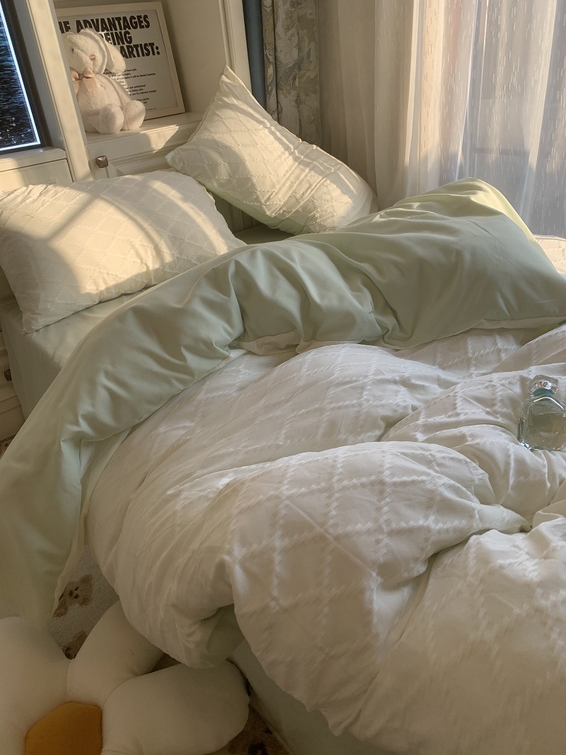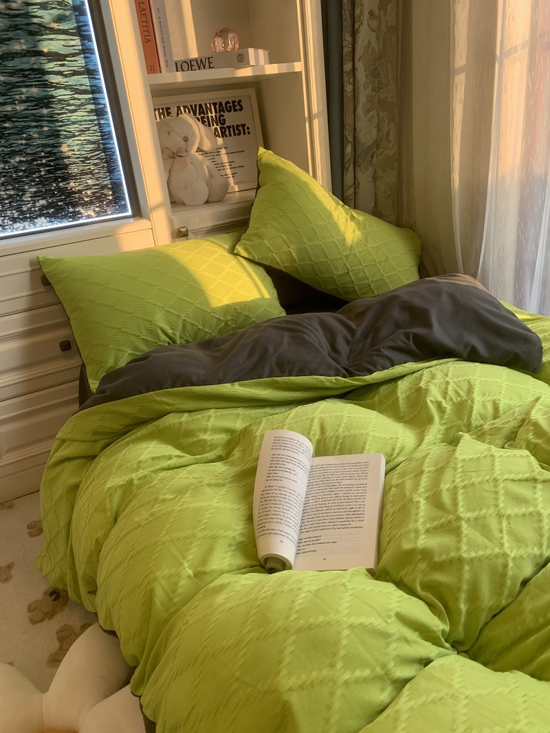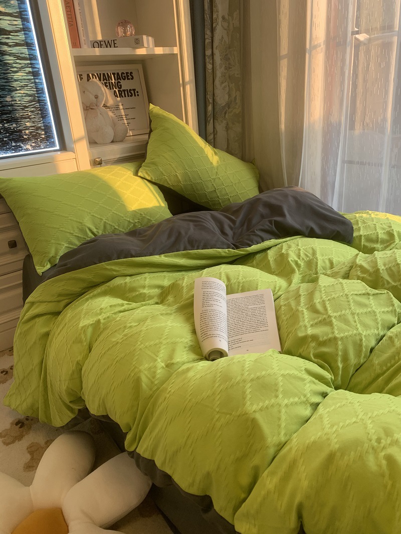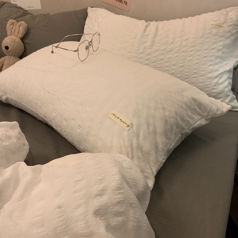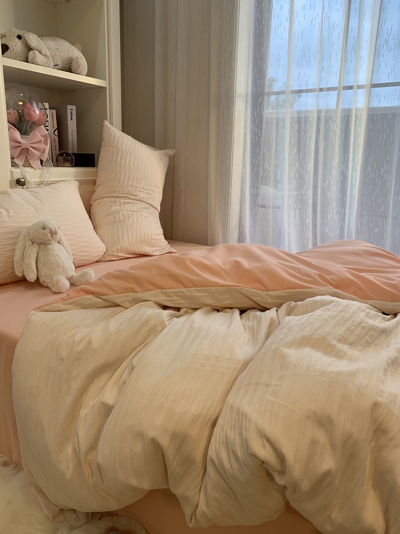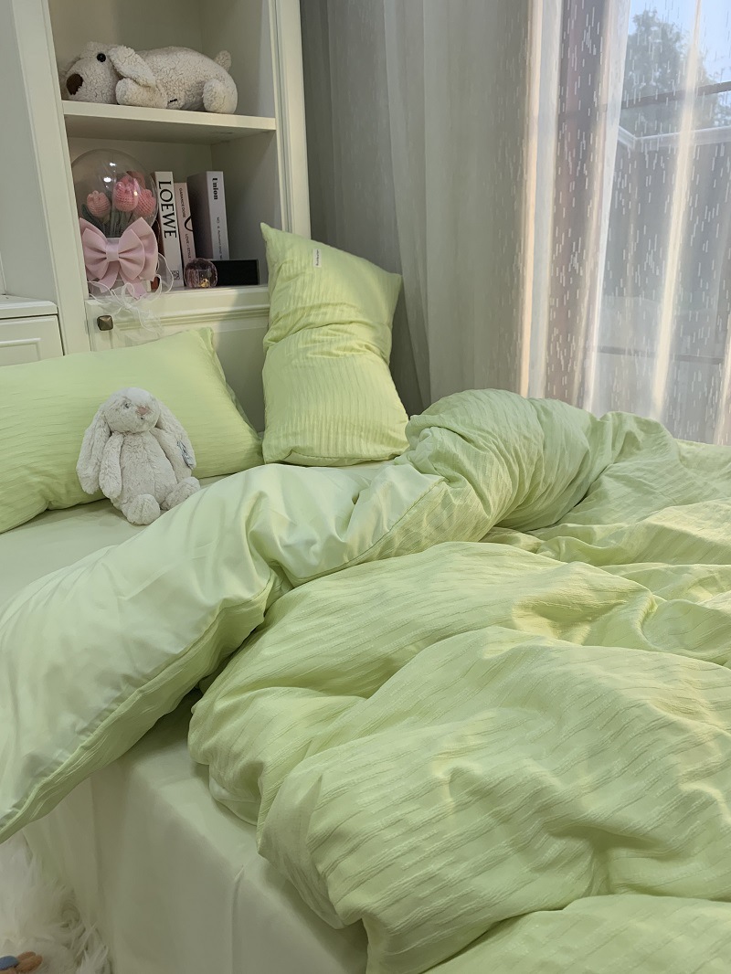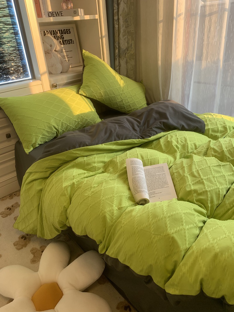 인 스타일 간단한 편안한 그레이 퍼플 믹스 워터 리플 퀼트 커버 침구 4 피스 기숙사 침대 시트 3 피스 세트스토어 가기