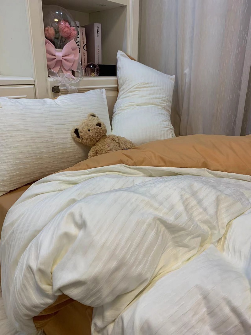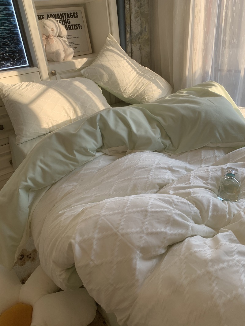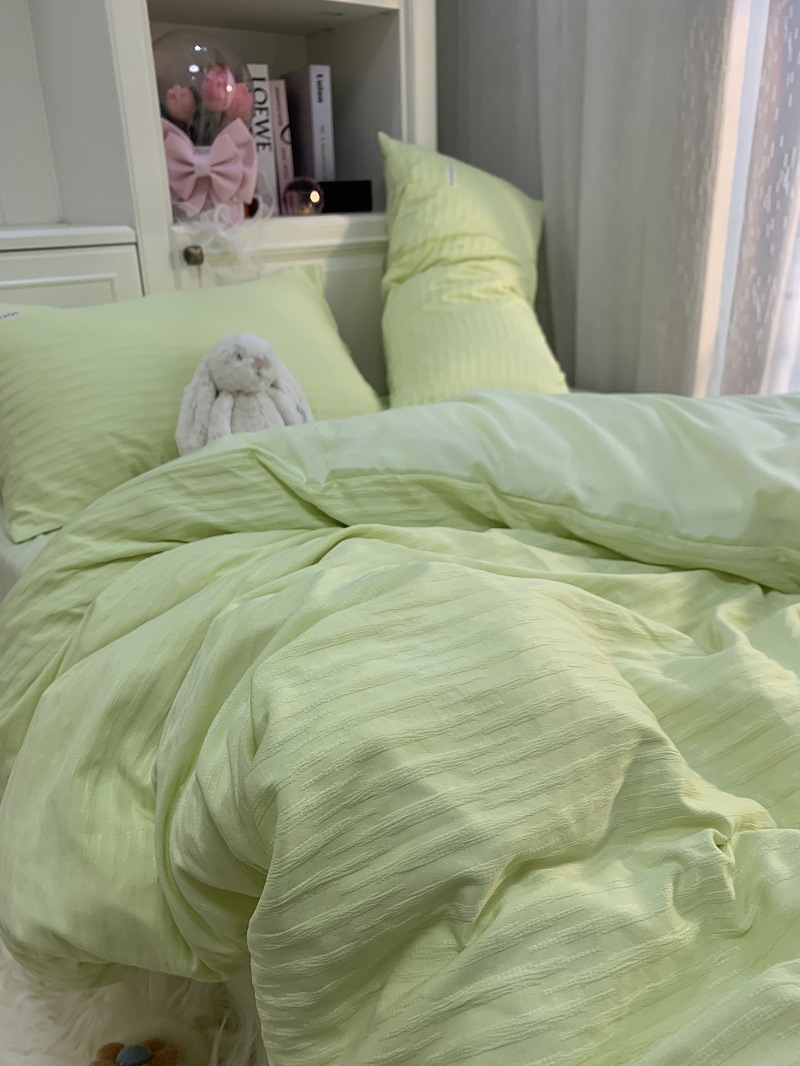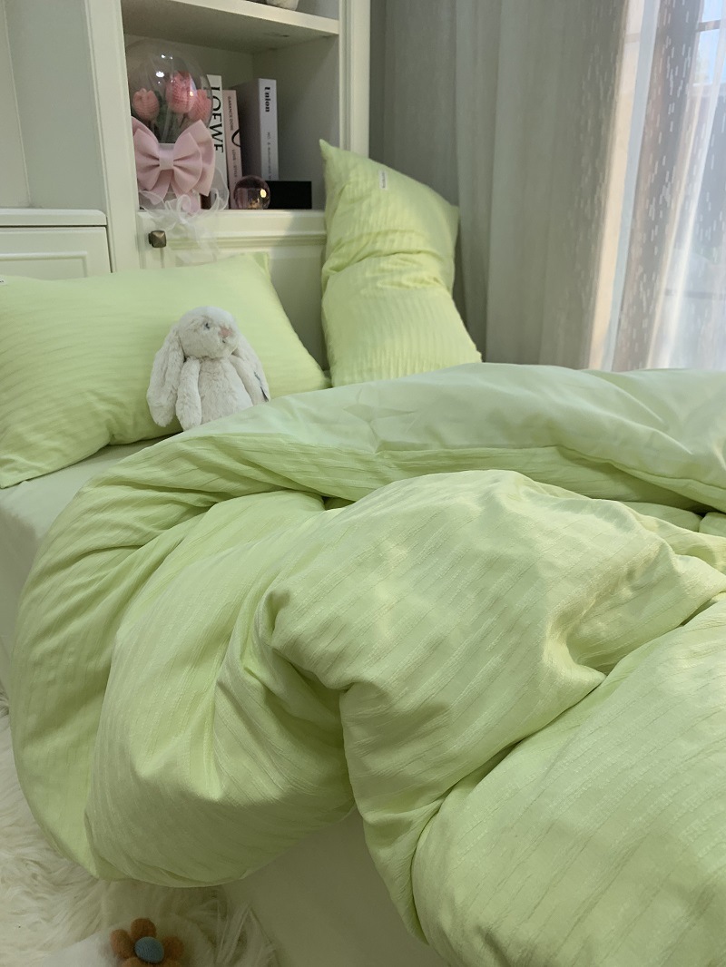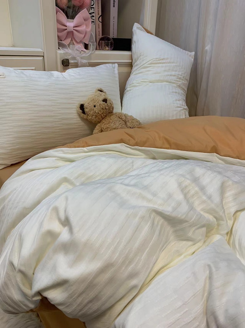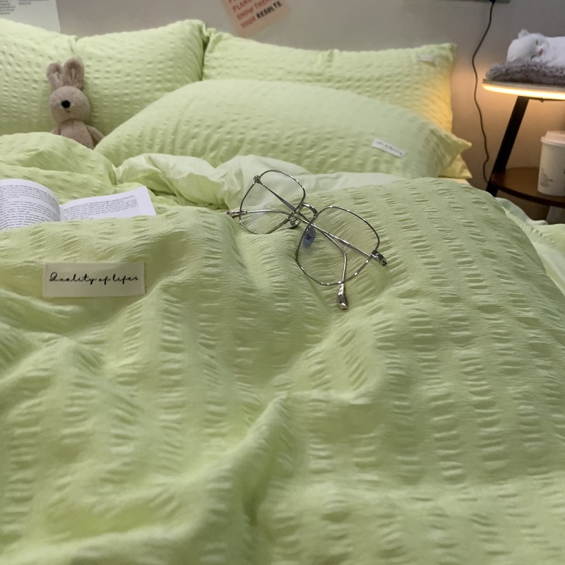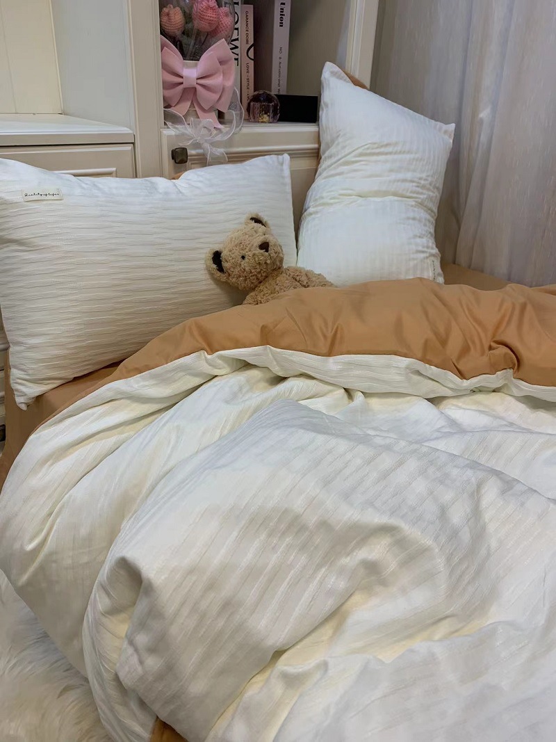 인 스타일 간단한 편안한 그레이 퍼플 믹스 워터 리플 퀼트 커버 침구 4 피스 기숙사 침대 시트 3 피스 세트스토어 가기